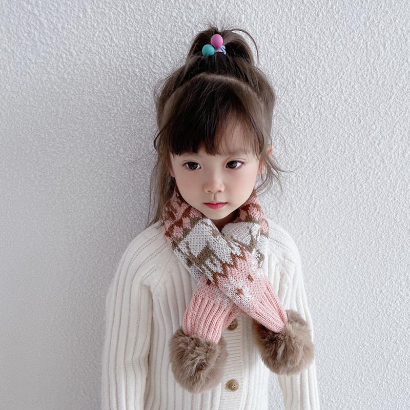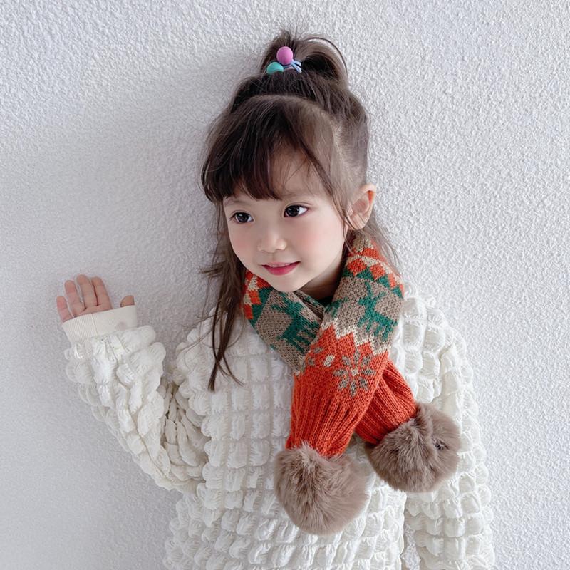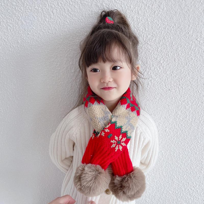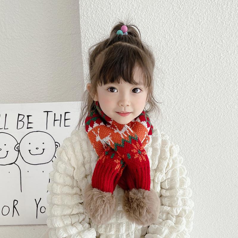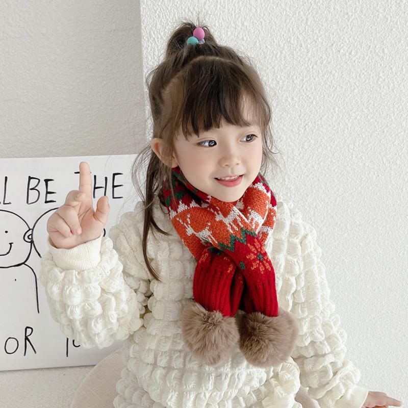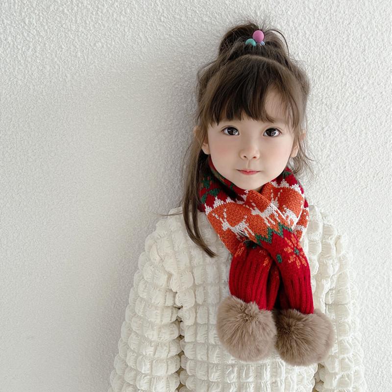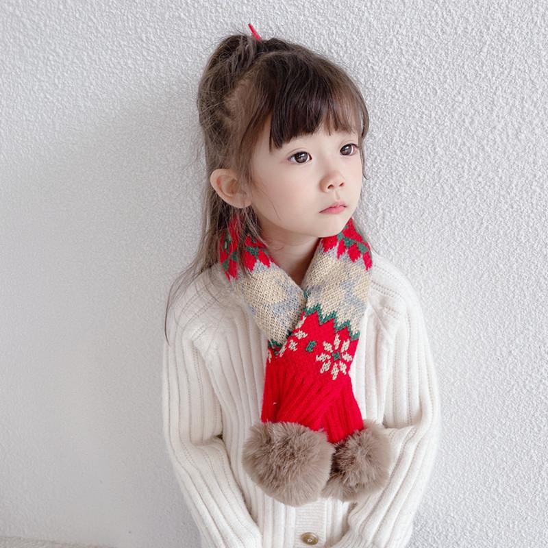 Bufanda navideña para niños, bufanda de invierno cálida para niños y niñas, cuello suave para bebé, bufanda de moda tejida estilo coreano con pompón de piel