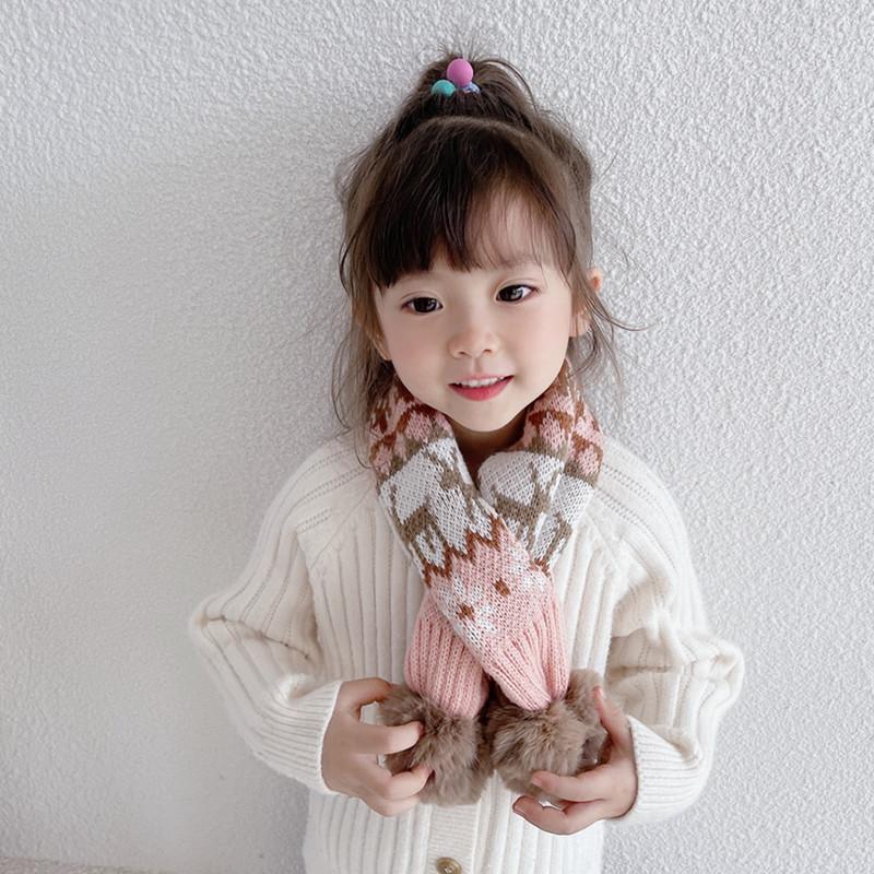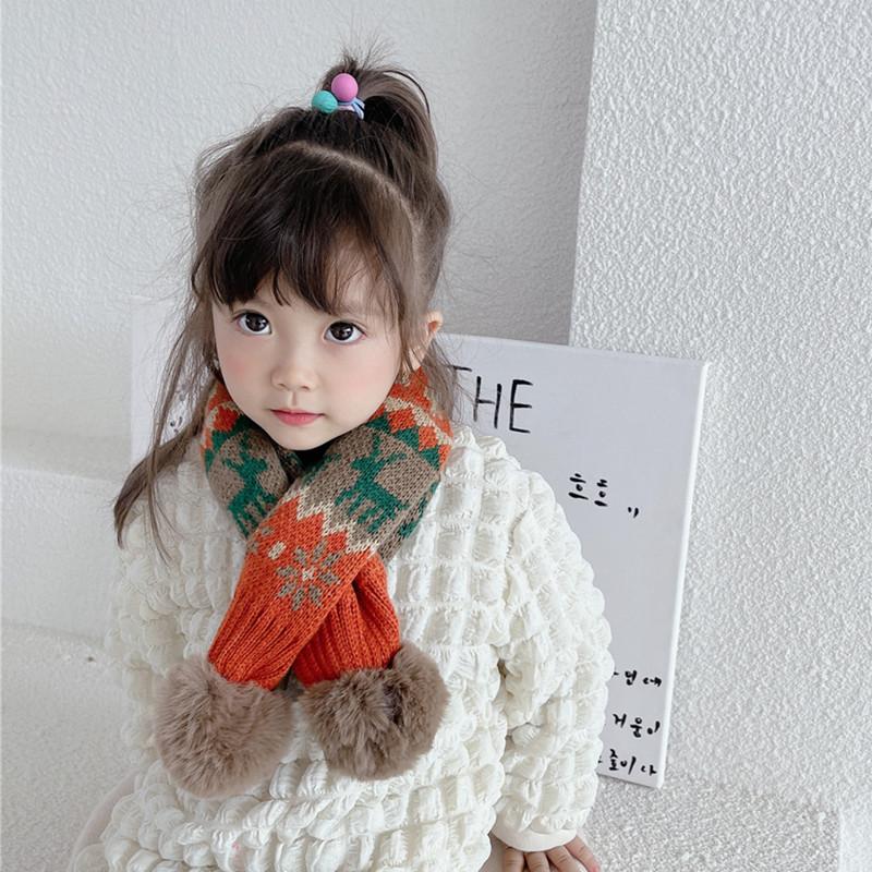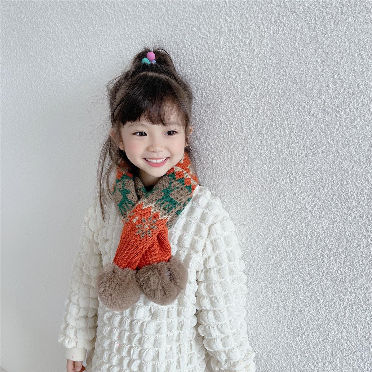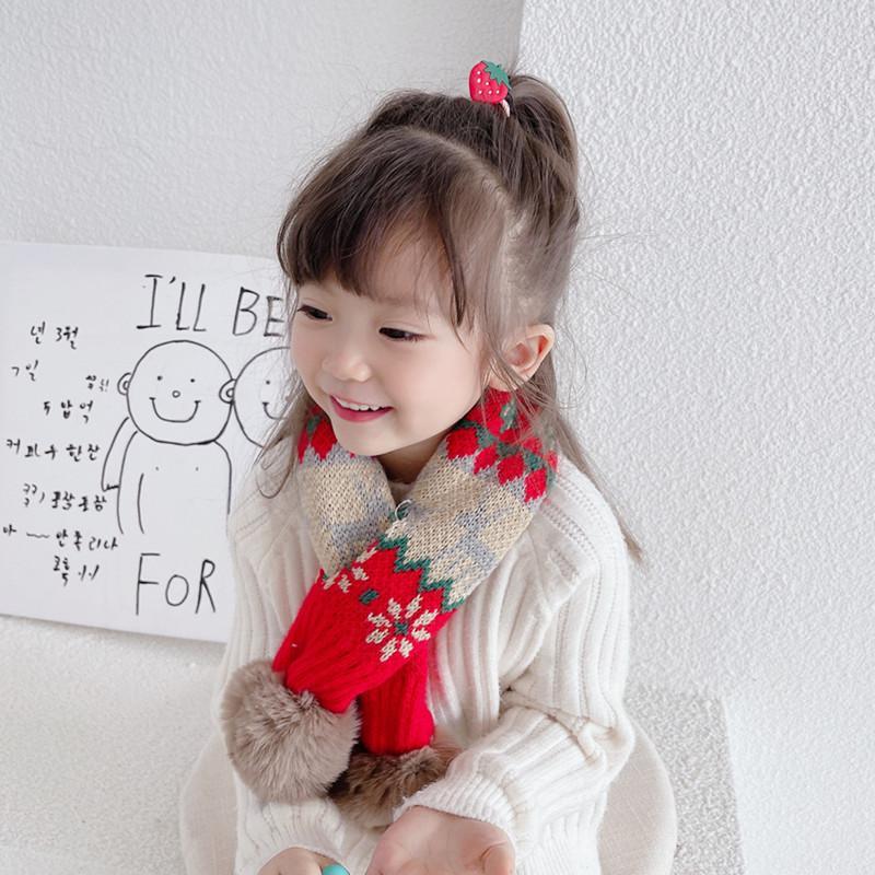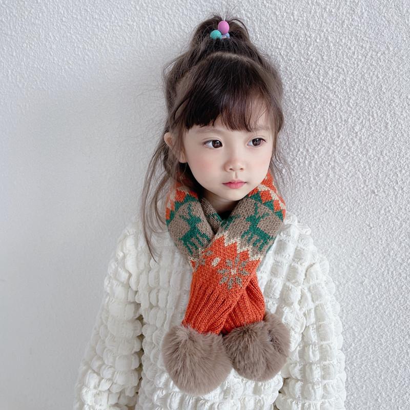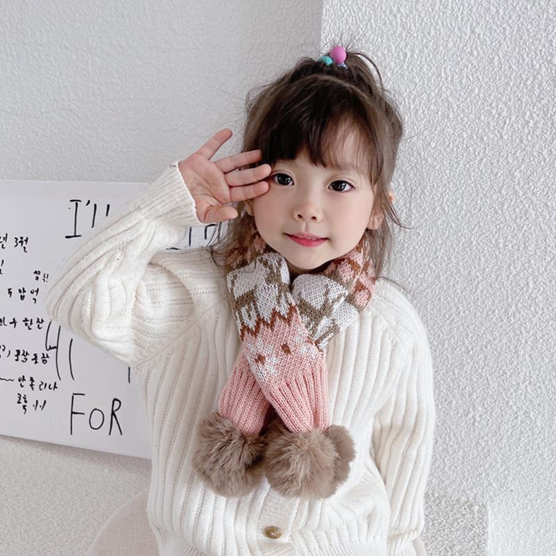 Bufanda navideña para niños, bufanda de invierno cálida para niños y niñas, cuello suave para bebé, bufanda de moda tejida estilo coreano con pompón de piel