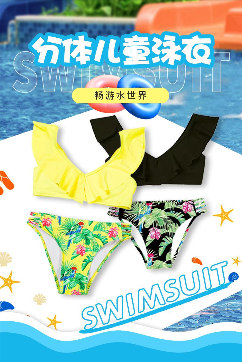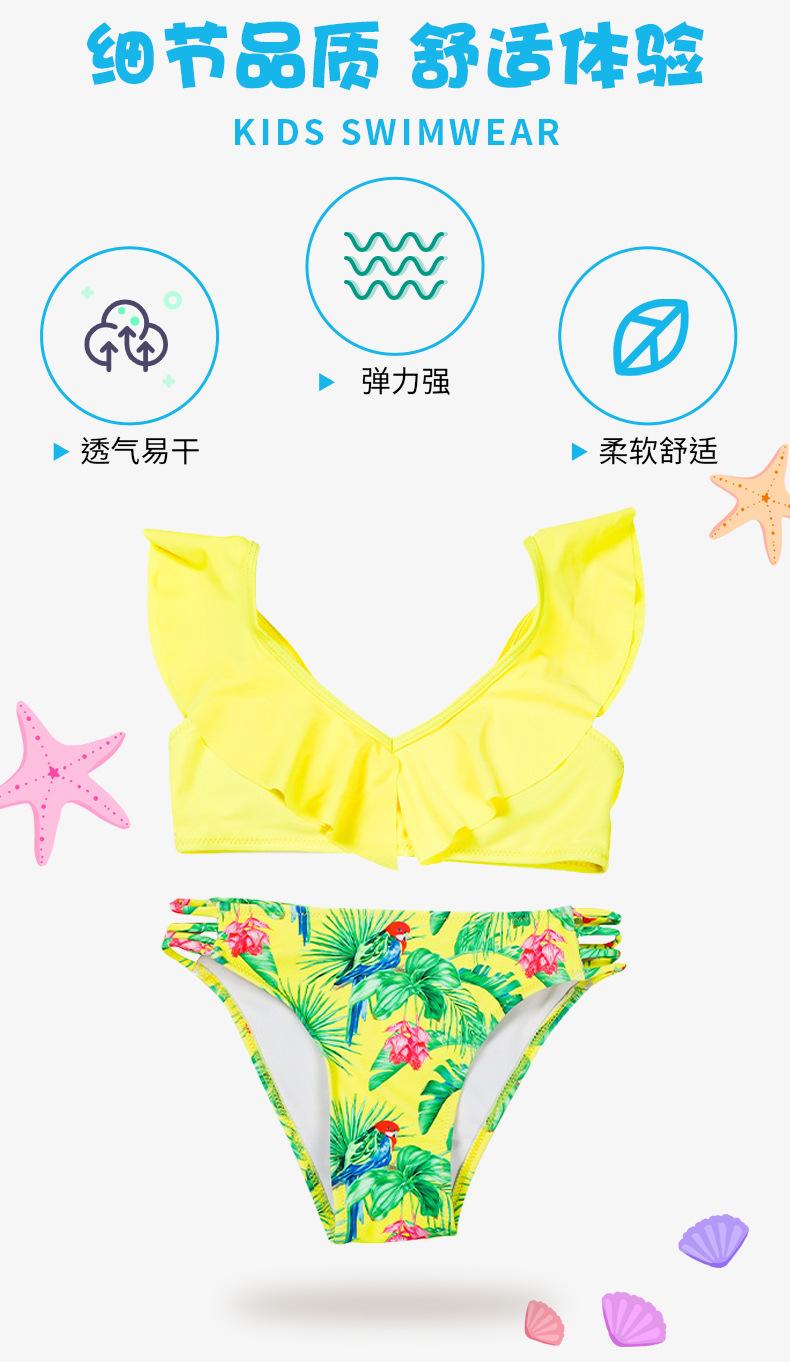 Traje de Baño para Niña Transfronterizo Amazon Dividido Natación con Volantes Lindo Bebé Niñas Pequeñas y Grandes Traje de Baño