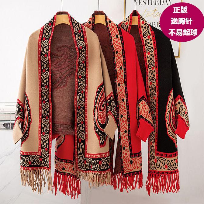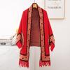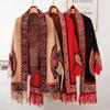 Capa tipo chal de otoño e invierno con borlas, estilo étnico sencillo que combina con todo, abrigo cálido de punto a cuadros para mujer, nuevo y a la moda.