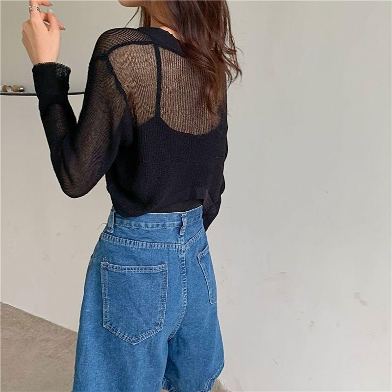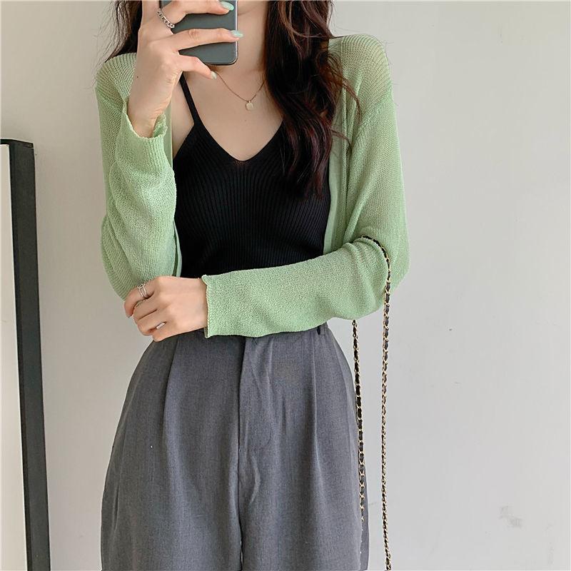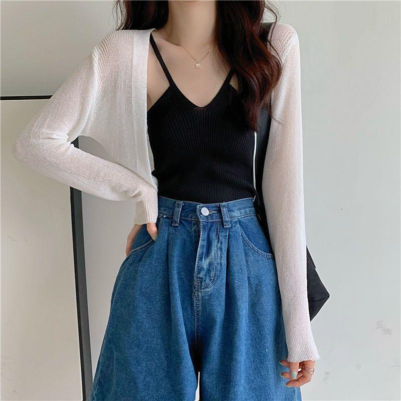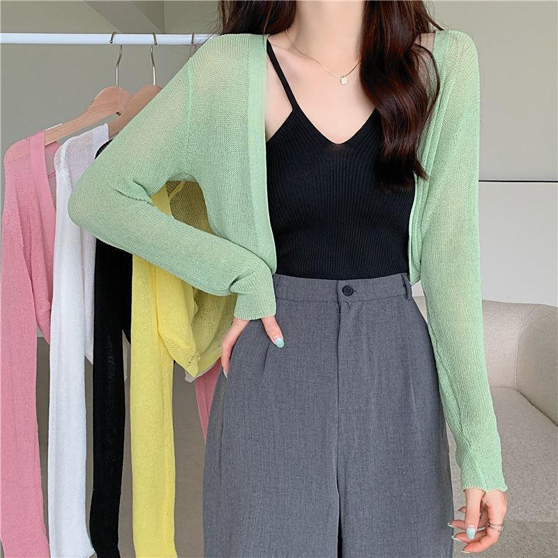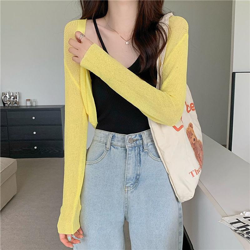 Cárdigan de Punto de Seda de Hielo Estilo Coreano con Protección Solar para Mujer Verano Chal Fino Blusa Exterior Chaqueta Top de Cintura Corta