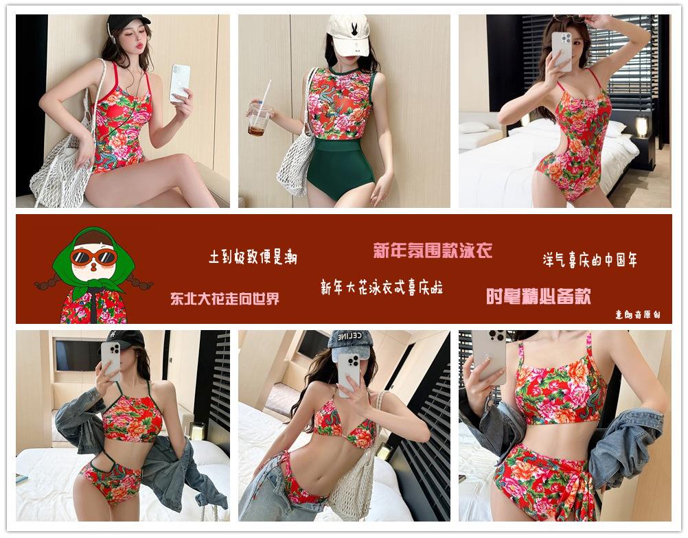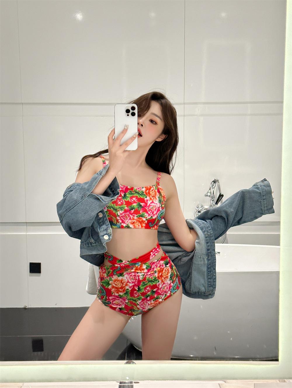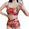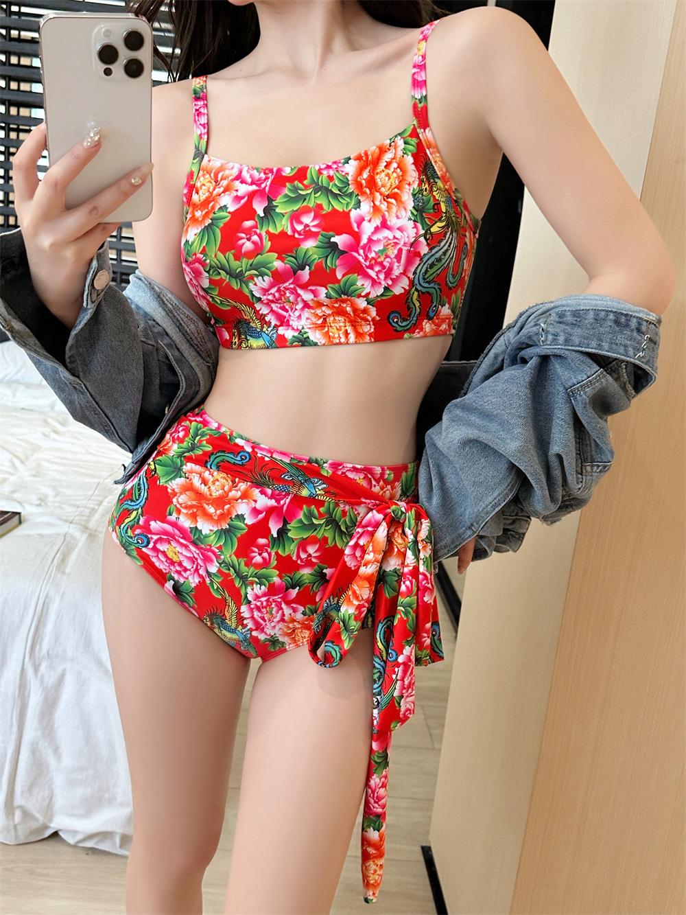 Nuevo bikini de flores grandes del noreste 2024 sexy traje de baño de dos piezas sin espalda para mujer, falda de baño para la playa, traje de baño para aguas termales