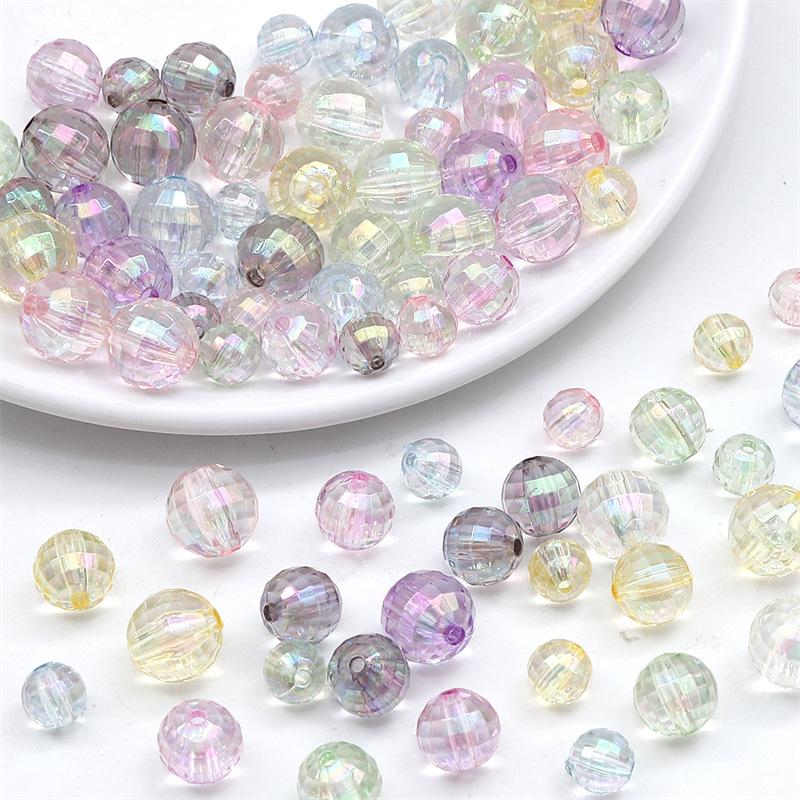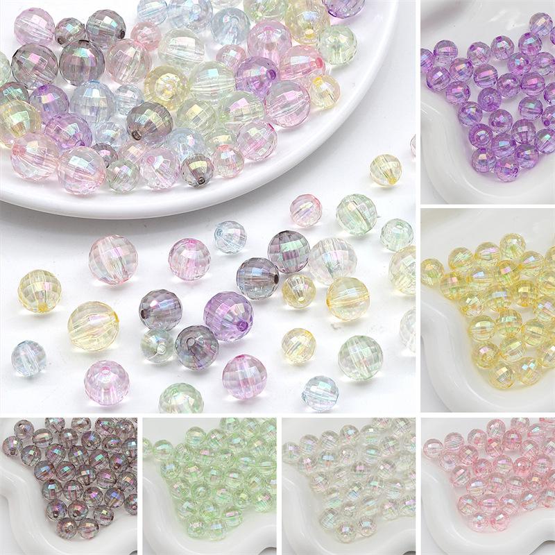 Cuentas redondas acrílicas de color mágico con agujero recto grado especial a 96 facetas cuentas tierra hechas a mano diy caseras rebanadas con cuentas a mano cuentas sueltas