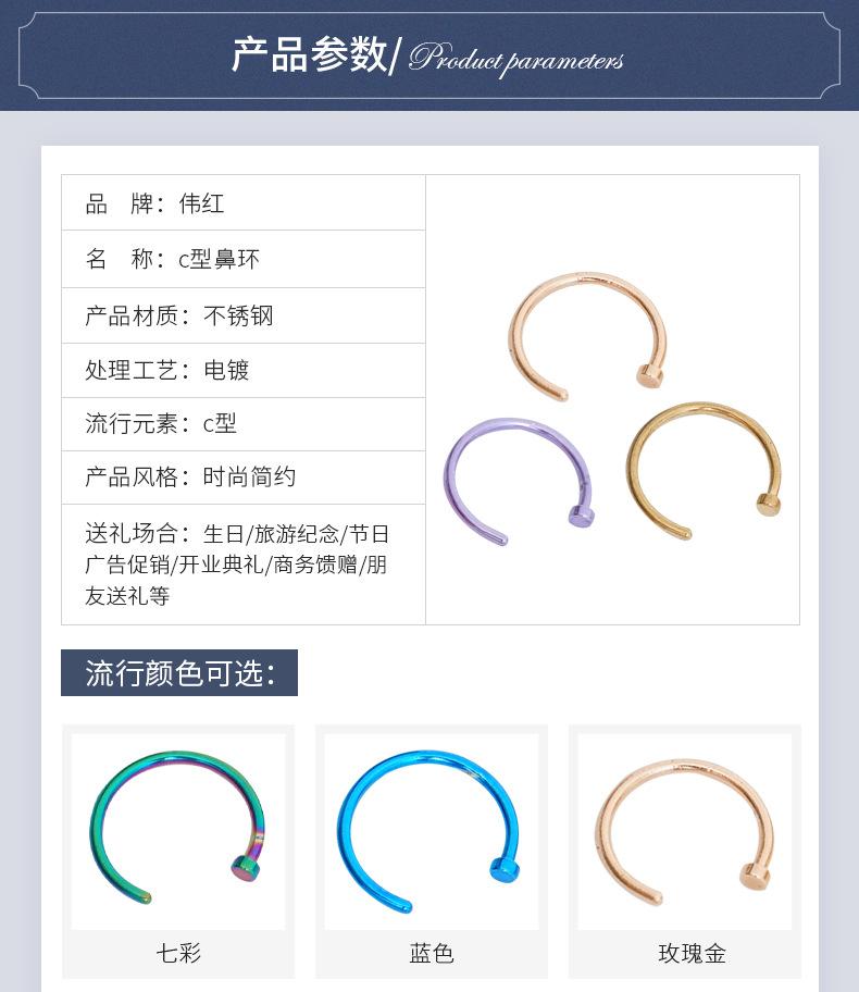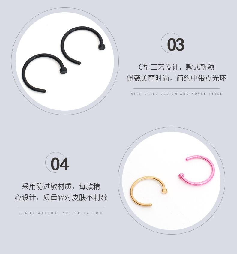 Punto de Fábrica Venta al por Mayor Joyería Europea y Americana Uña para Nariz en Forma de C Anillo para Nariz Adorno para Nariz Uña para Labio Joyería para Perforación Cantidad Grande Precio Favorable