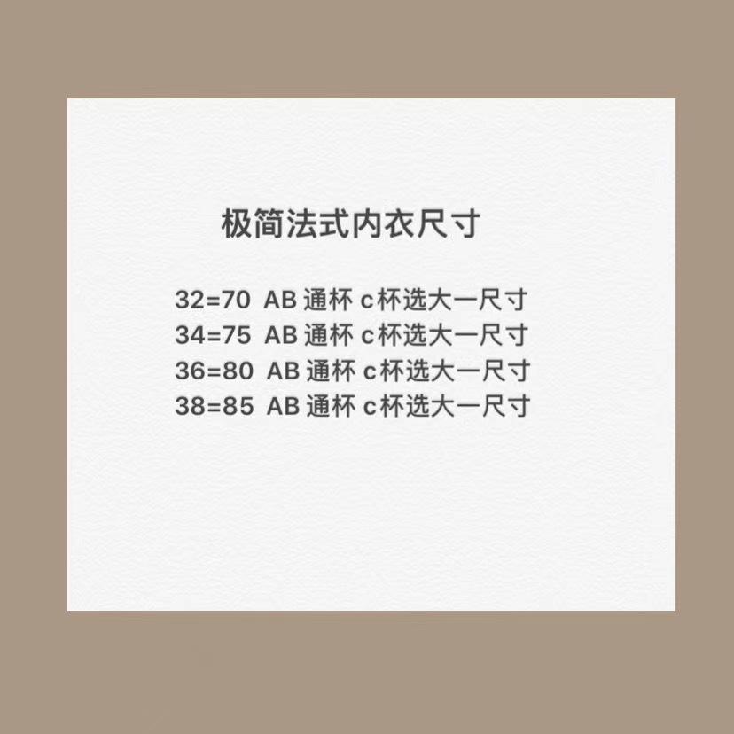 32/70(AB Cup), 34/75(AB Cup), 36/80(AB Cup), 38/85(AB Cup)