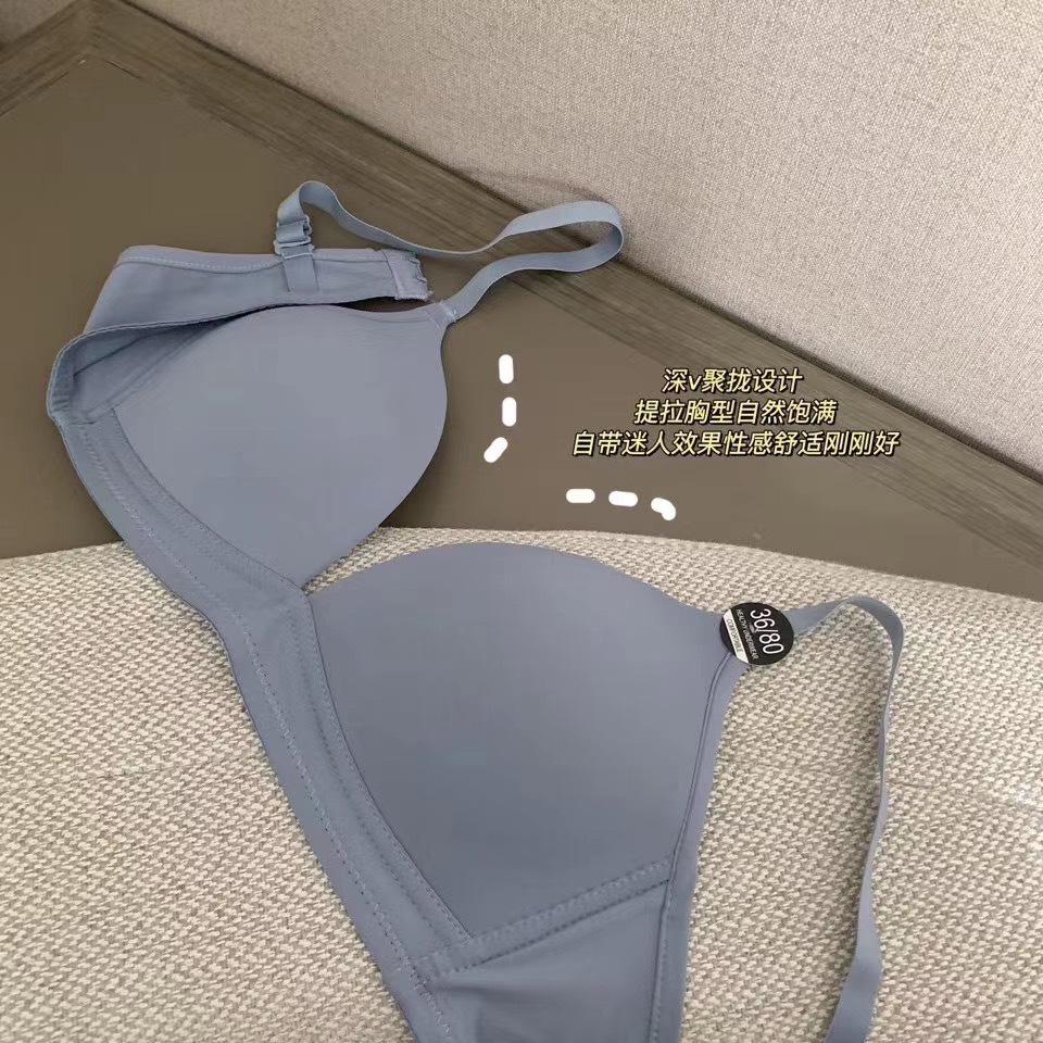 Tienda de ropa Yousendi popular de WeChat, sujetador transpirable sexy con copa triangular, ropa interior inalámbrica sin costuras para mujer