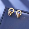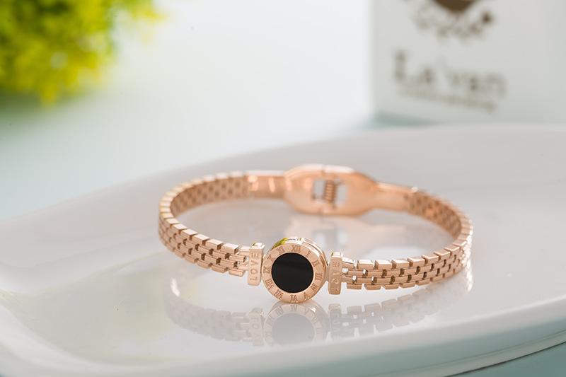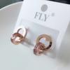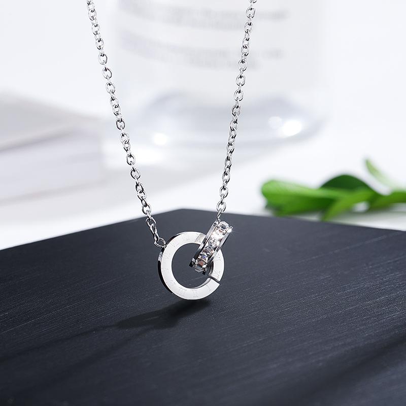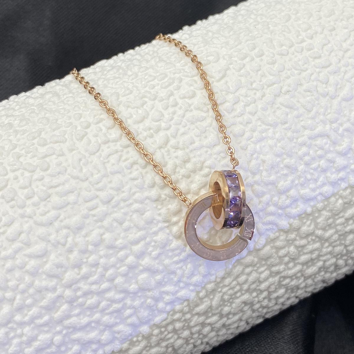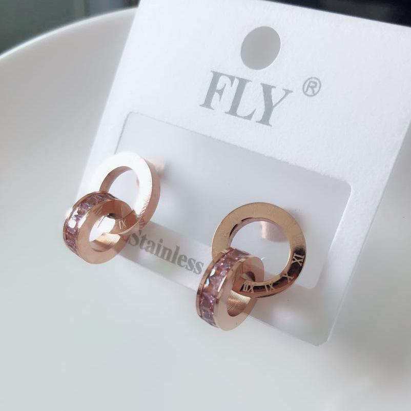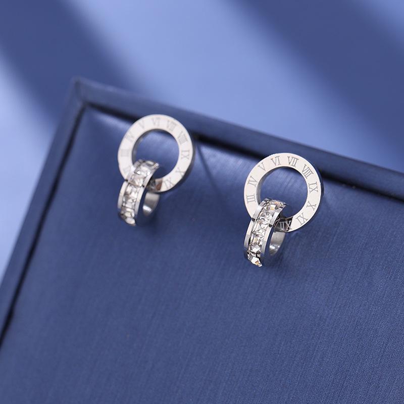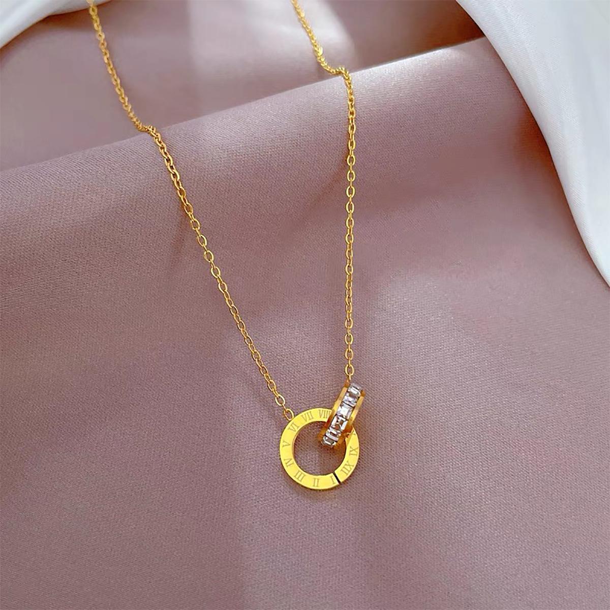 Nuevo collar europeo y americano de acero de titanio para mujer, aretes de botón de oro rosa, pulsera de moda, anillo doble romano, juego de joyas, entrega de una pieza