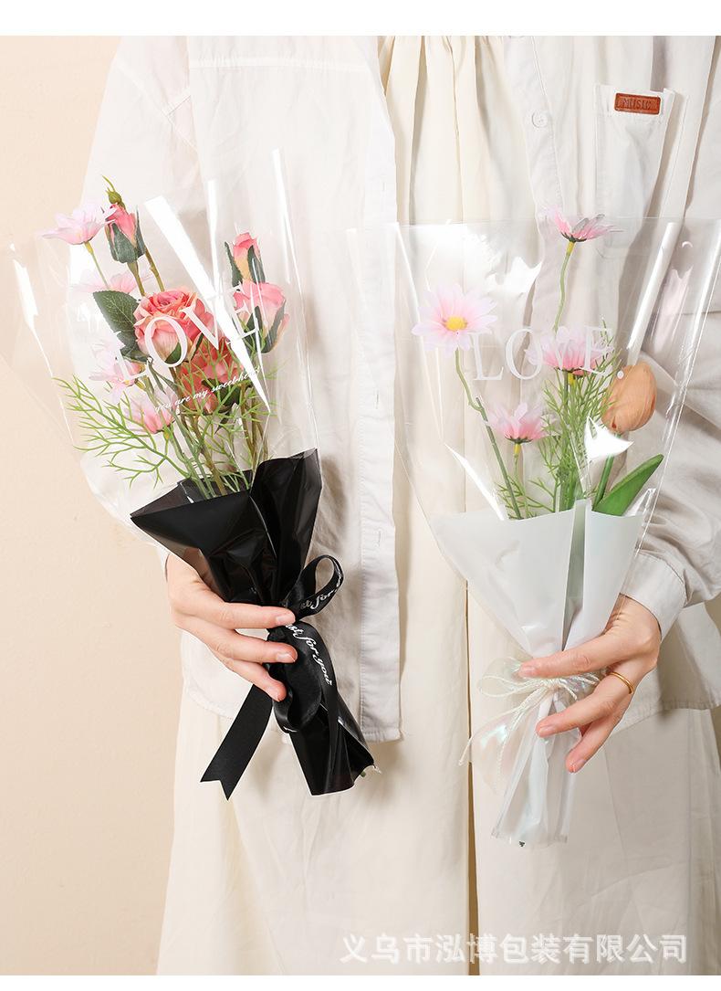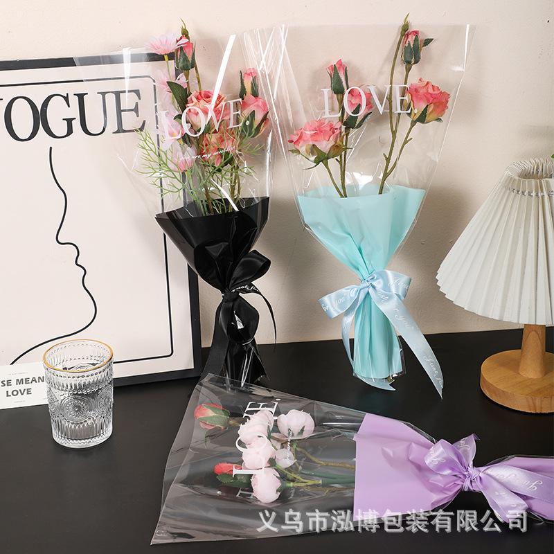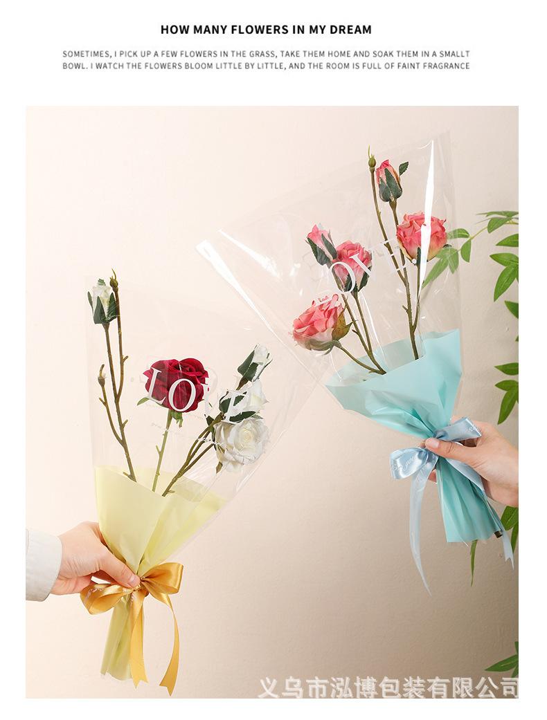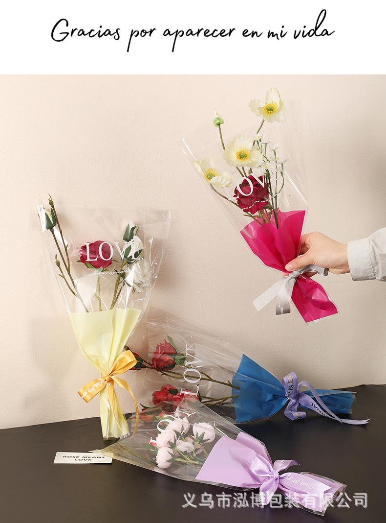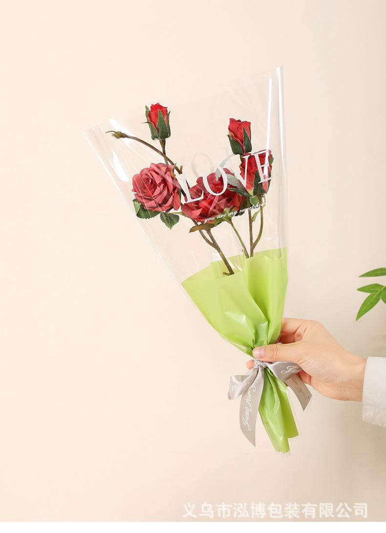 Bolsa Trapezoidal para Flores Estampada Inglés Transparente Bolsa de Plástico para Empaque de Flores Bolsa para Múltiples Ramas Bolsa para Empaque de Ramo