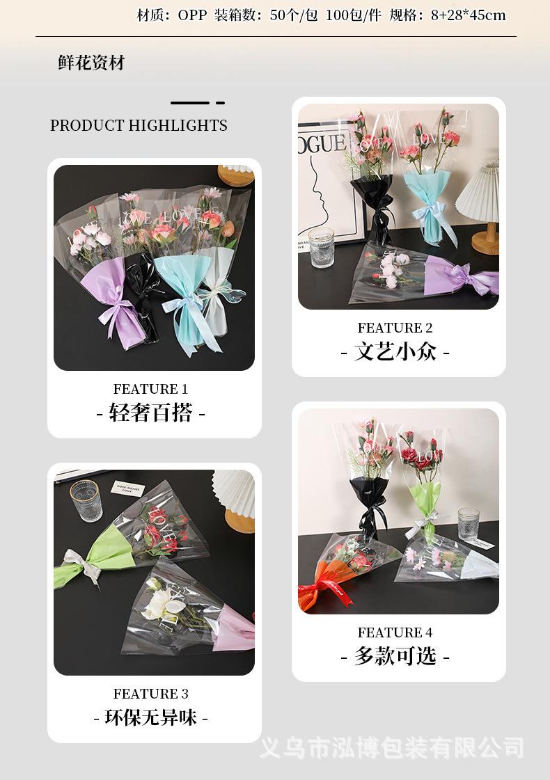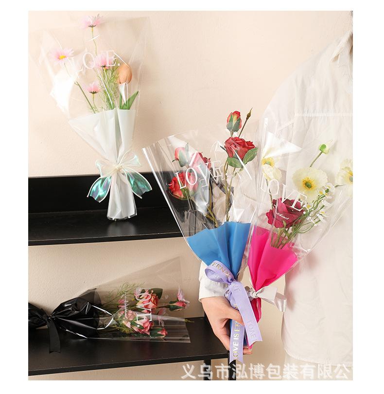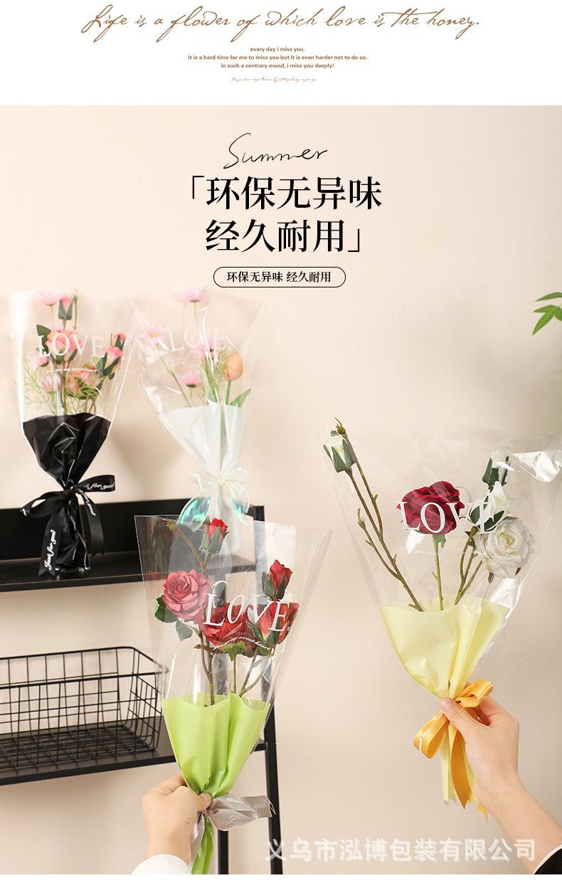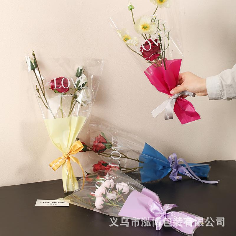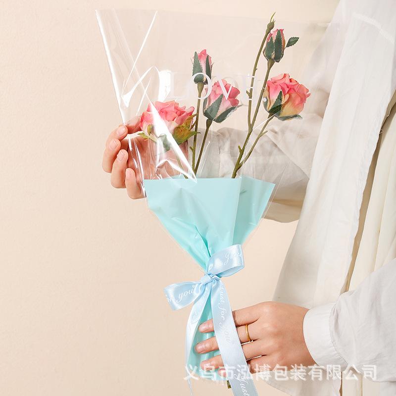 Bolsa Trapezoidal para Flores Estampada Inglés Transparente Bolsa de Plástico para Empaque de Flores Bolsa para Múltiples Ramas Bolsa para Empaque de Ramo