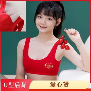 Sostén rojo para niñas para el año de nacimiento Rojo no chaleco pequeño sin aro de acero Ropa interior anticontrapunto para estudiantes Año del Dragón