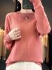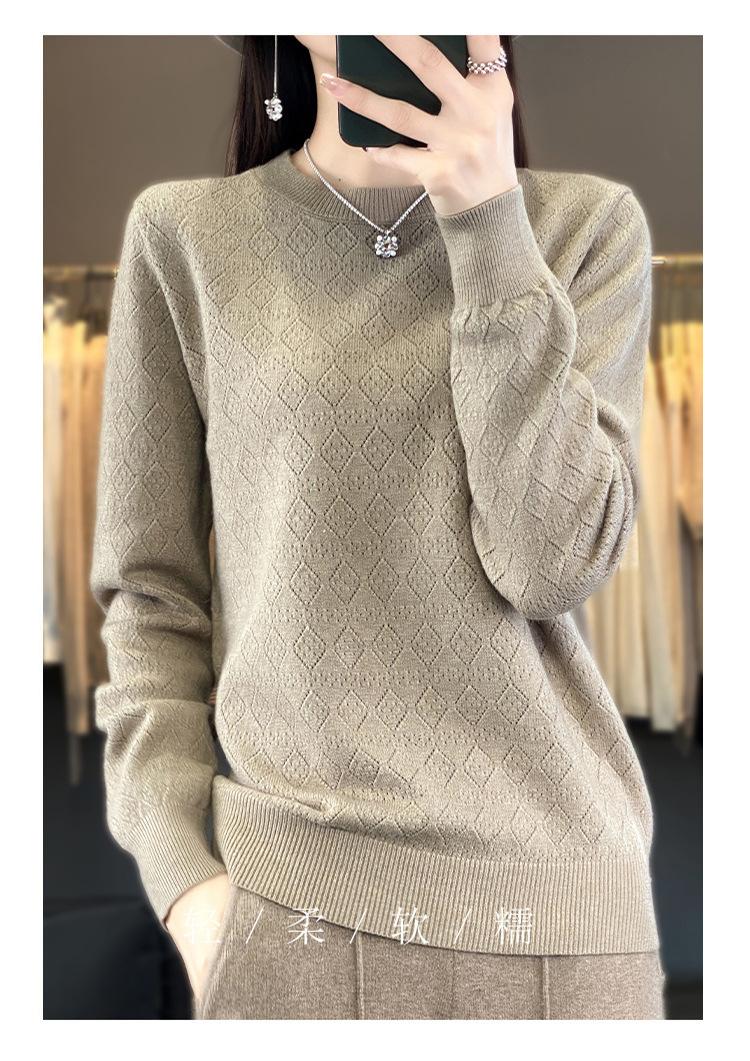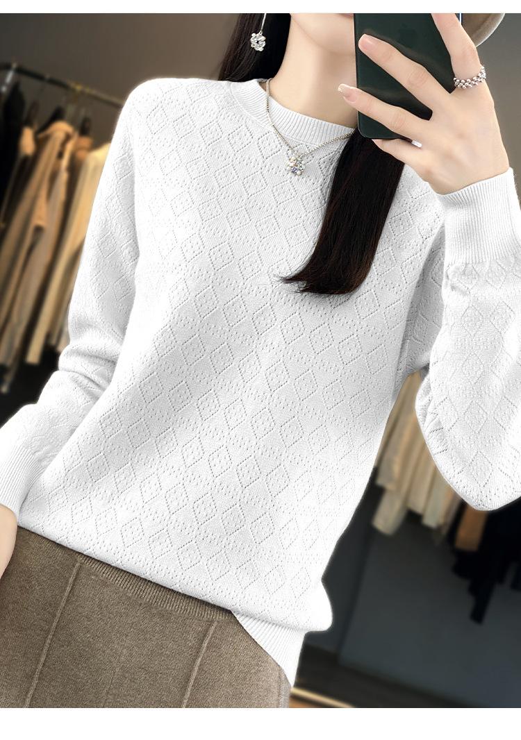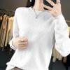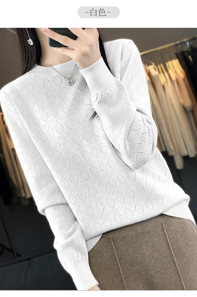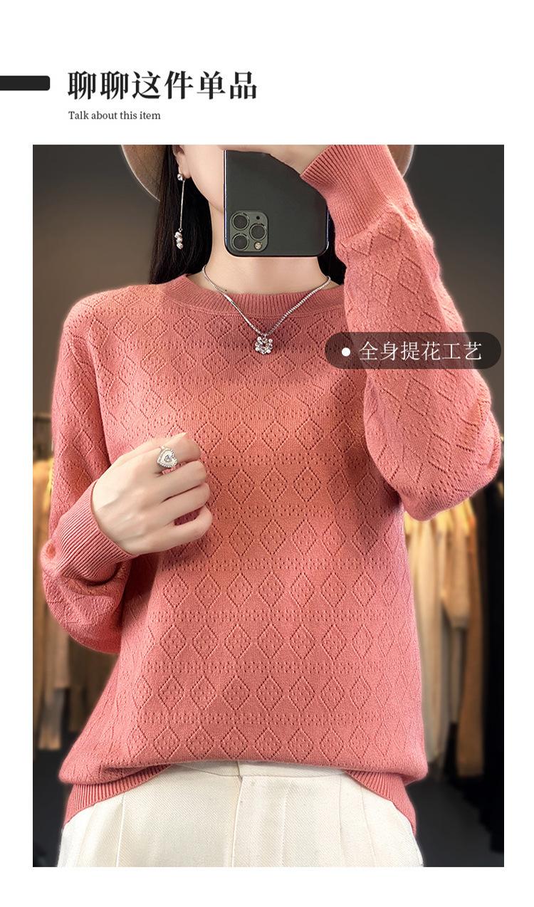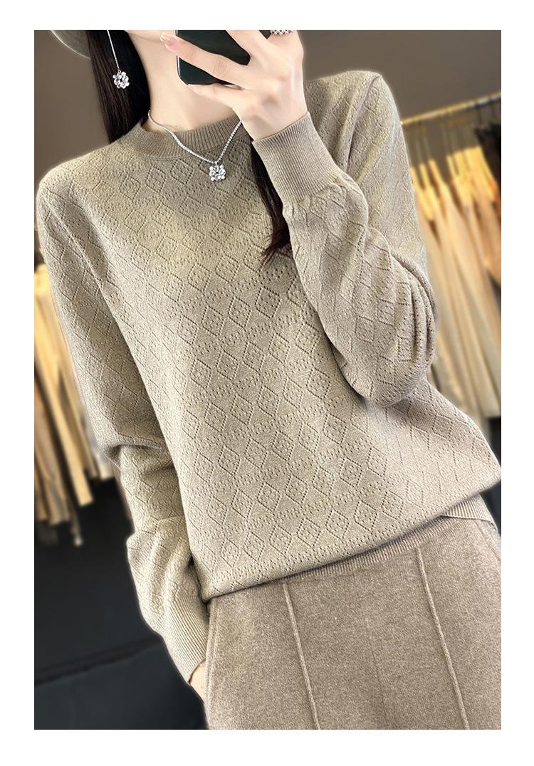 Suéter de cuello redondo hueco para mujer, suéter de manga larga, color sólido, camisa de base de terciopelo Andy, top de otoño 2023