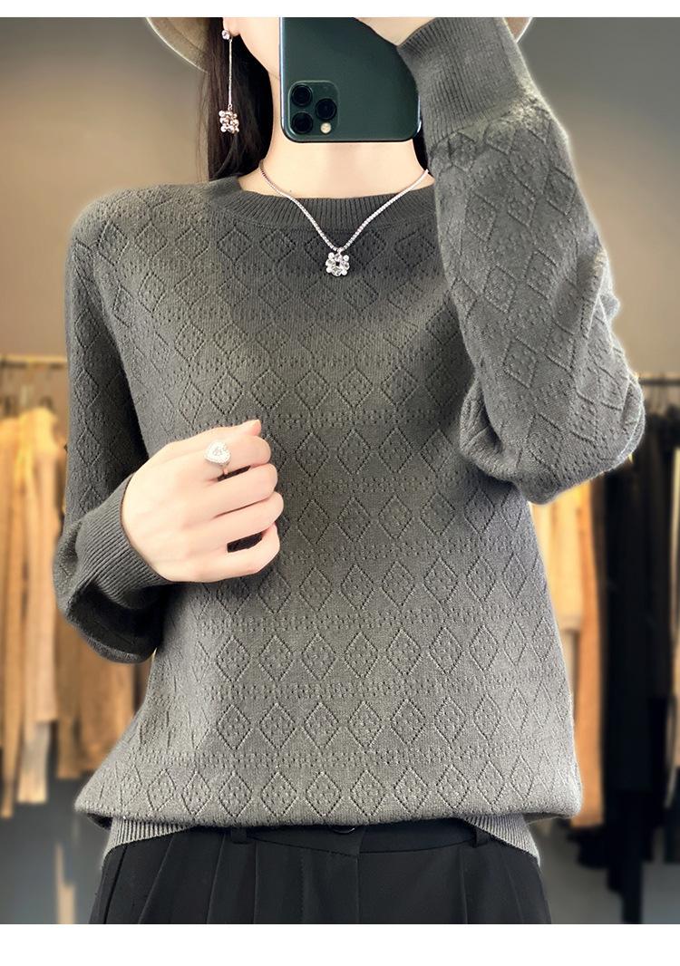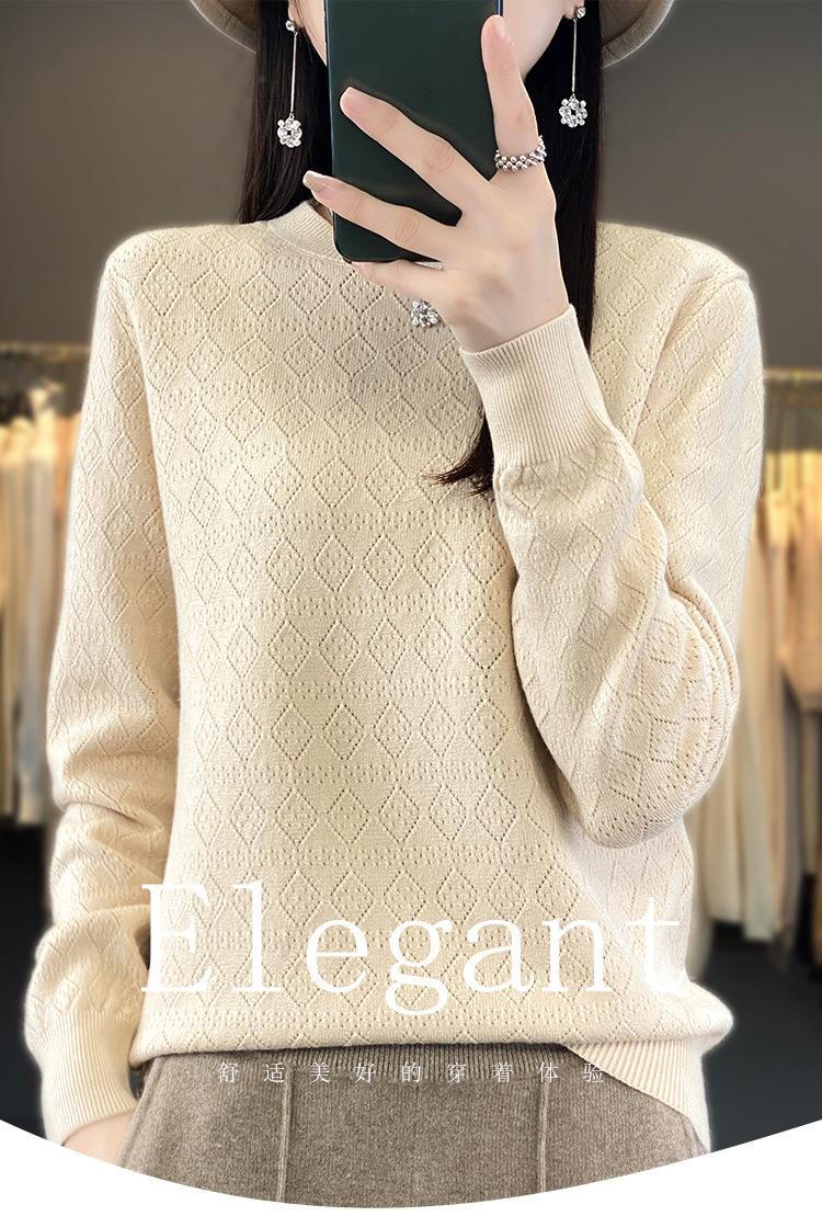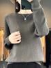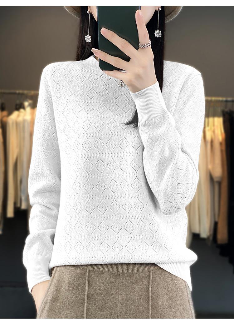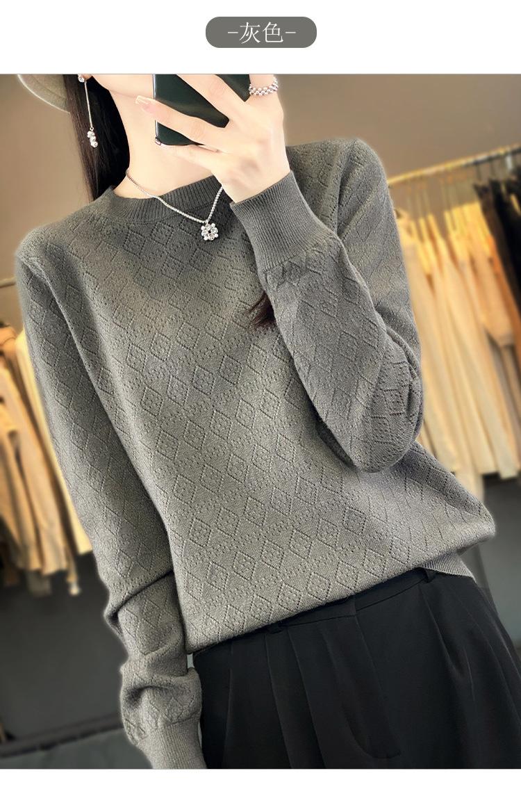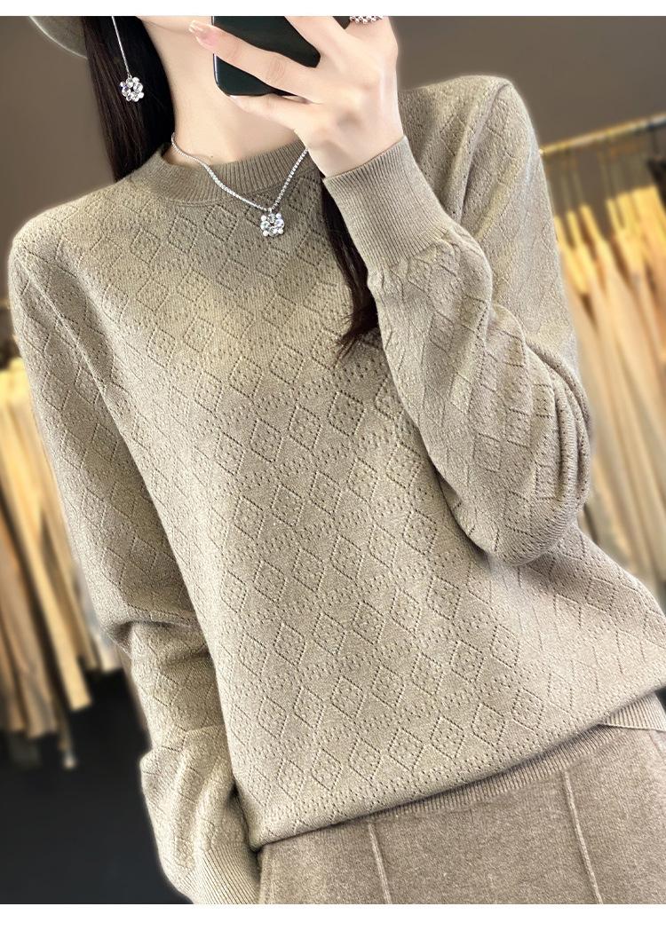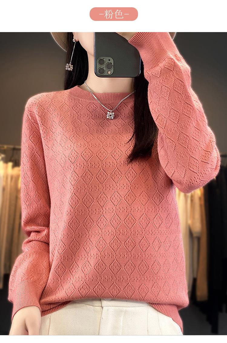 Suéter de cuello redondo hueco para mujer, suéter de manga larga, color sólido, camisa de base de terciopelo Andy, top de otoño 2023