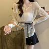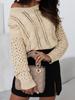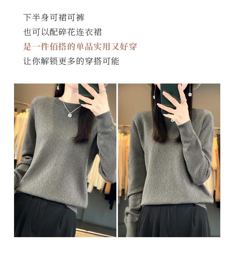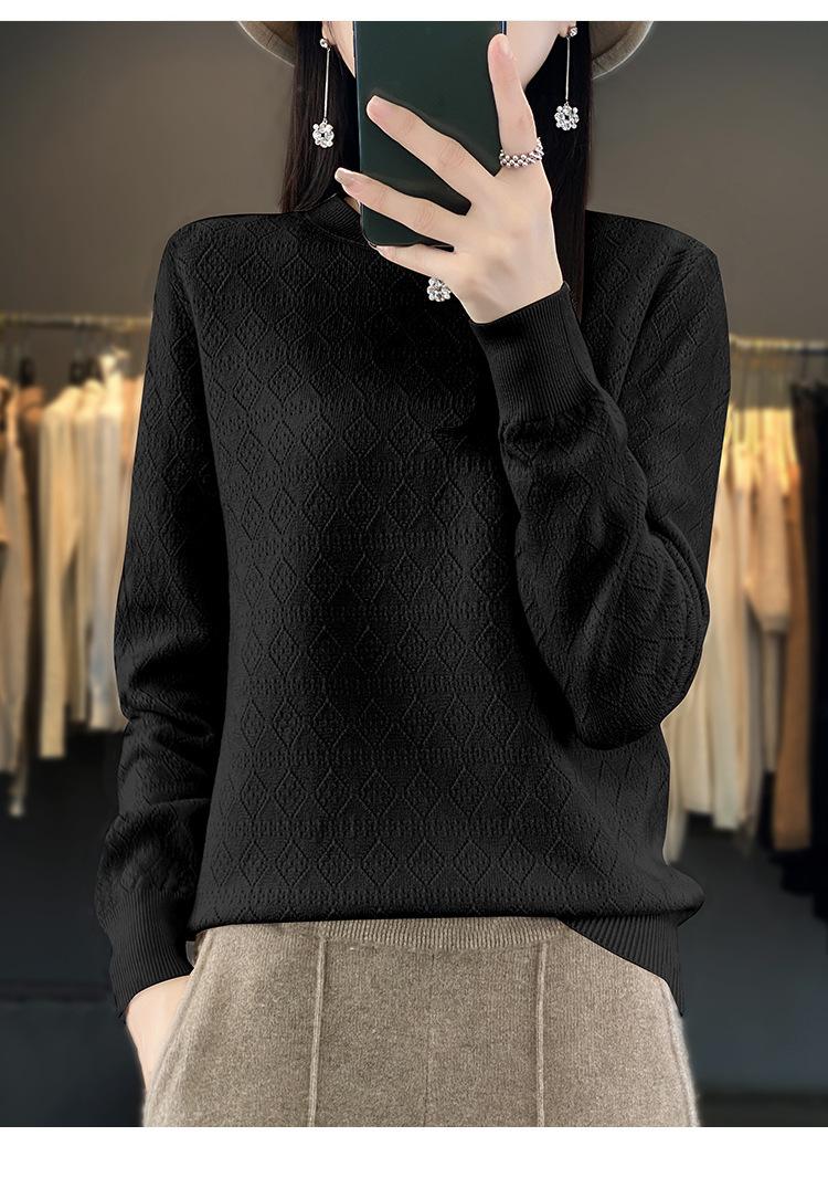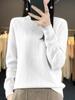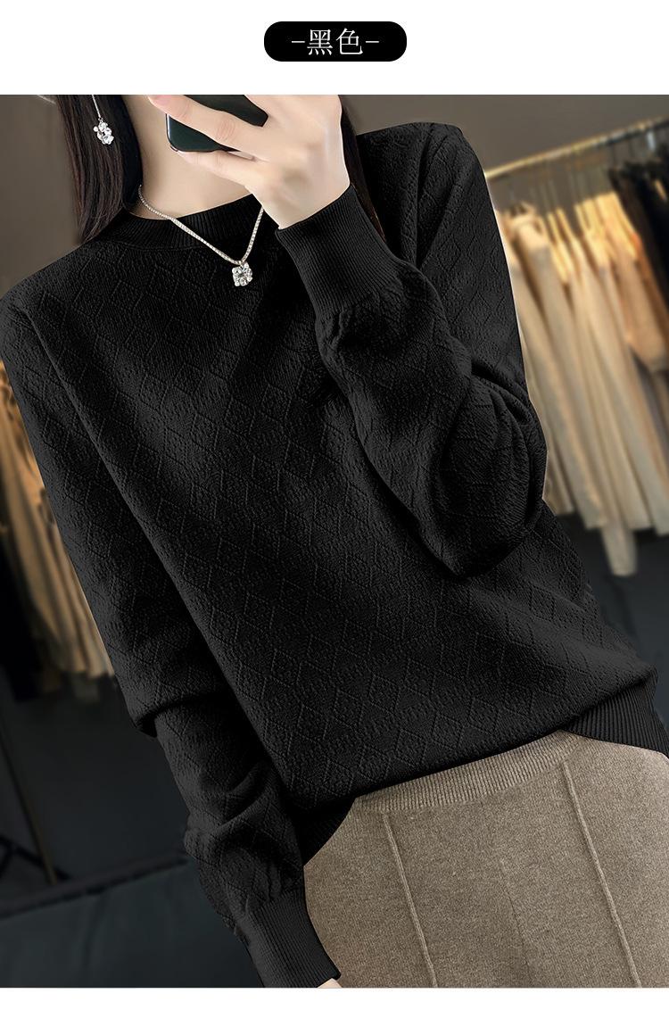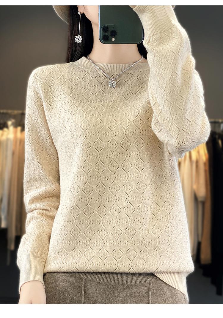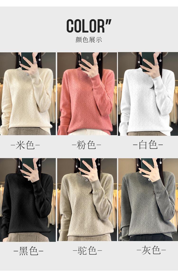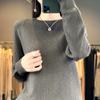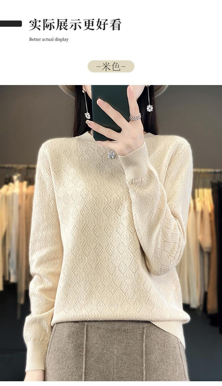 Suéter de cuello redondo hueco para mujer, suéter de manga larga, color sólido, camisa de base de terciopelo Andy, top de otoño 2023