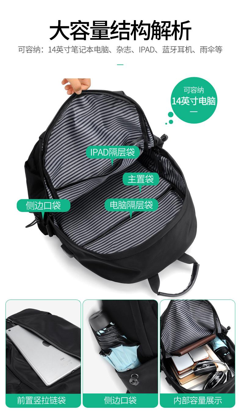 Mochila para estudiantes, negocios y ocio, mochila de 14 pulgadas, bolso para computadora, interfaz de carga USB, mochila para hombres