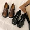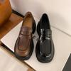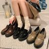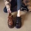 Zapatos de Mujer de Piel Genuina de Punta Redonda y Suela Gruesa Primavera 2025 Flats de Piel de Vacuno de Primera Capa Tacón de Plataforma Zapatos Casuales de Tacón Alto para Mujer