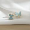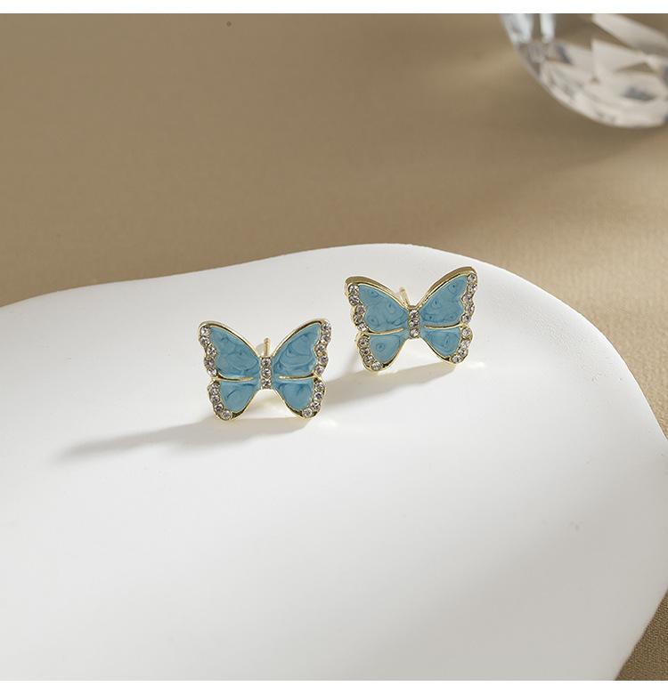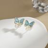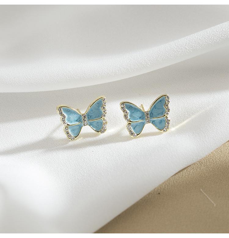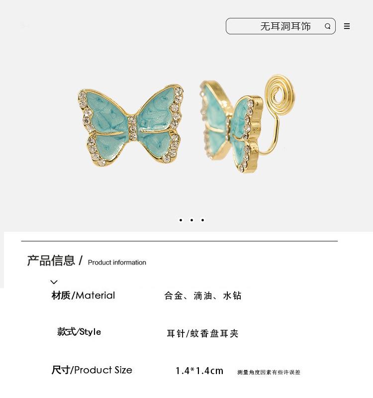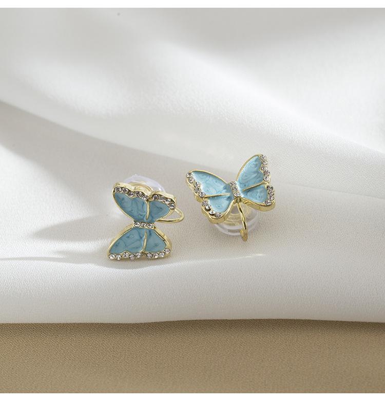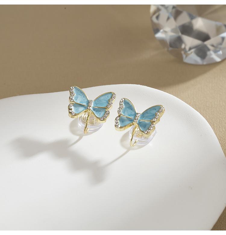 Aretes pequeños elegantes de mariposa azul fresco para mujer, modernos, elegantes, inteligentes, lindos, clip para la oreja sin perforación
