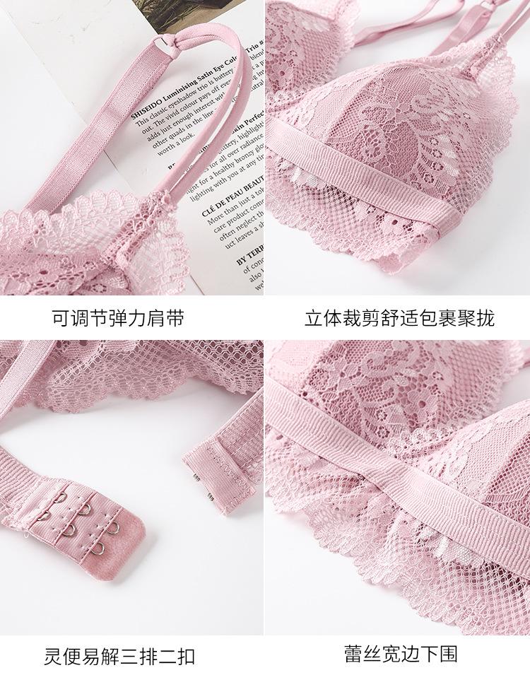 Sujetador de encaje francés, ropa interior transparente, ahuecado, con espalda fina y hermosa, que no deja marcas.