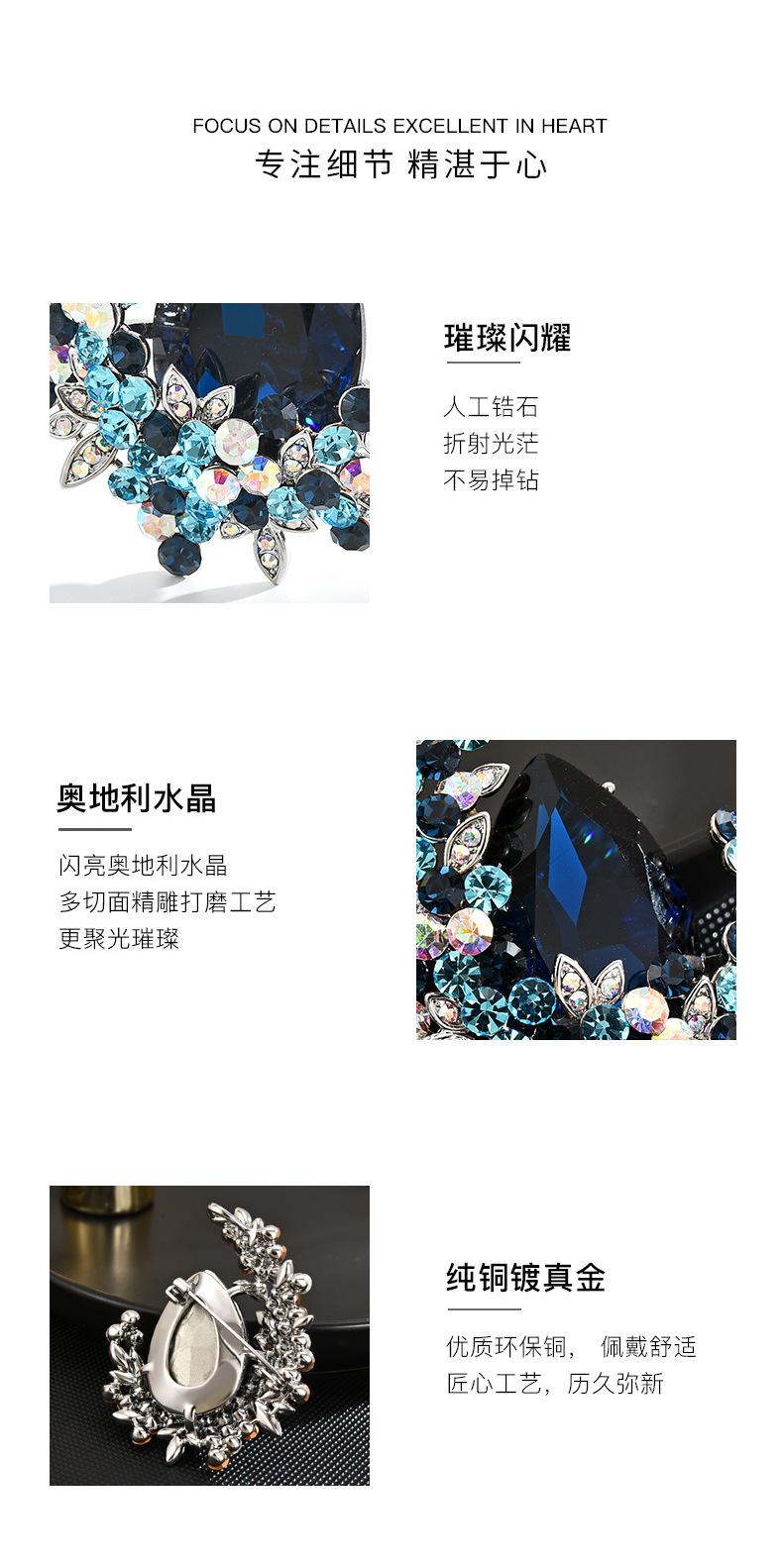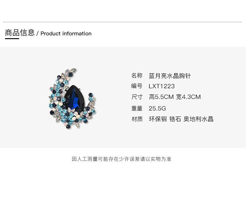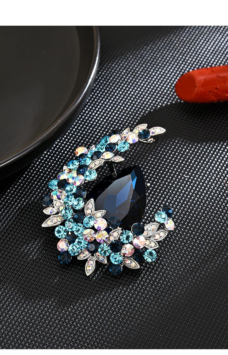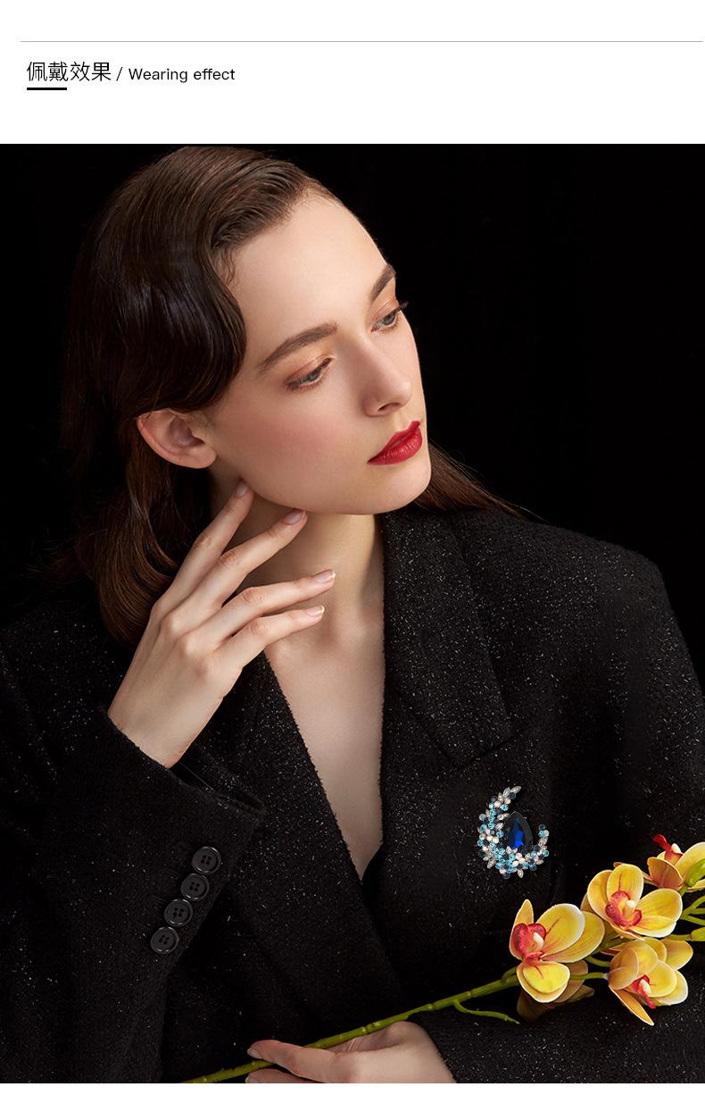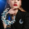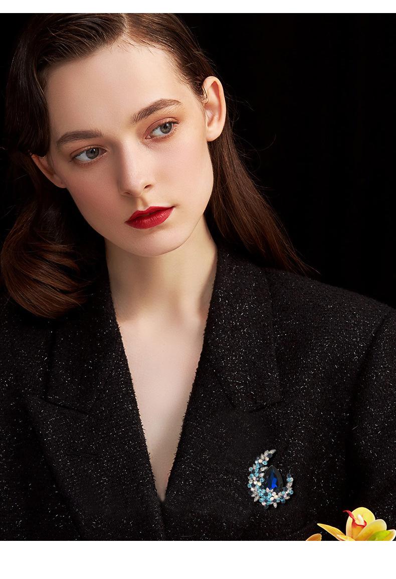 Broche de cristal de alta gama con diseño de luna europea y americana, ramillete de lujo, elegante alfiler para traje, accesorios exquisitos antiexposición para mujer