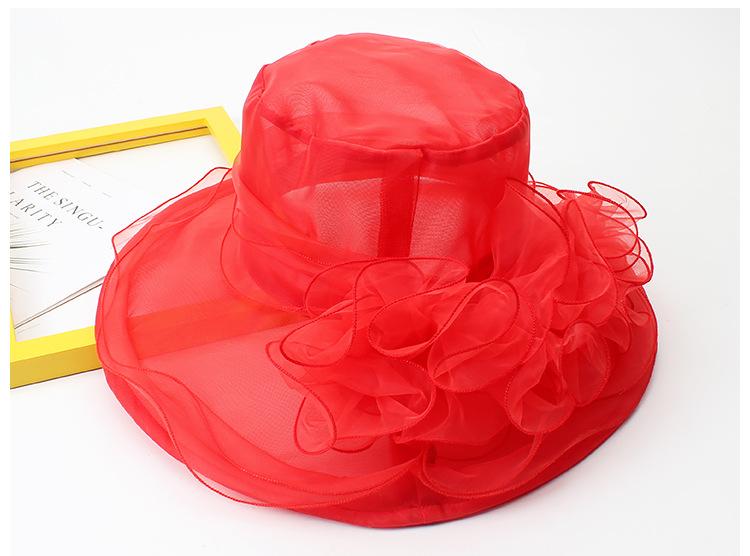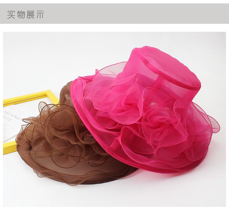 Sombrero para Mujer, Estilo Hepburn de Verano, Organza Floral Vacaciones Playa Protección Solar Sombrero de Sol de Copa Plana con Ala Ancha