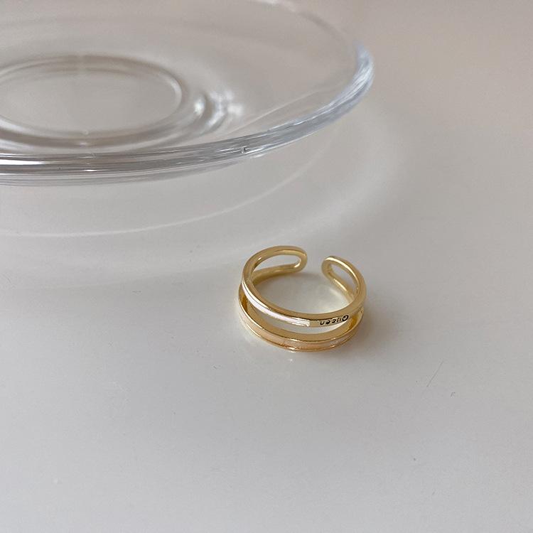 Anillo de perlas de plata de ley 925 con líneas minimalistas, diseño de nicho femenino, estilo ins, personalidad geométrica, anillo abierto de alta gama