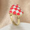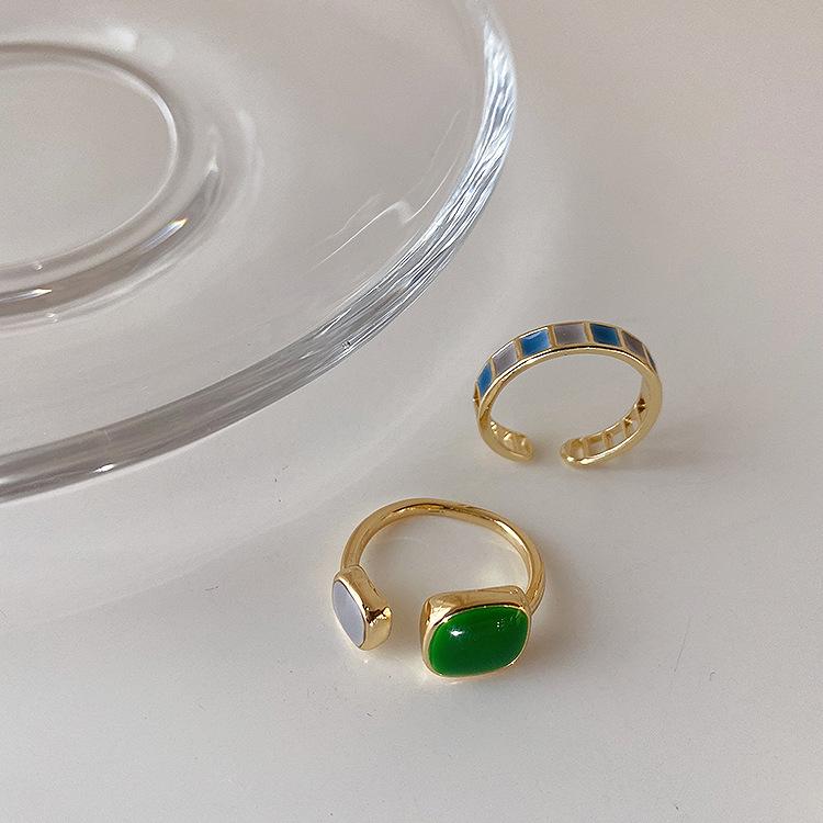 Anillo Abierto de Metal a Cuadros Retro Estilo Francés con Gota de Esmalte para Mujer Anillo Coreano Simple Versátil Elegante para Mujer