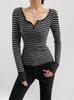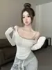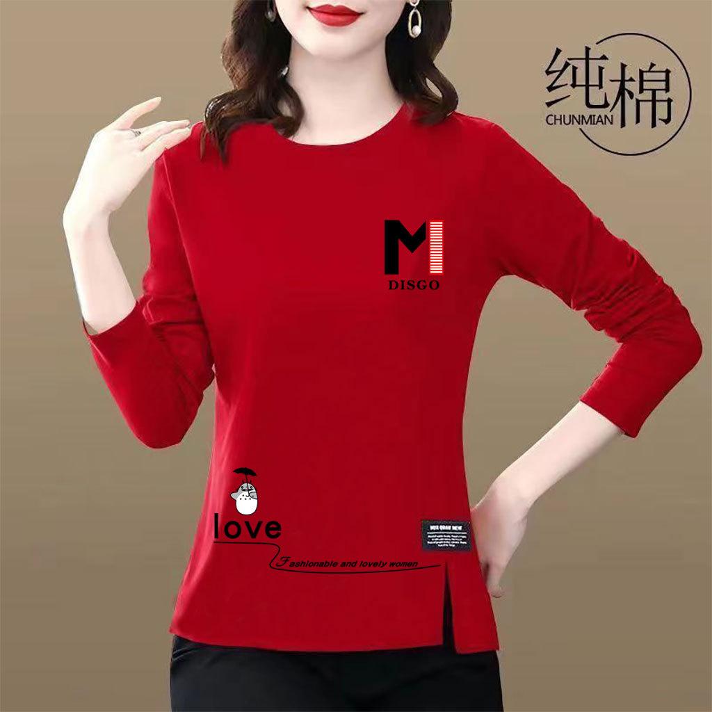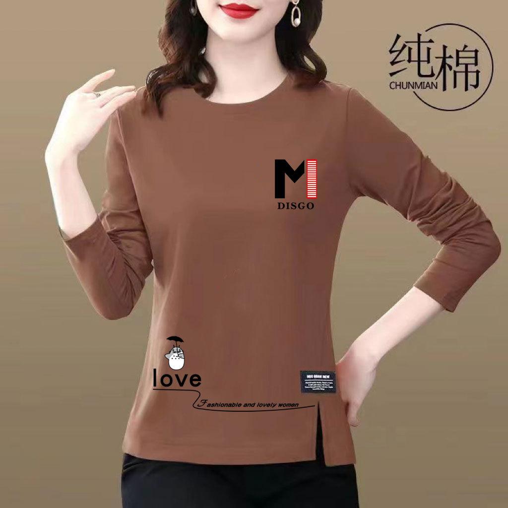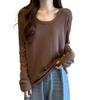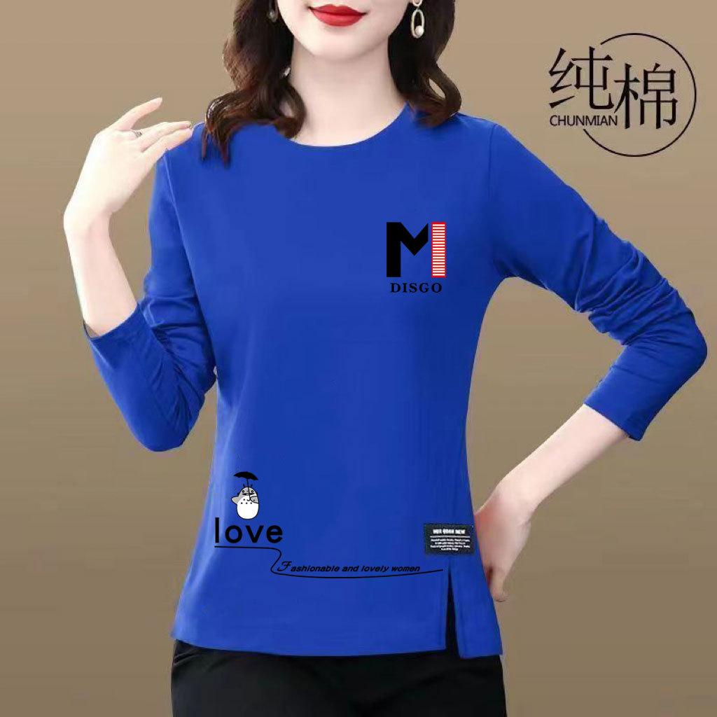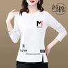 Camiseta de algodón para mujer, nueva tendencia de primavera y otoño, manga larga, suelta, adelgazante, estilo occidental, parte superior dividida, camiseta irregular, camiseta de fondo