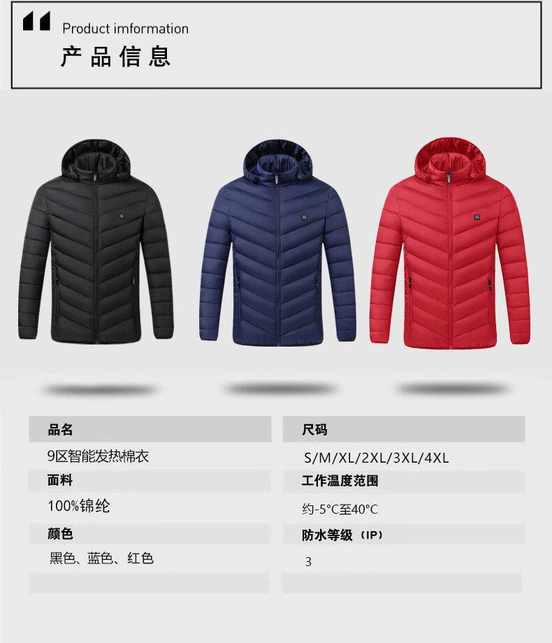 Ropa acolchada de algodón USB del distrito 9, estilo coreano juvenil, nueva y moderna ropa informal con calefacción, abrigo acolchado de algodón a la moda, sencillo y combinable.
