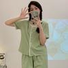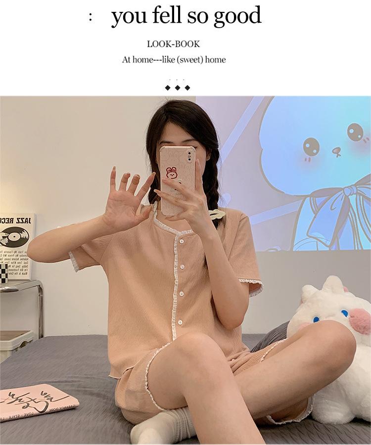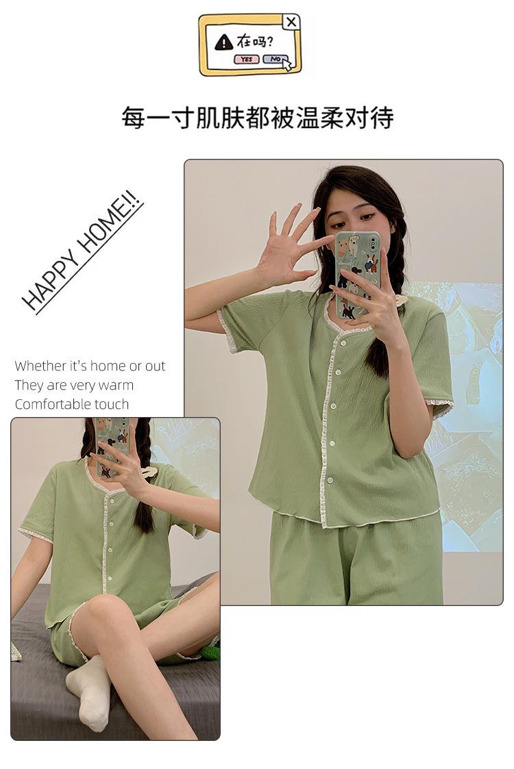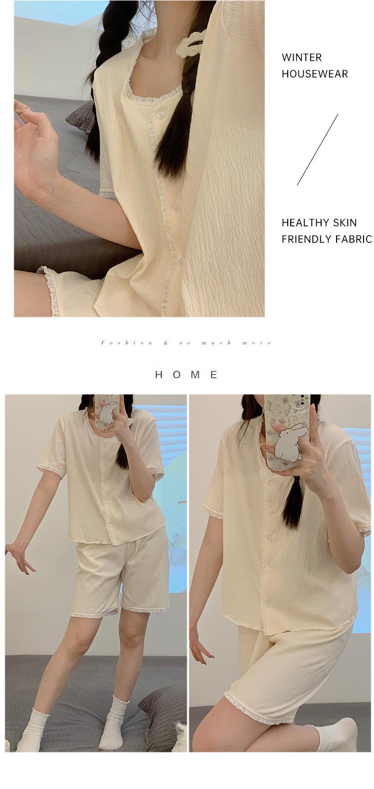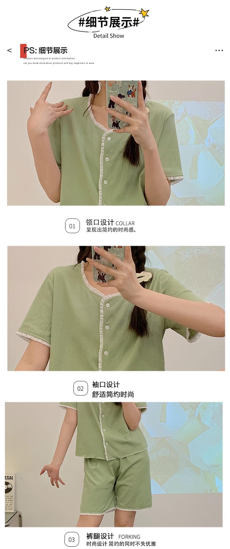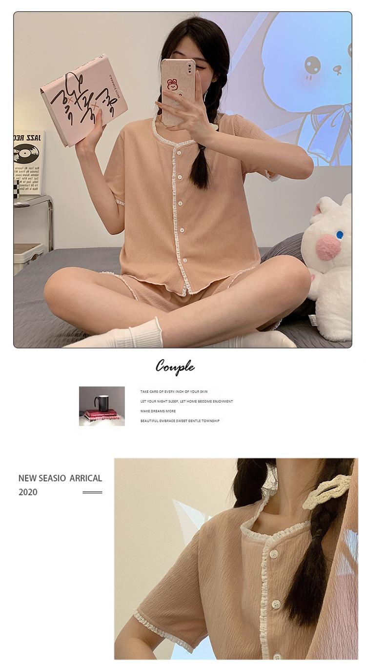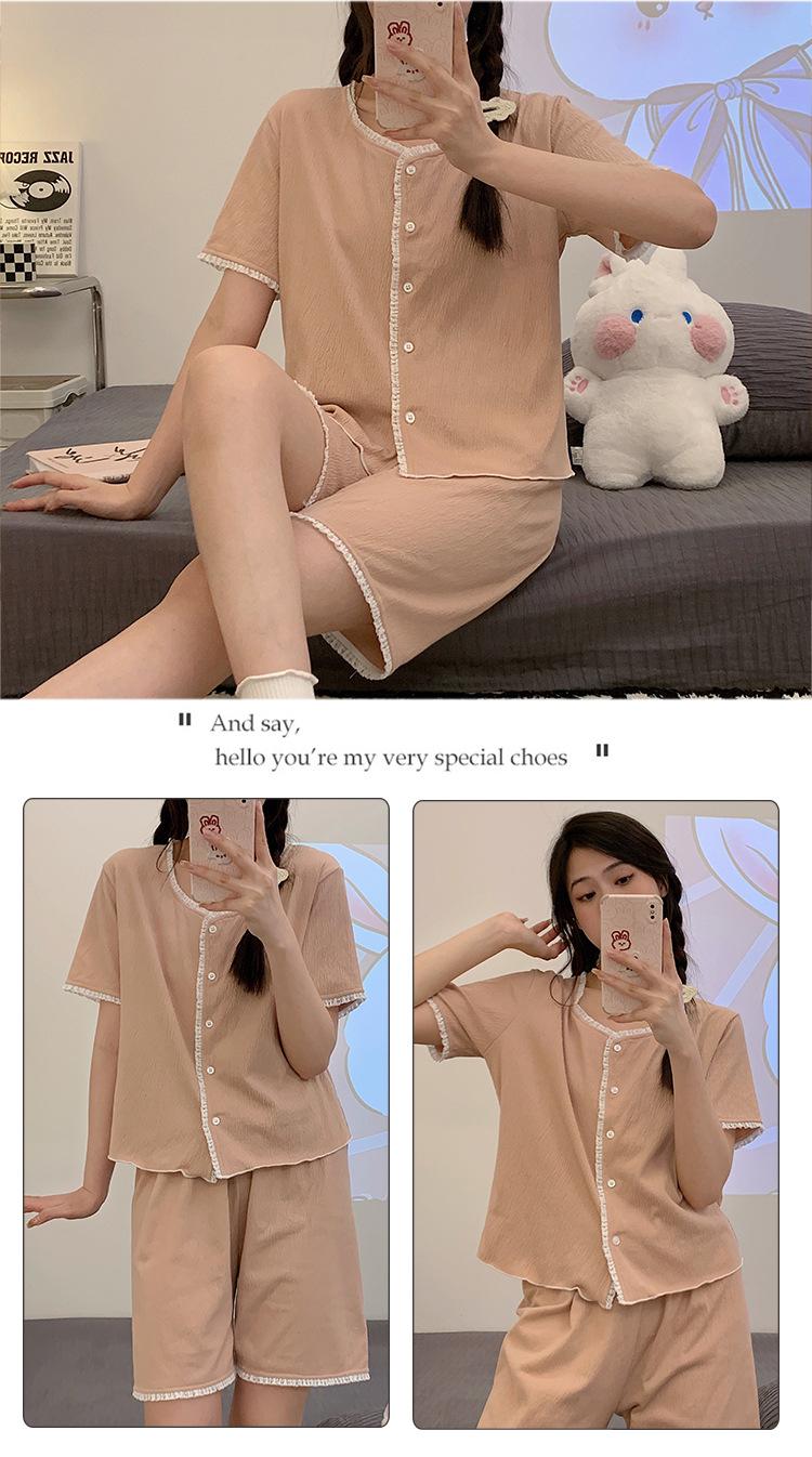 Pijama de algodón arrugado para mujer, bonito cárdigan de verano con estilo dulce, pantalones cortos holgados de manga corta, ropa de abrigo para el hogar