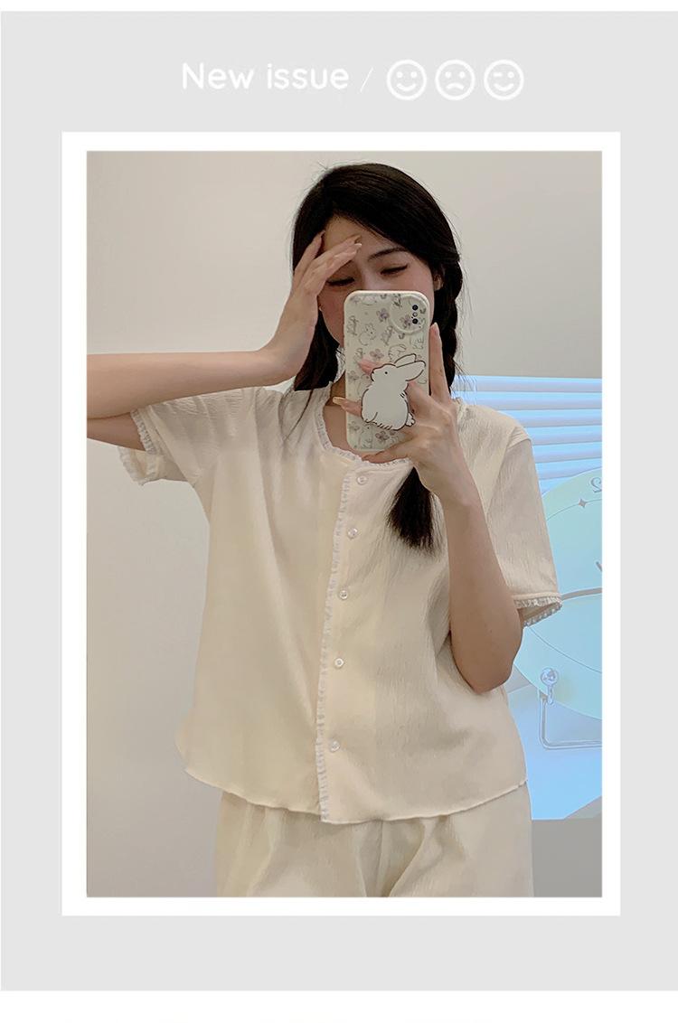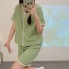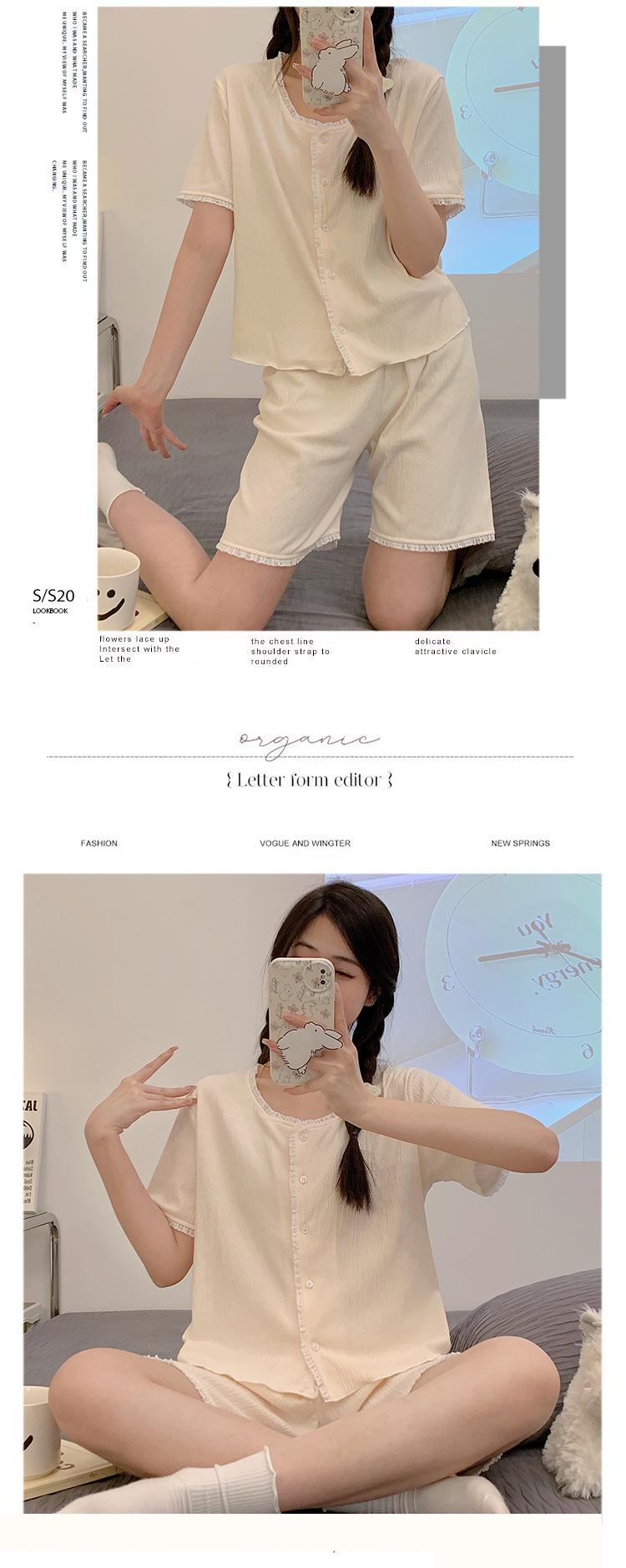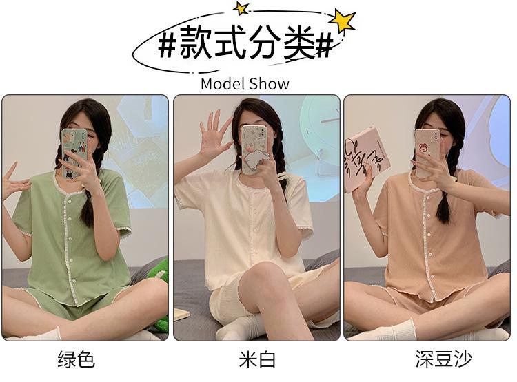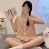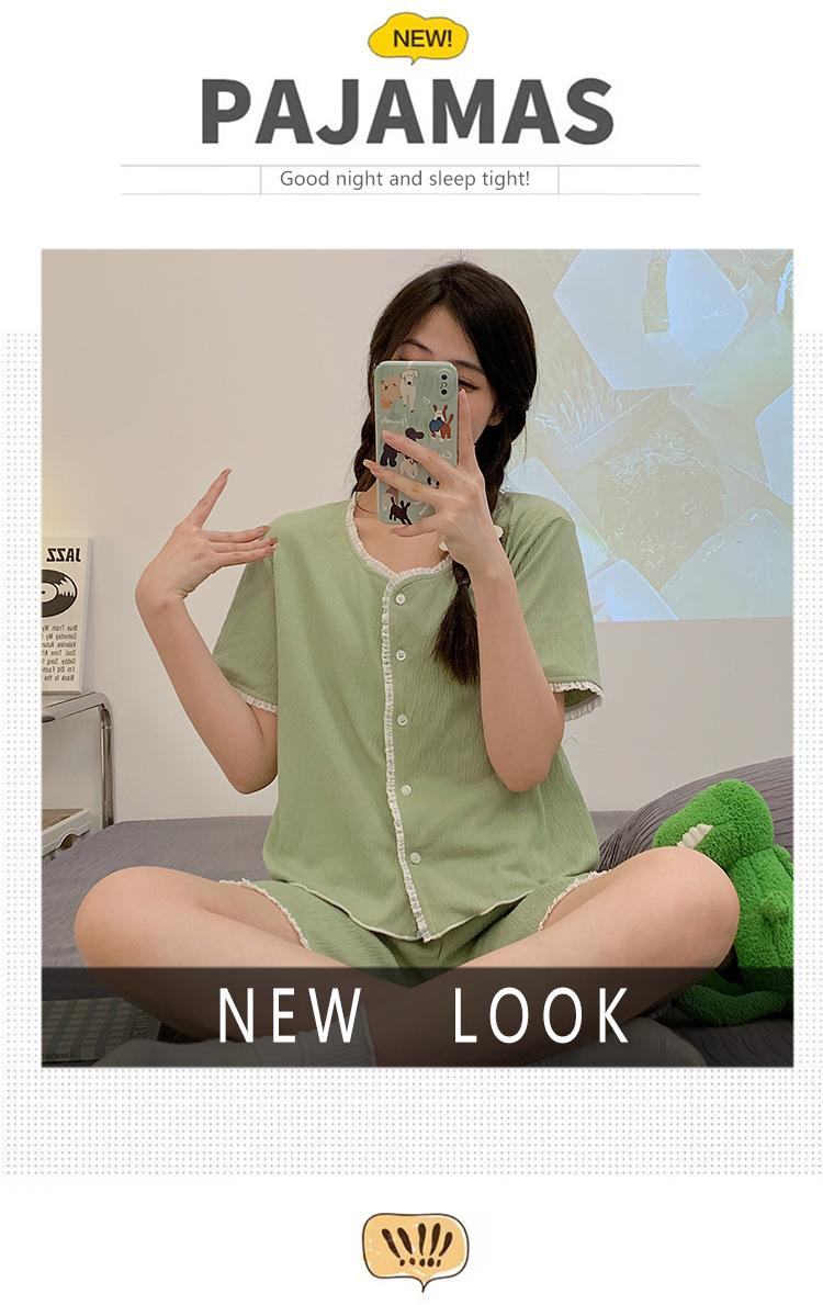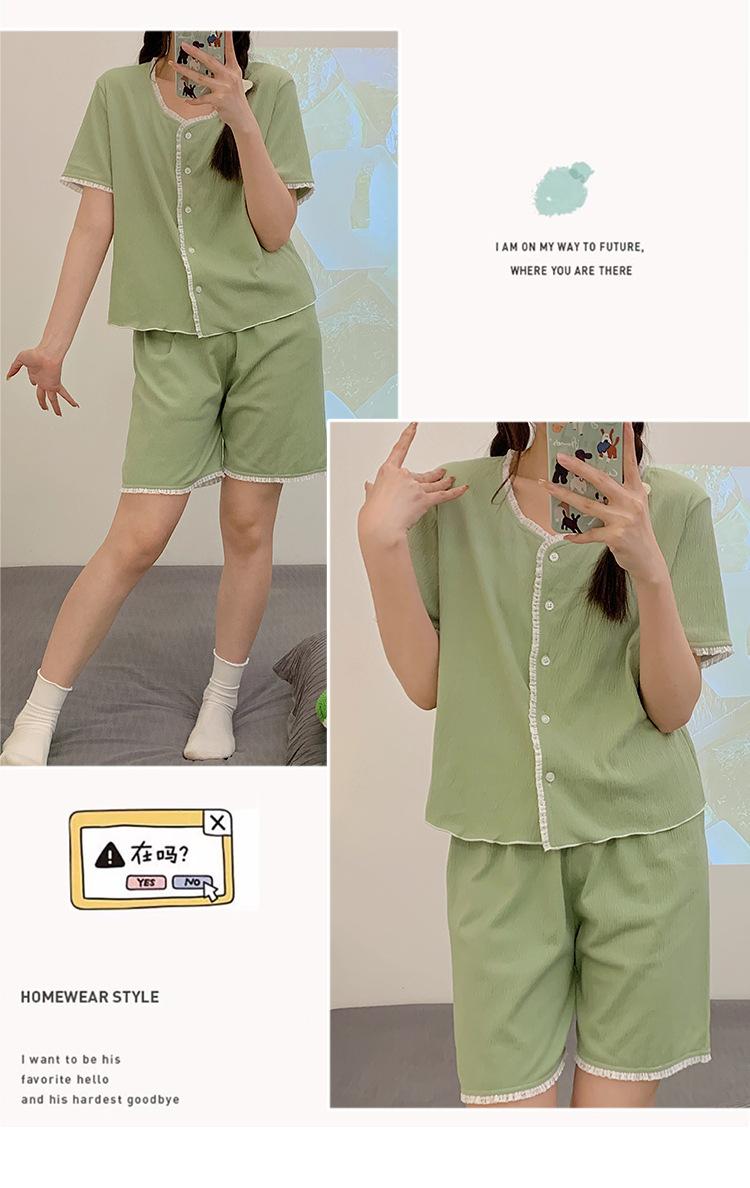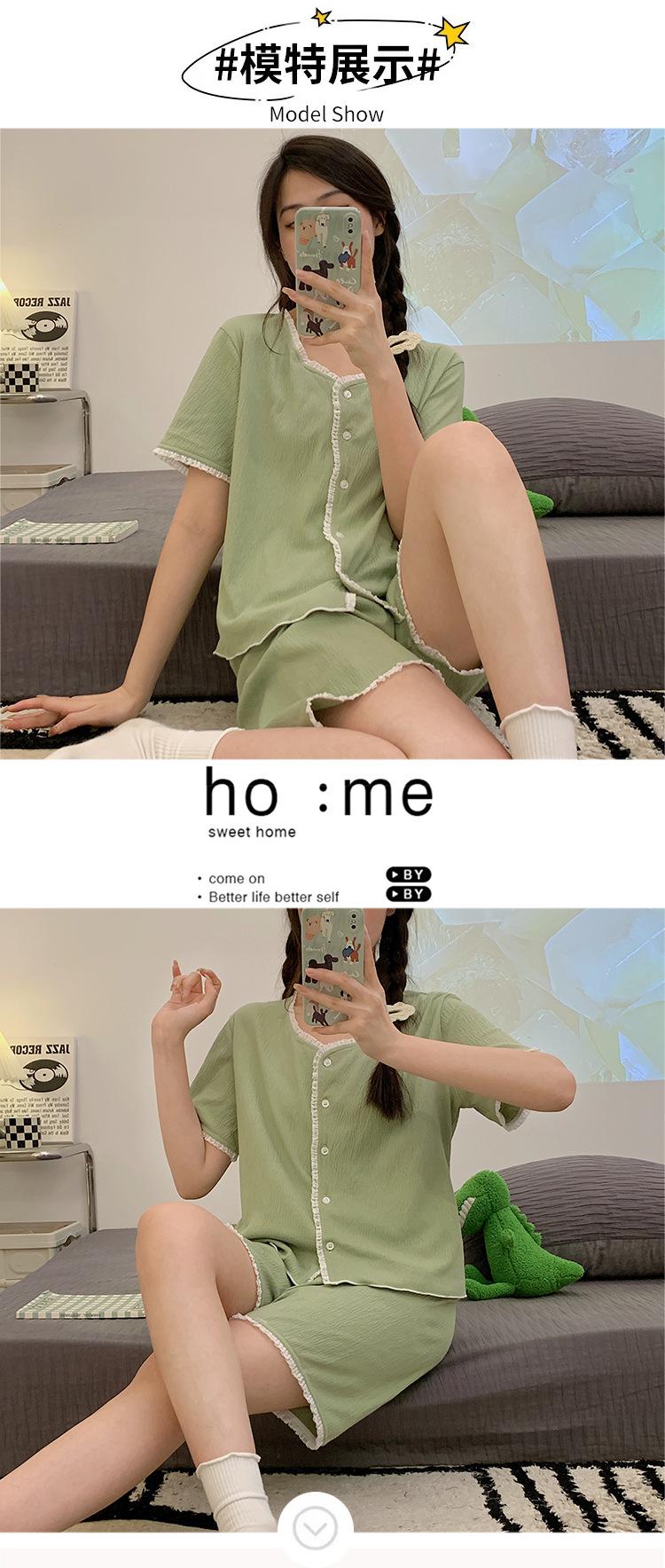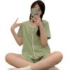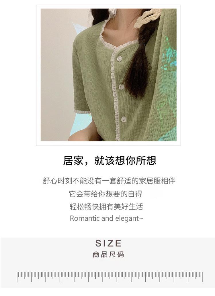 Pijama de algodón arrugado para mujer, bonito cárdigan de verano con estilo dulce, pantalones cortos holgados de manga corta, ropa de abrigo para el hogar