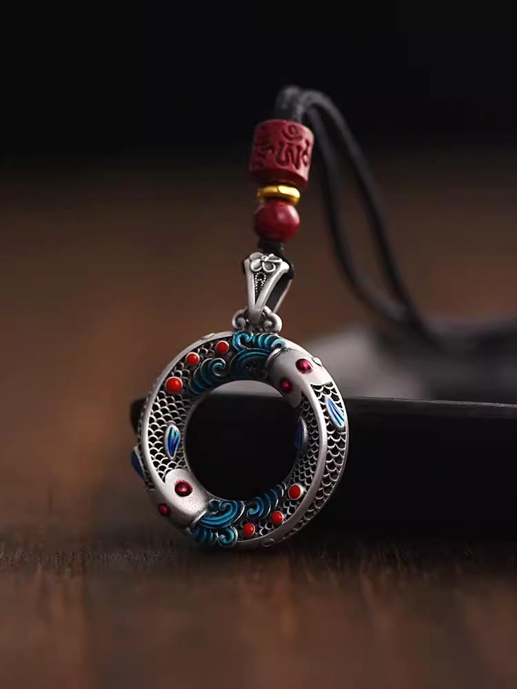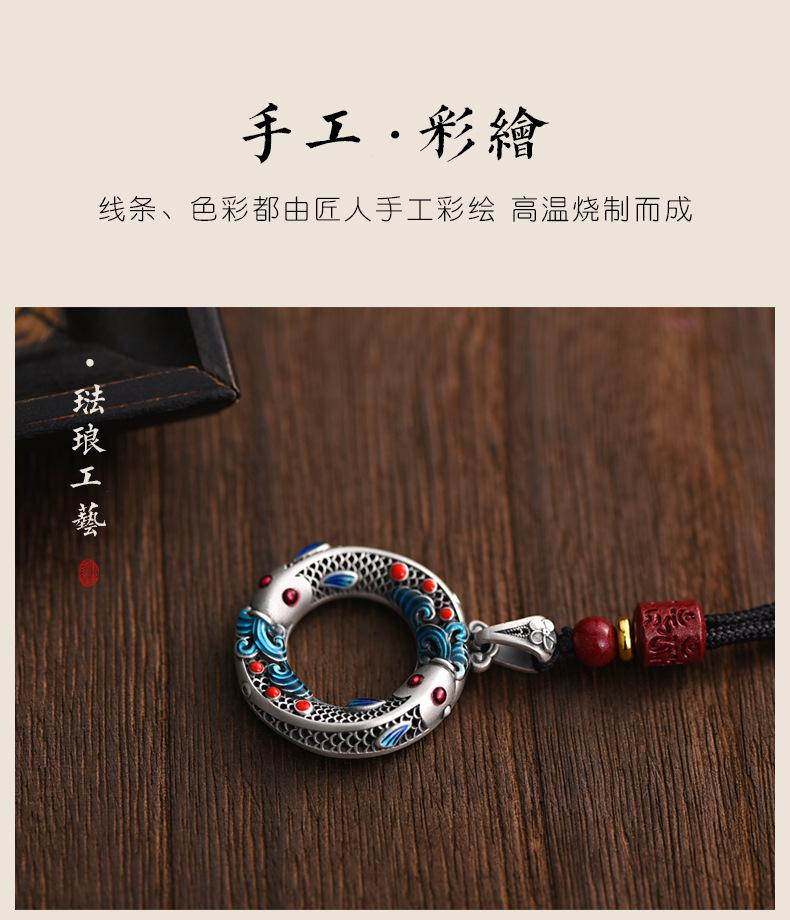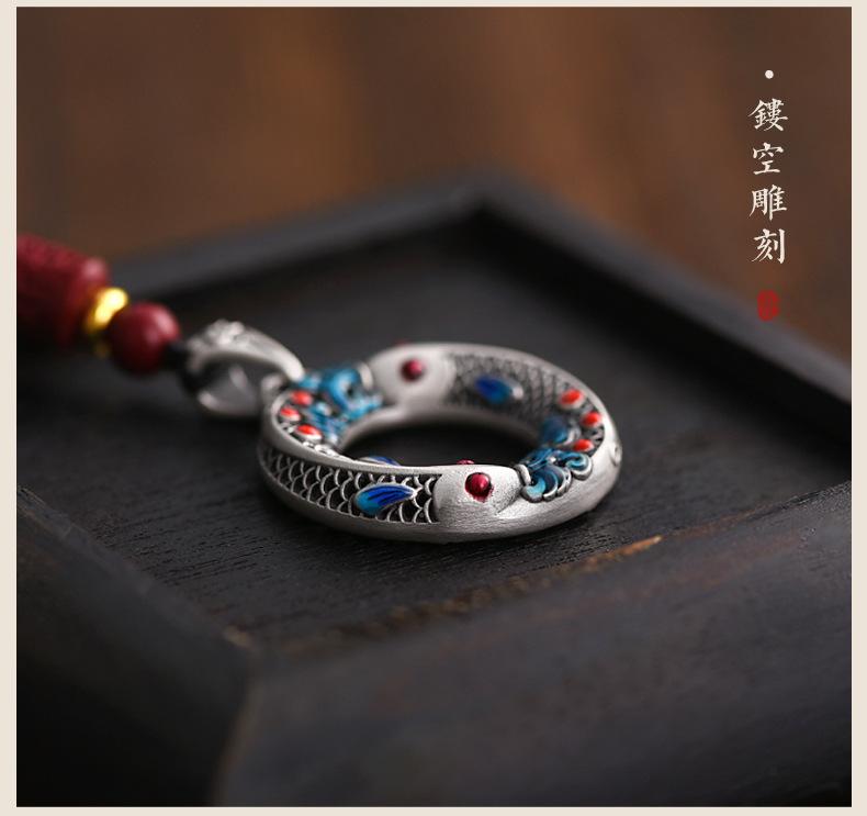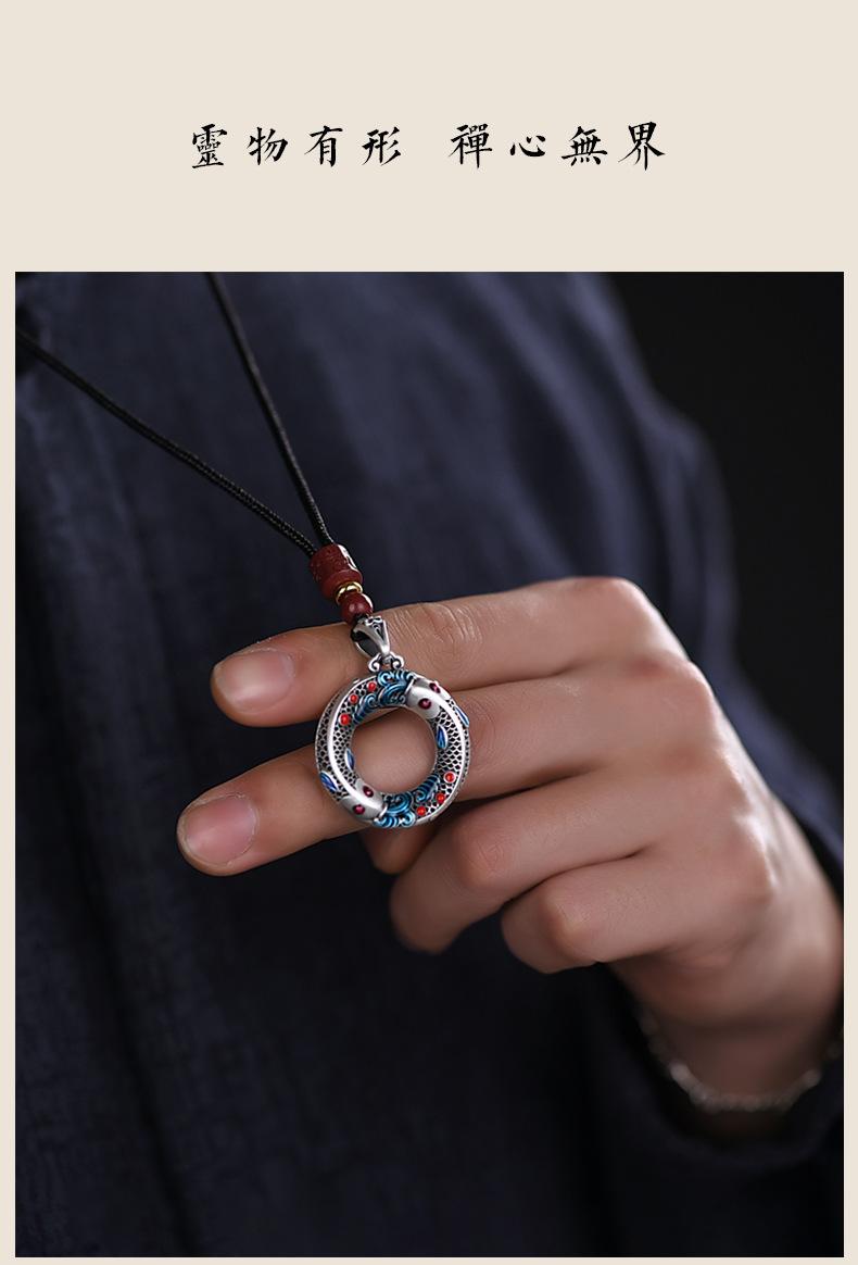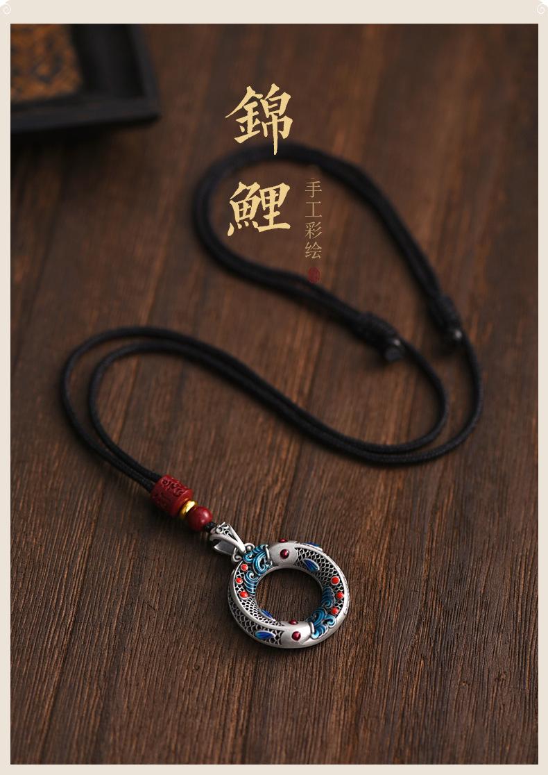 Colgante de hebilla de seguridad de esmalte para hombre y mujer, moda nacional artística retro, collar hueco de koi de estilo nacional, accesorios para hombre
