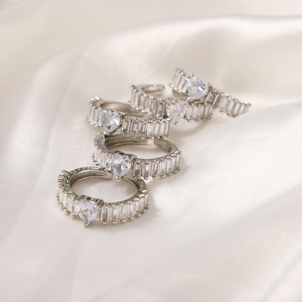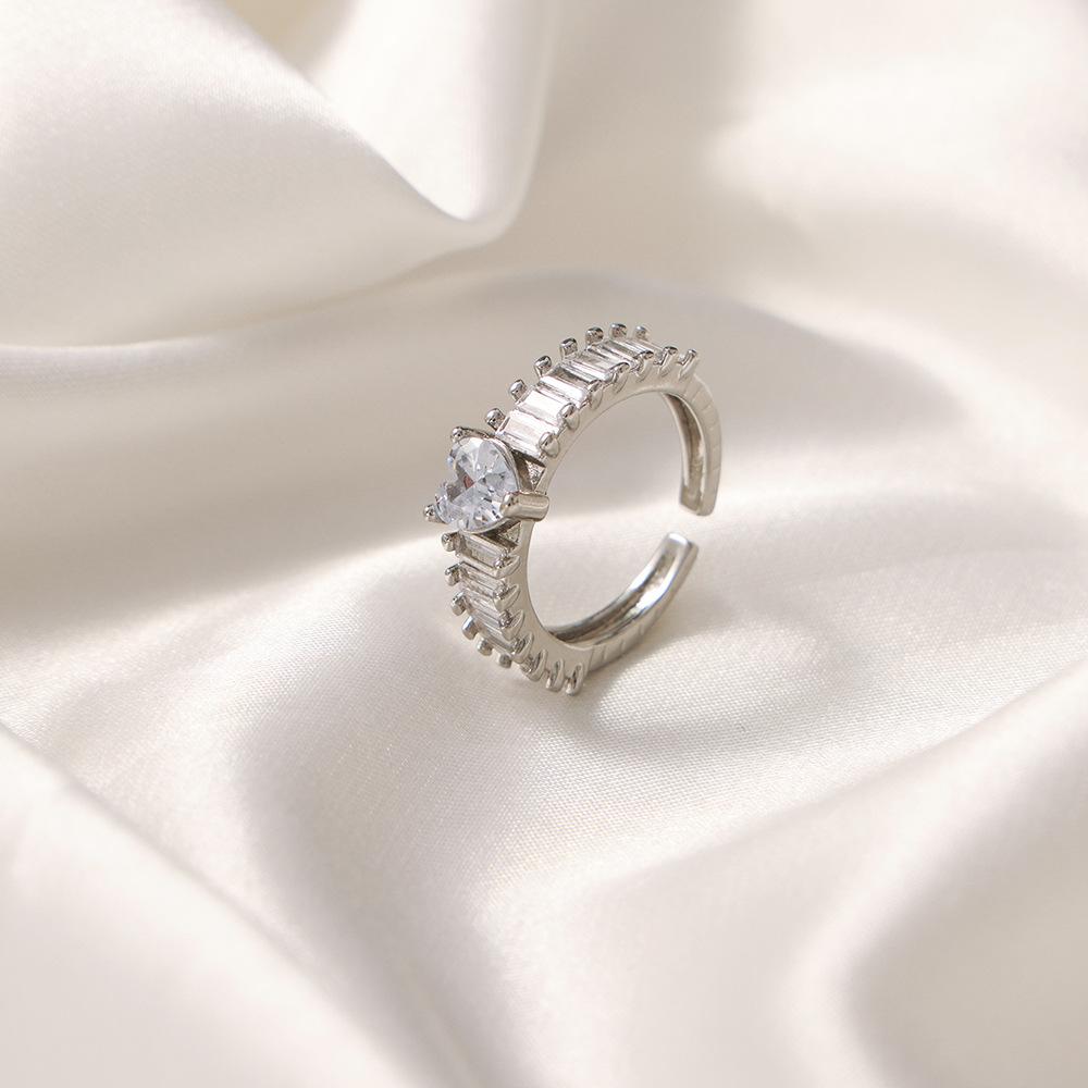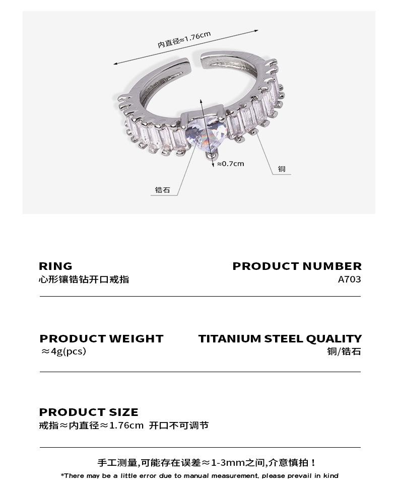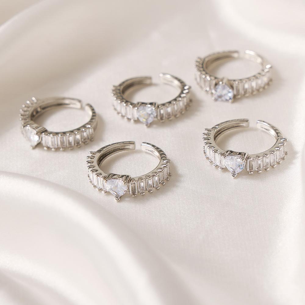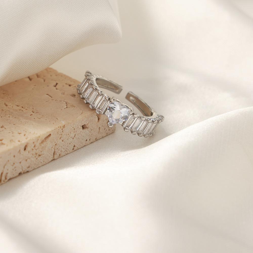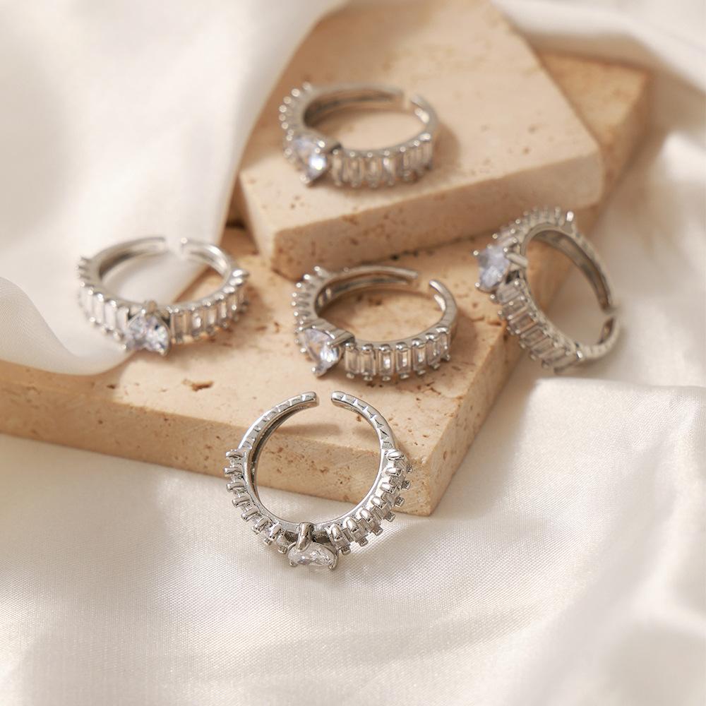 Anillo de boda en forma de corazón de estilo europeo y americano, de gran venta, con diseño de tesoro de color, joyería de moda con temperamento, anillo de material de cobre al por mayor