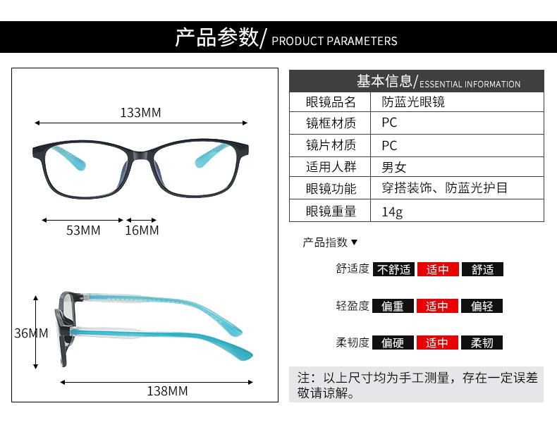 Black frame (anti-blue light), Purple frame (anti-blue light), Red frame (anti-blue light), Transparent gray f...