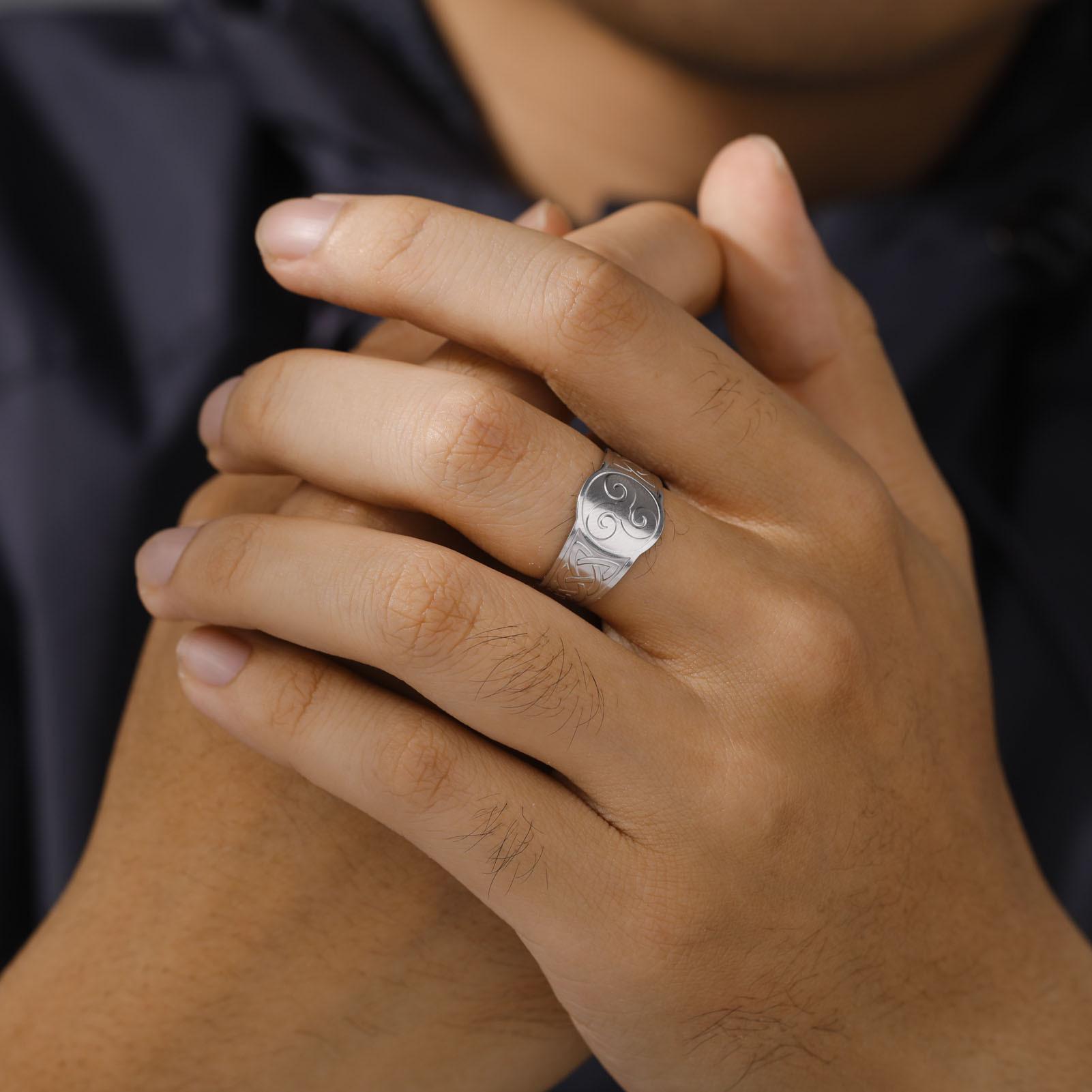 Acero de Titanio Transfronterizo Color Acero Dorado Patrón de Tres Rodillos Anillo Abierto Moderno Acero Inoxidable Anillo Abierto para Hombres y Mujeres