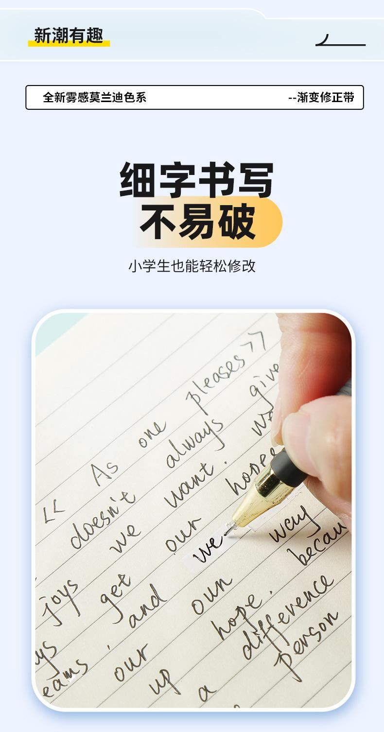 Cinta correctora de gran capacidad, alto valor, color degradado, cinta correctora especial para estudiantes de secundaria