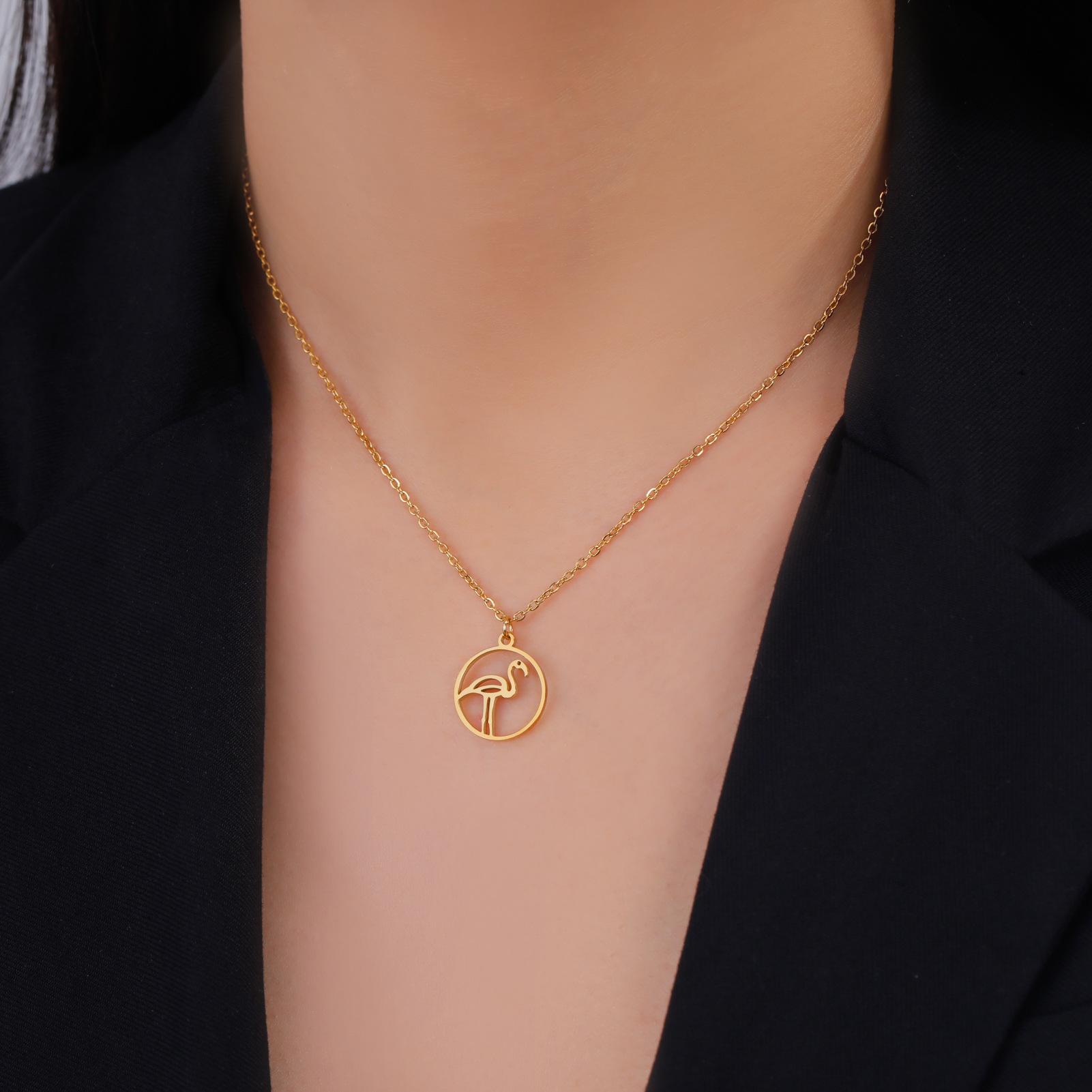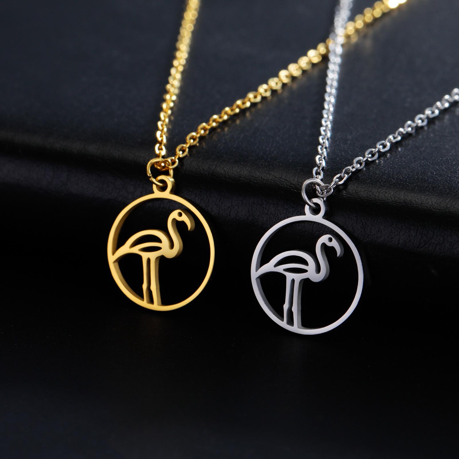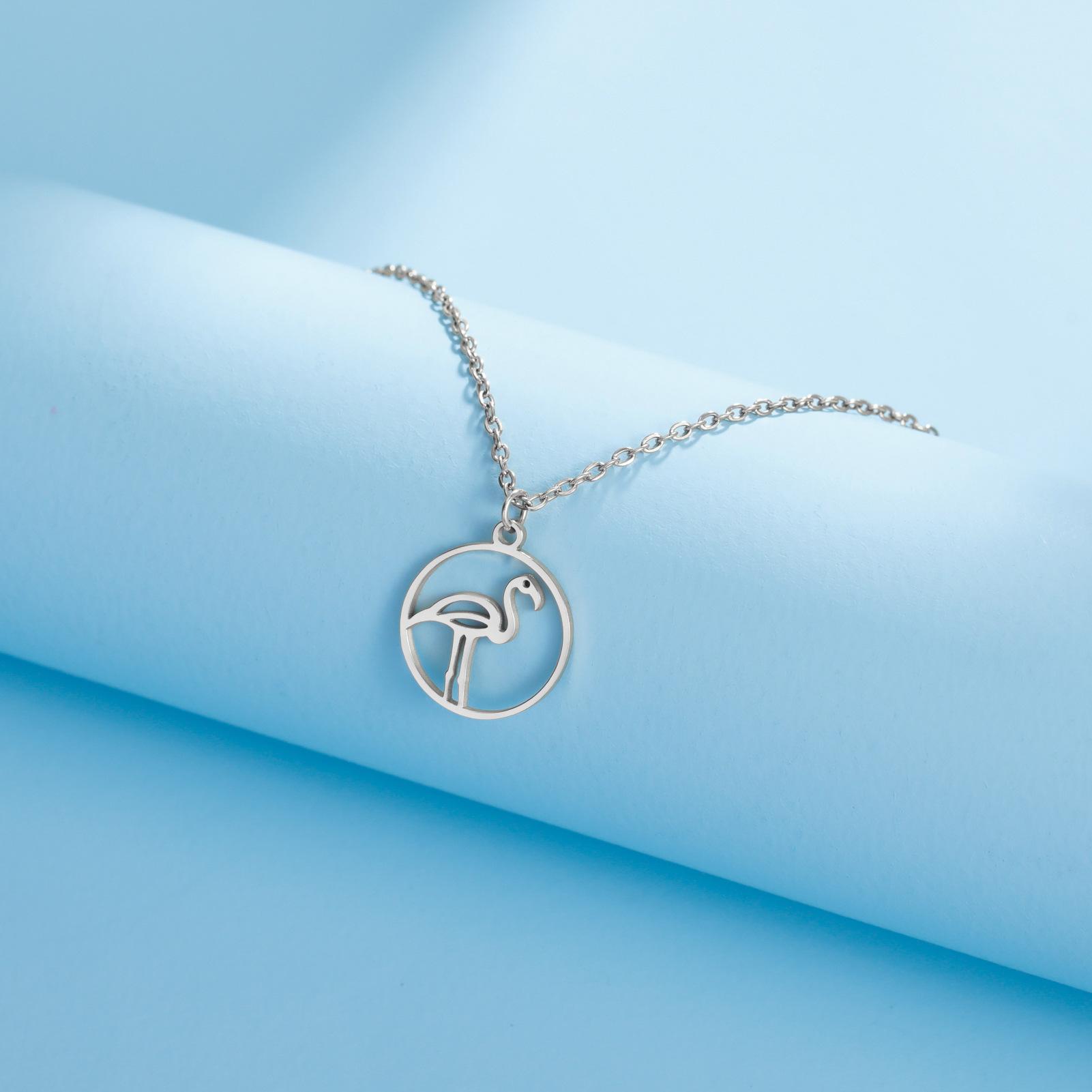 Collar de flamenco juvenil de acero inoxidable con colgante de pájaro, tendencia de moda, joyería natural, accesorios para mujer, regalo de cumpleaños