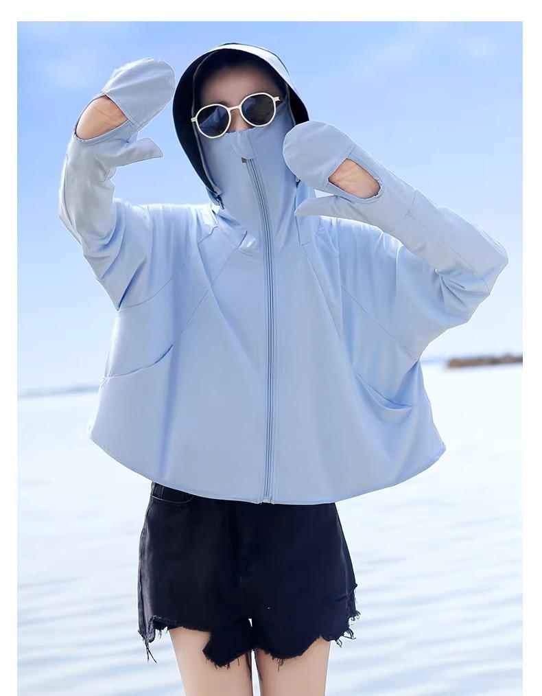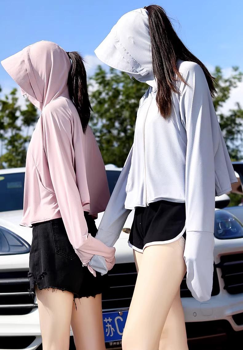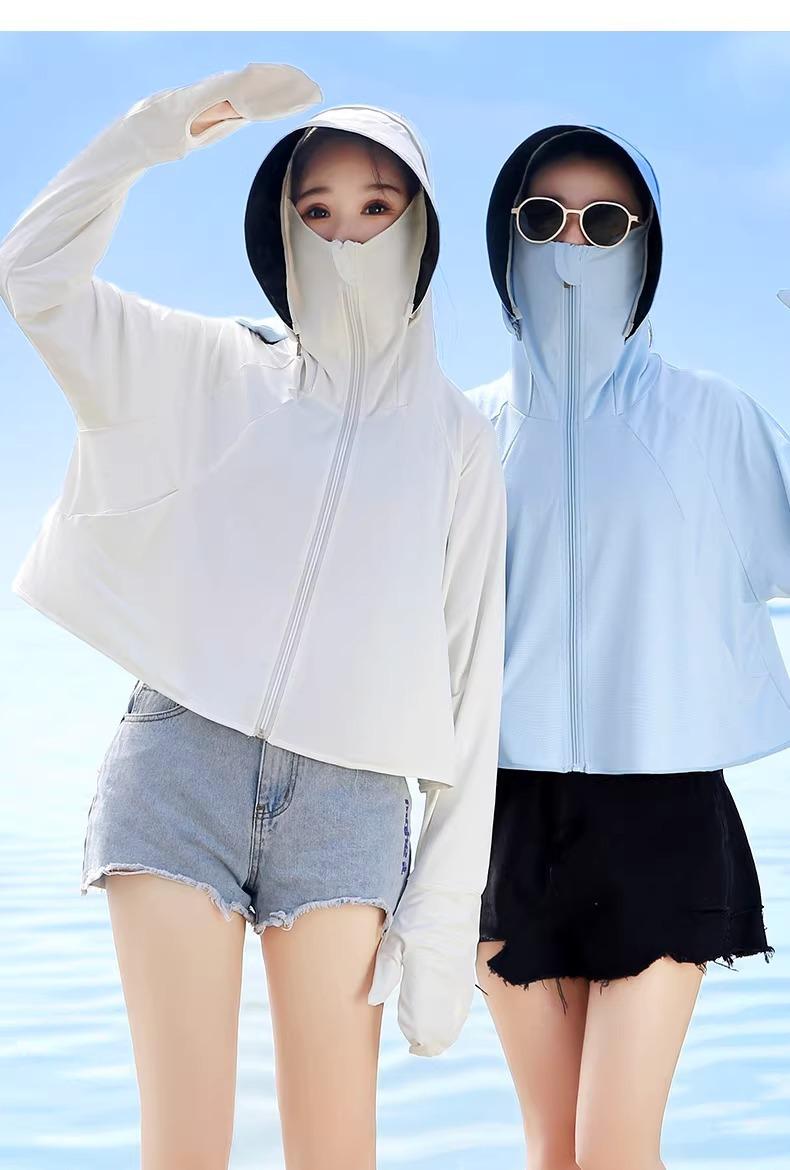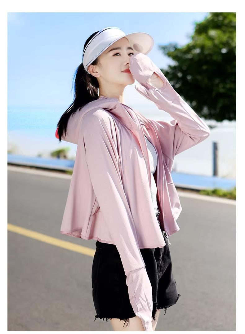 Ropa de protección solar de seda de hielo para mujer, nueva blusa fina de manga larga anti-UV de verano 2023, ropa de protección solar para montar a caballo.