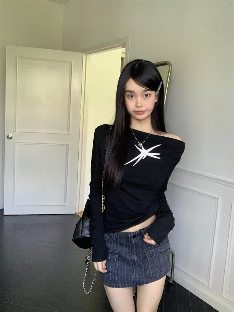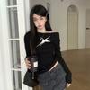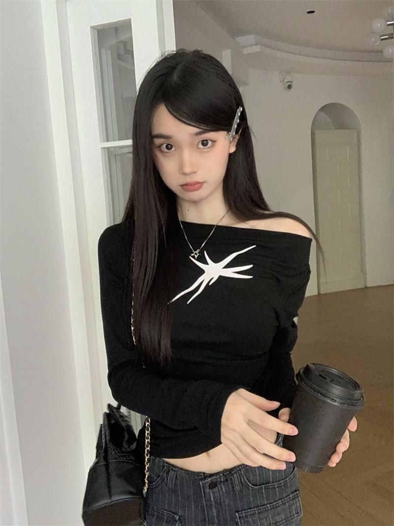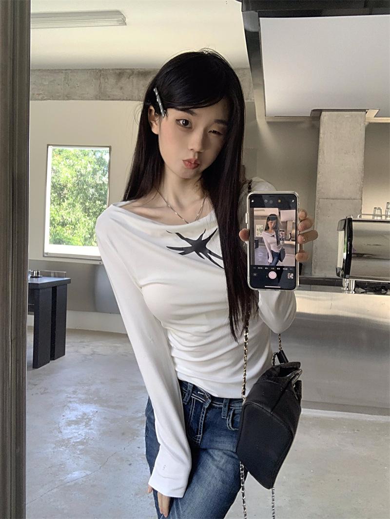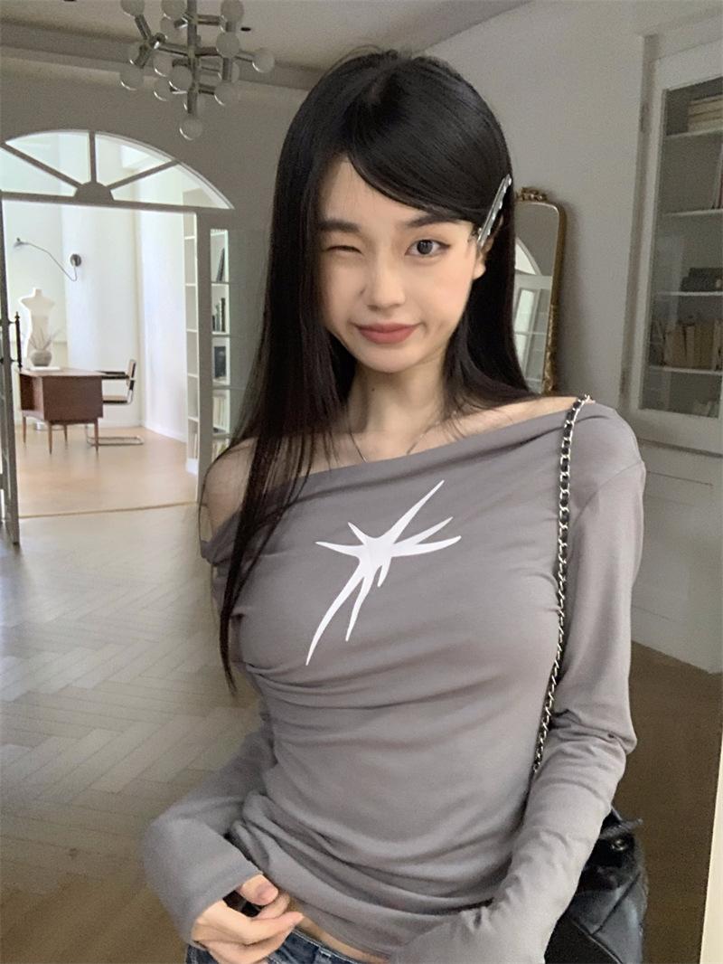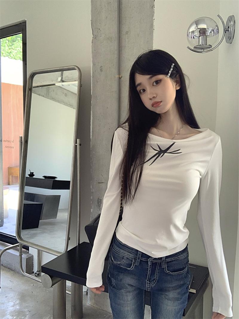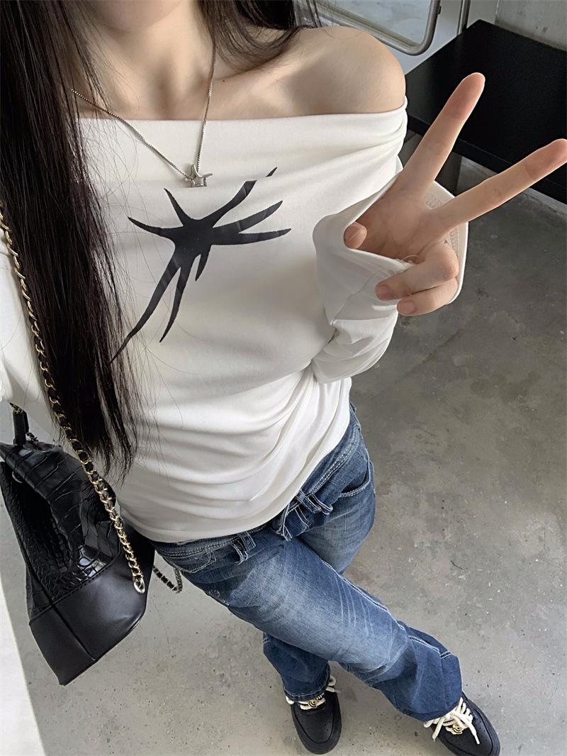 Camiseta de Manga Larga con Hombros Descubiertos para Mujer, Estilo Deseo Puro Otoñal, Corte Ajustado, Top de Diseño Elegante