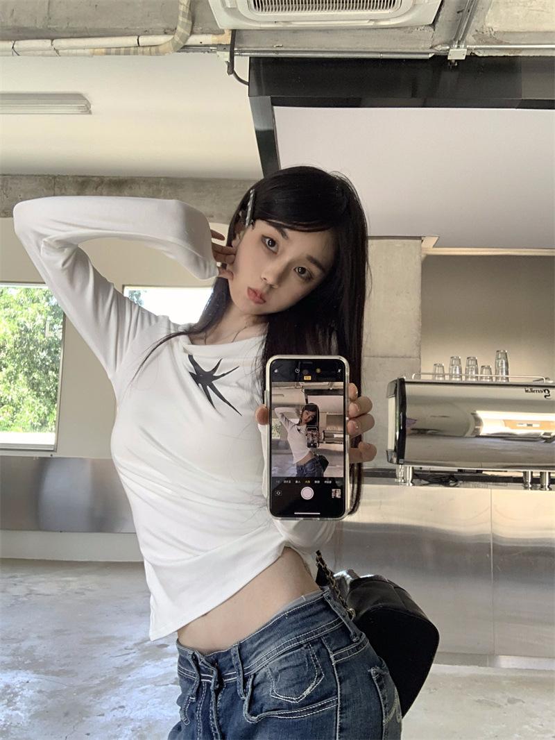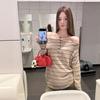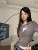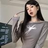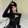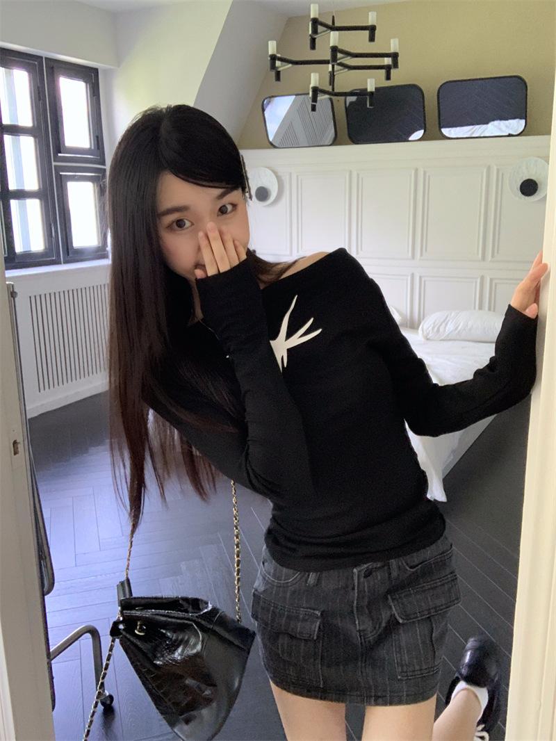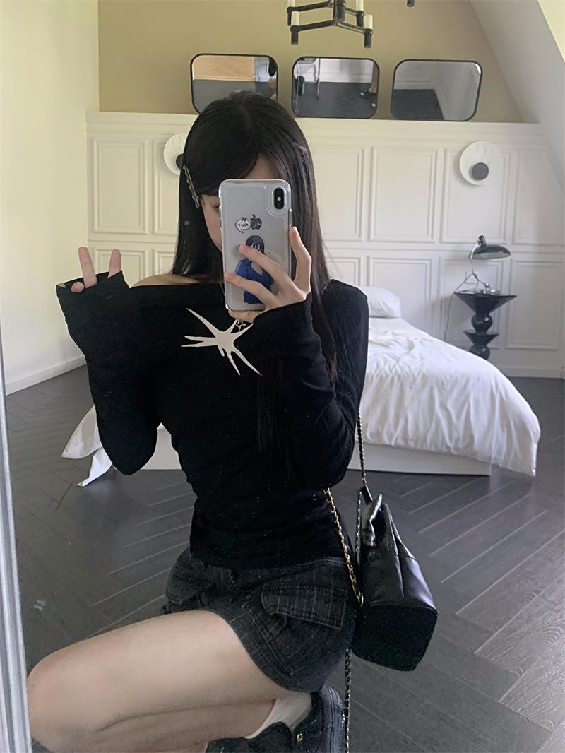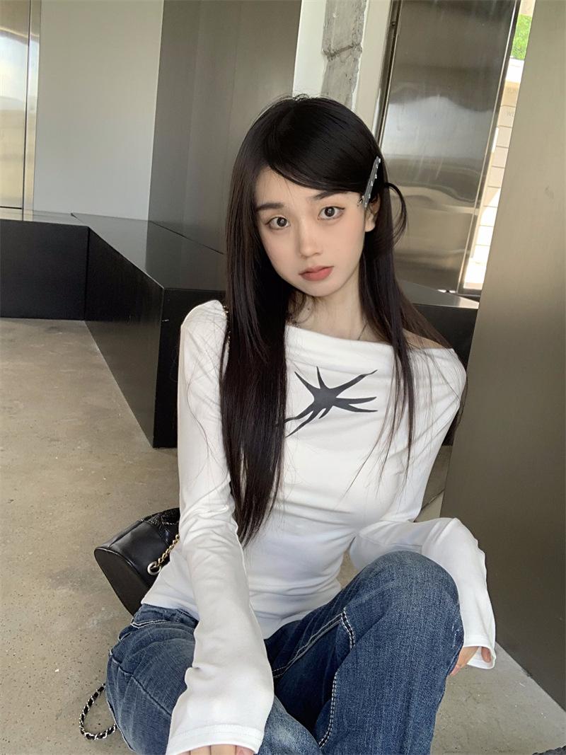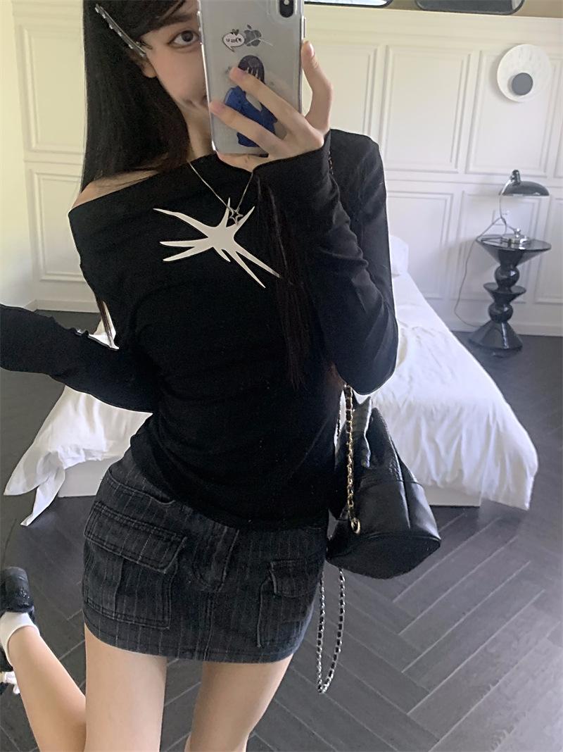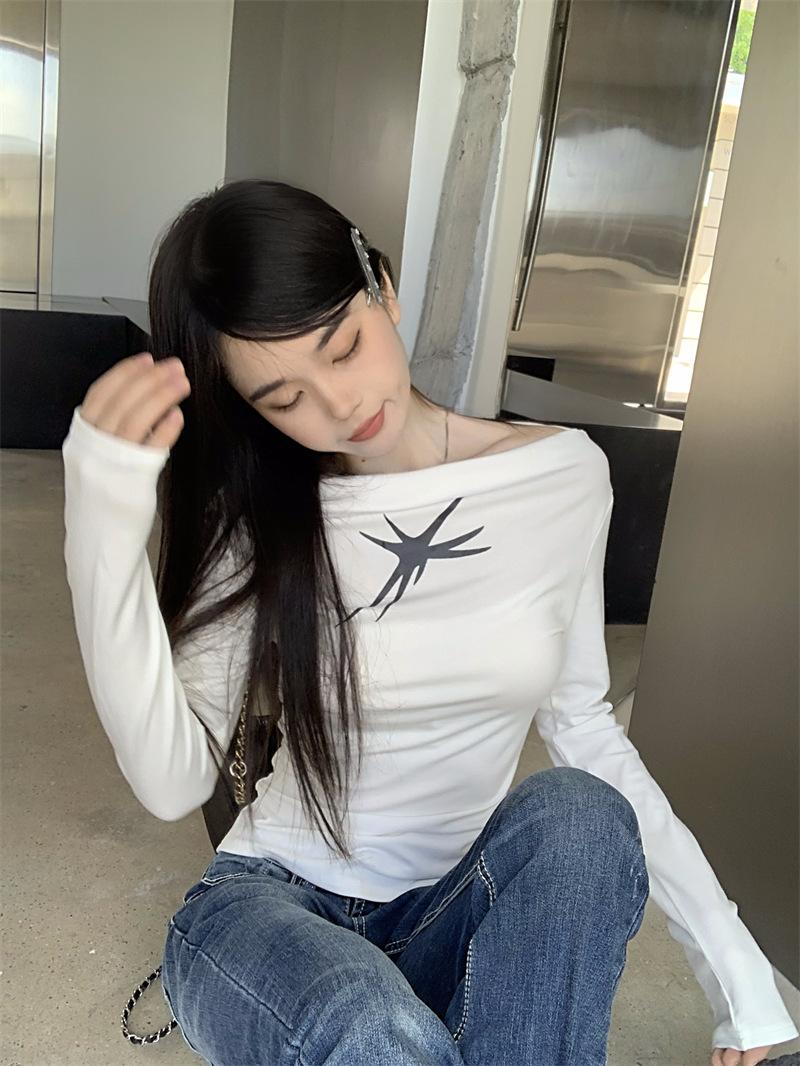 Camiseta de Manga Larga con Hombros Descubiertos para Mujer, Estilo Deseo Puro Otoñal, Corte Ajustado, Top de Diseño Elegante