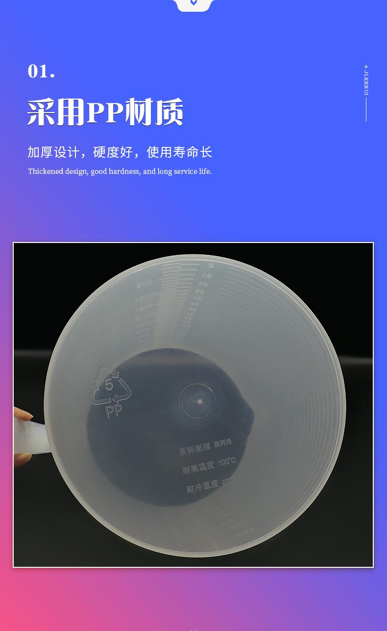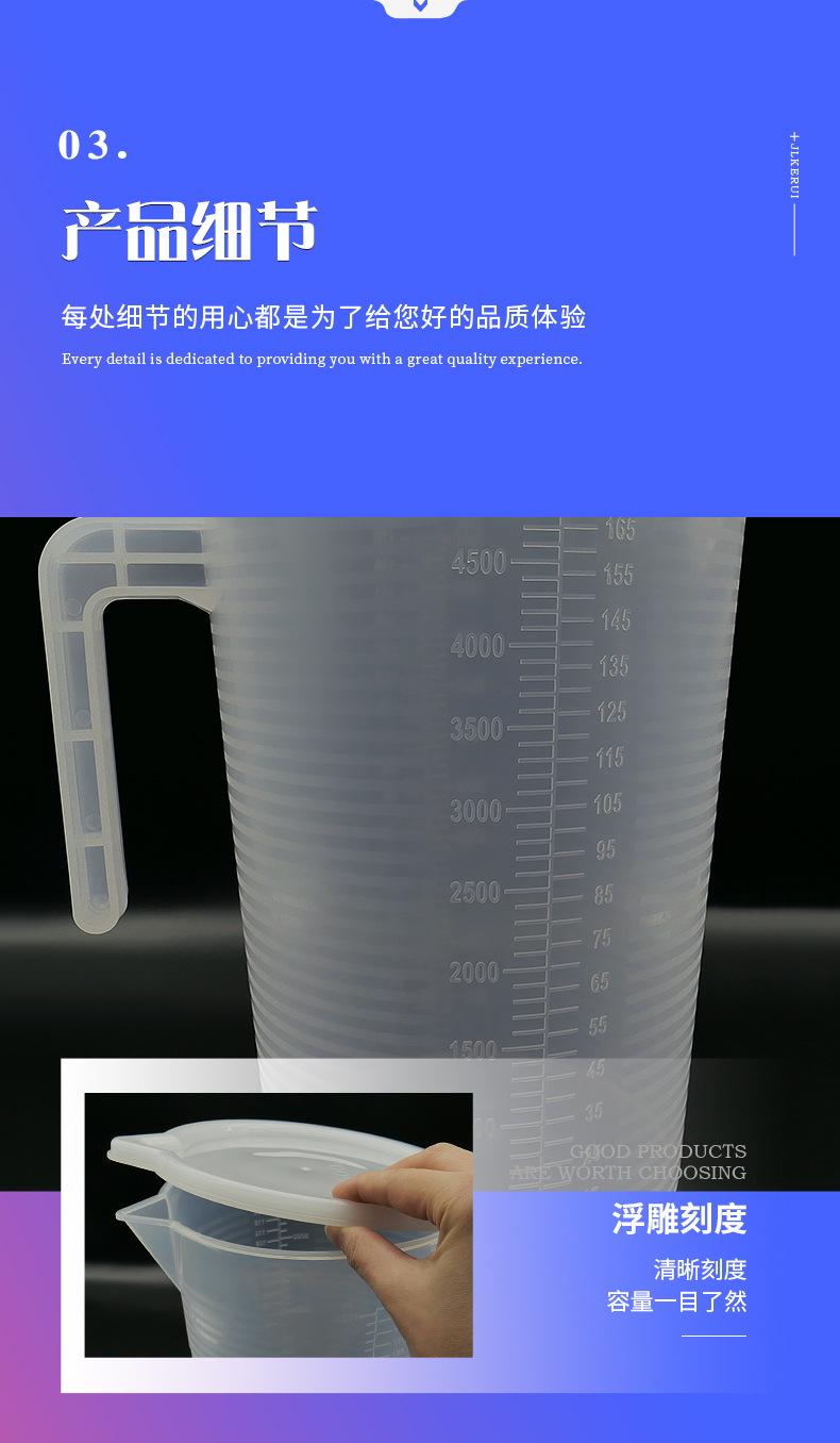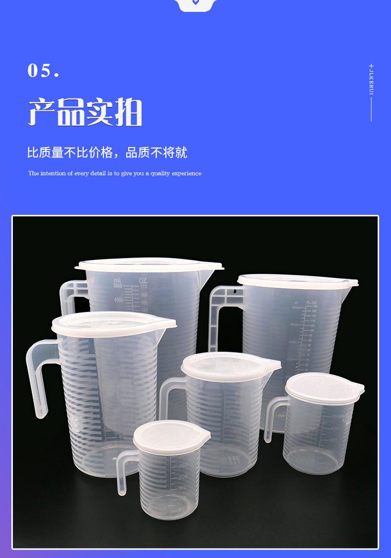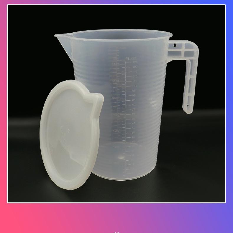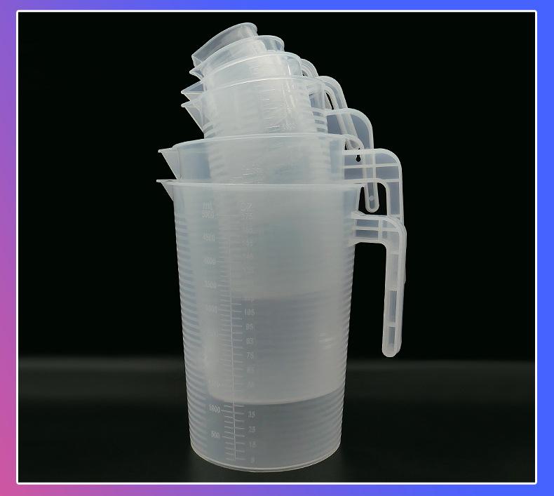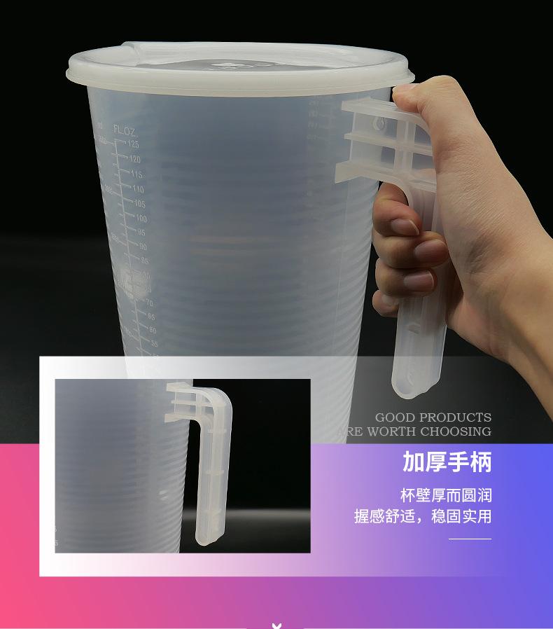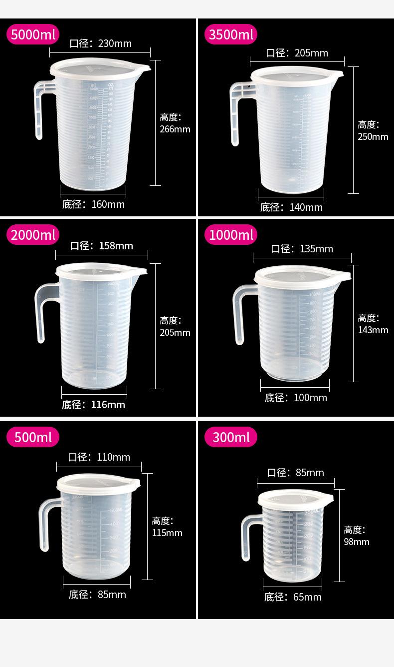 Taza medidora de polipropileno transparente con tapa, ideal para cocina, repostería, leche, té, tienda, hotel, suministros, plástico rayado con escala, subenvasado medidor.