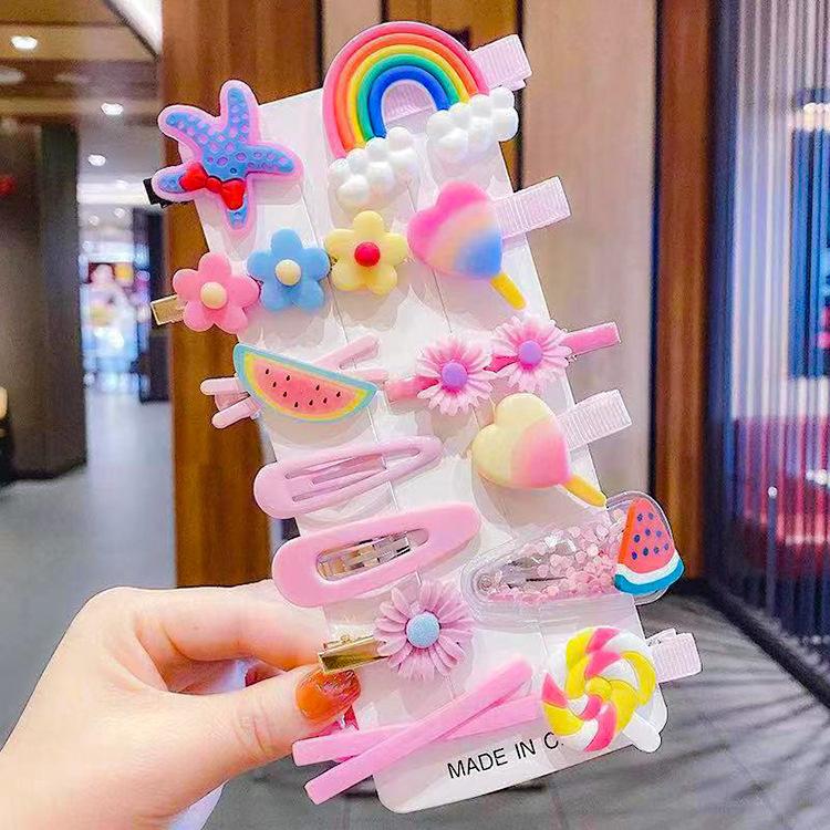 Horquilla para el cabello para niños Juego de 14 piezas de accesorios para el cabello Pinza de pico de pato Pinza lateral linda para niñas coreanas Pinza para flequillo Resina Pinza de pegamento suave