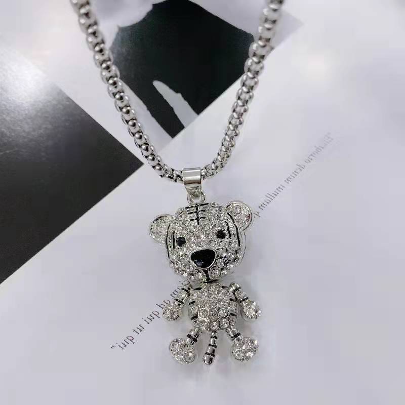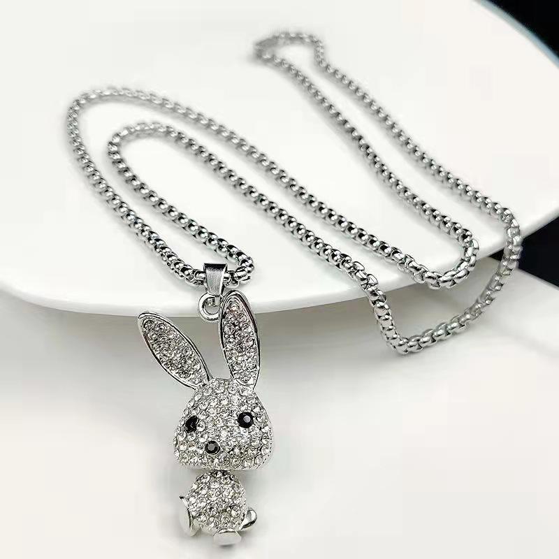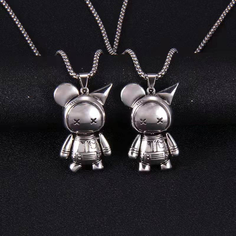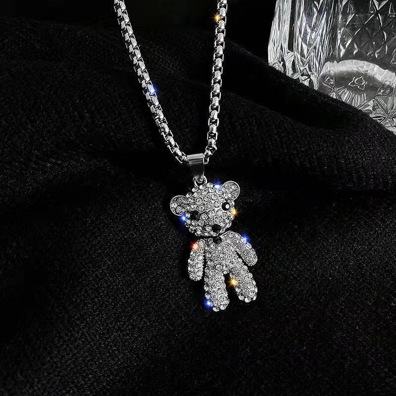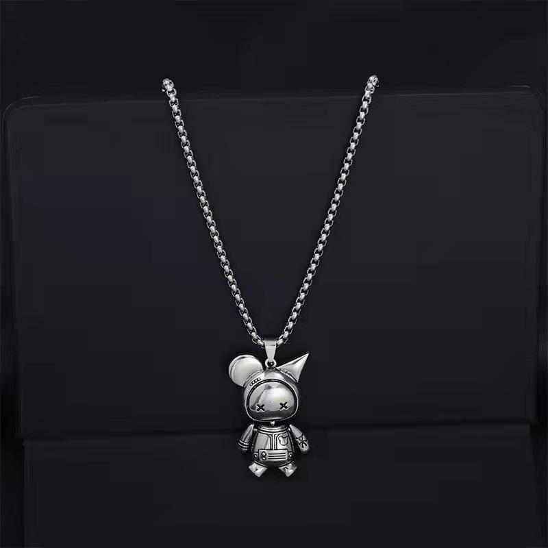 Collar de Acero de Titanio para Hombre Hip-Hop Nicho Ins Moderno Colgante de Oso Combinable Otoño e Invierno Cadena de Lana para Hombre Collar de Conejo para Mujer