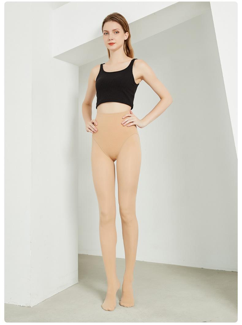 2024 Yuan Oriental Otoño e Invierno Nuevo Calcetines Brillantes de Cintura Alta Control de Abdomen Glúteos Melocotón 3D Piernas Descubiertas Look Adelgazante Leggings Nude Natural