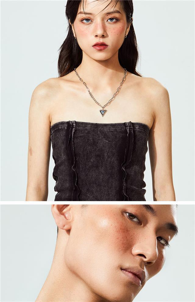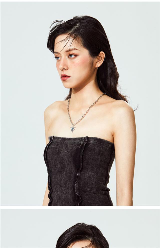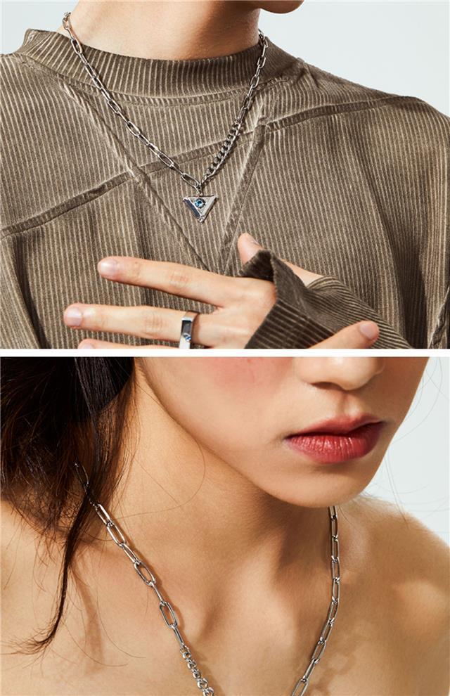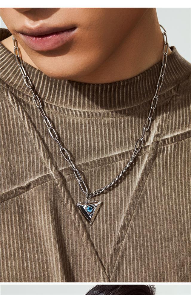 Collar para hombre, diseño de nicho de moda, marca de alta gama, colgante triangular con gemas para parejas.