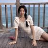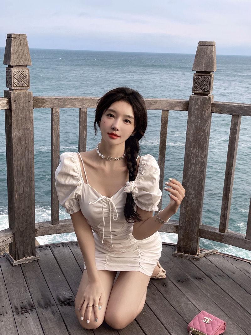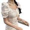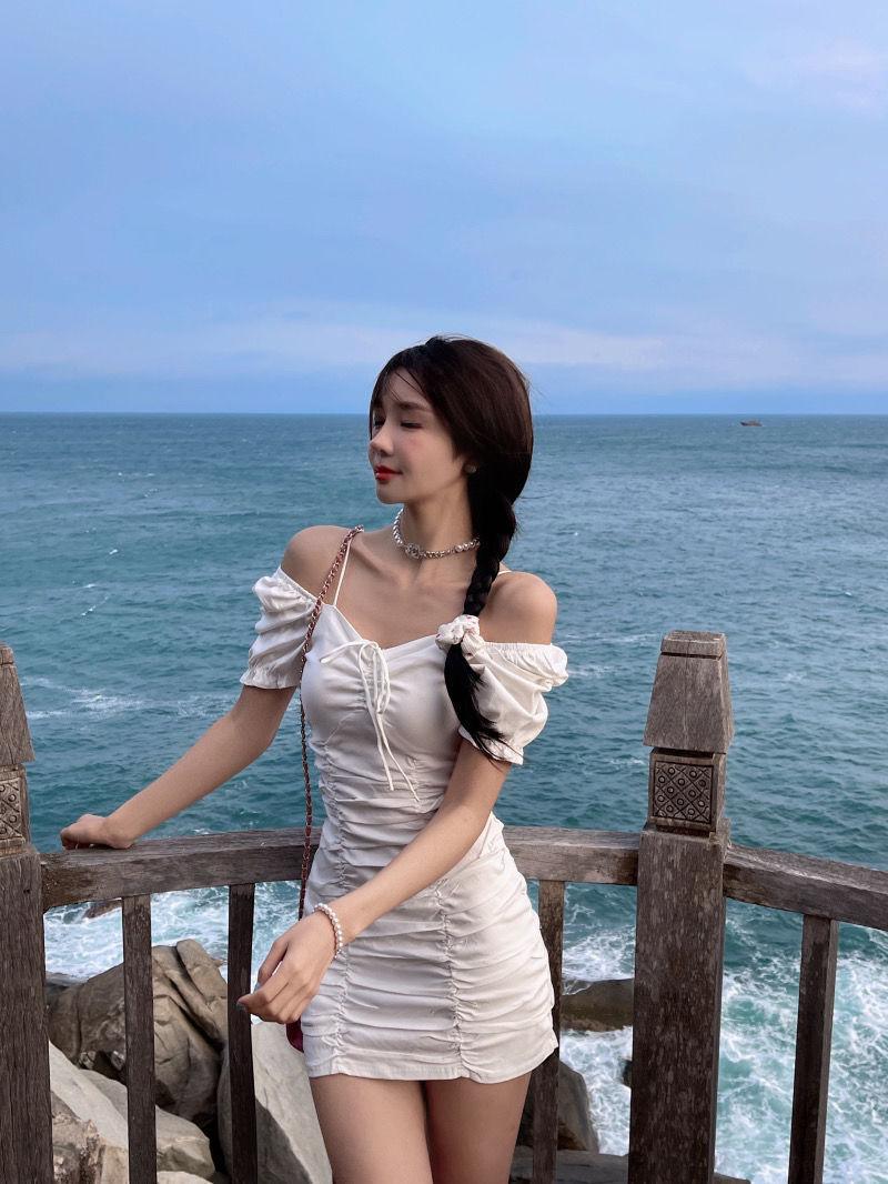 Vestido blanco de verano para mujer, estilo francés, Pure Desire, con mangas abullonadas, plisado, ajustado y corto, 2022
