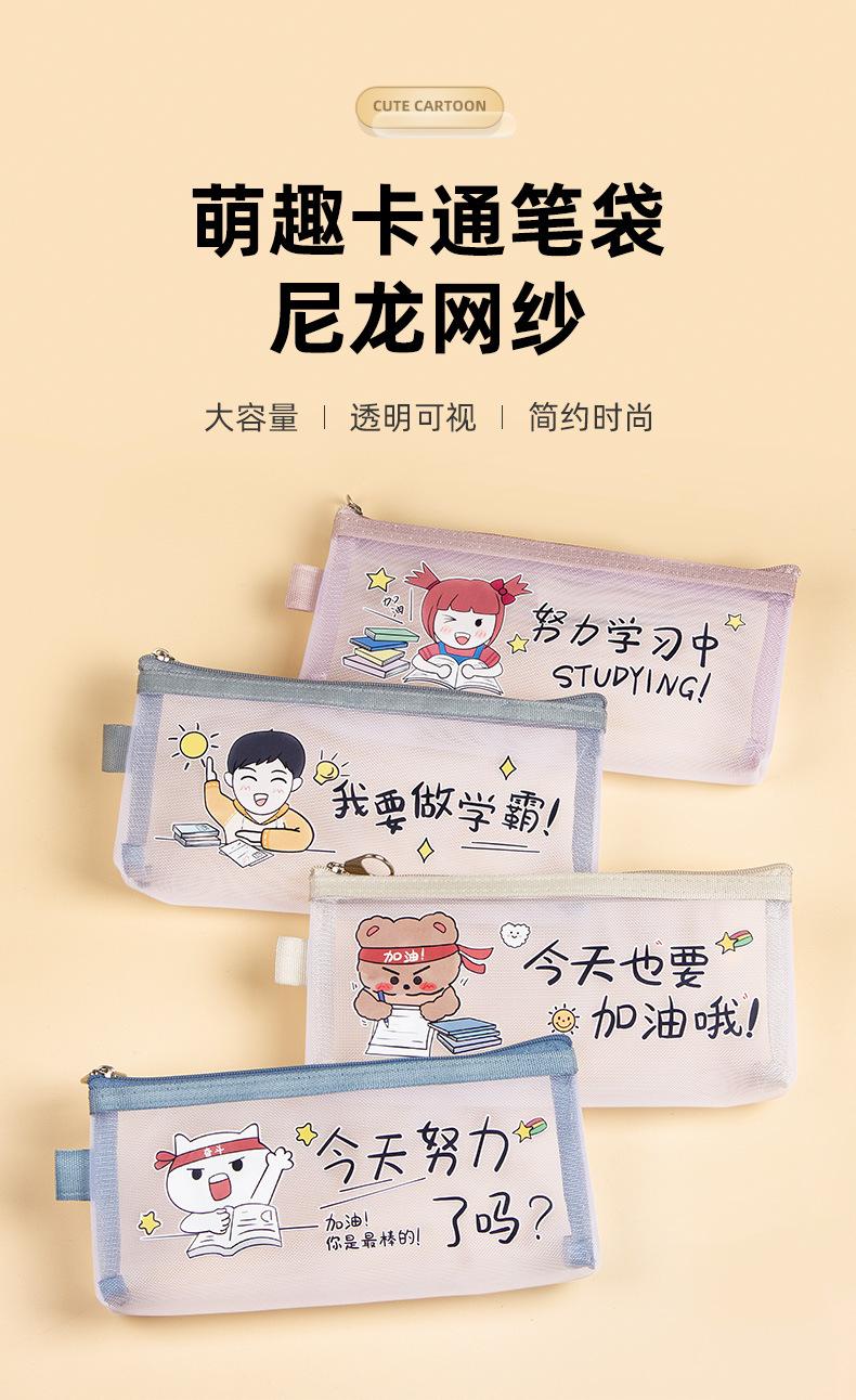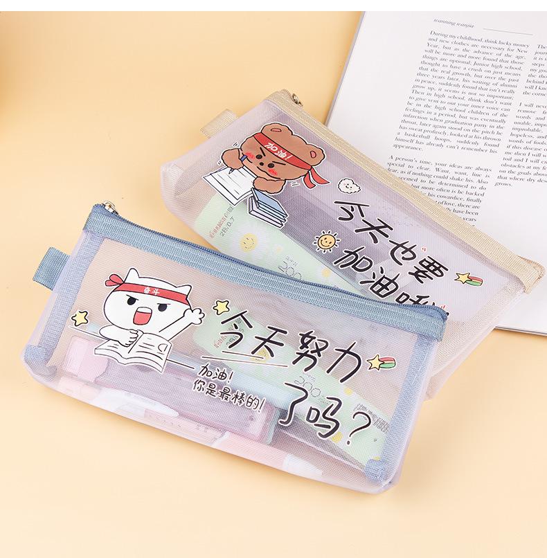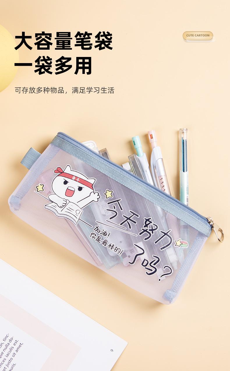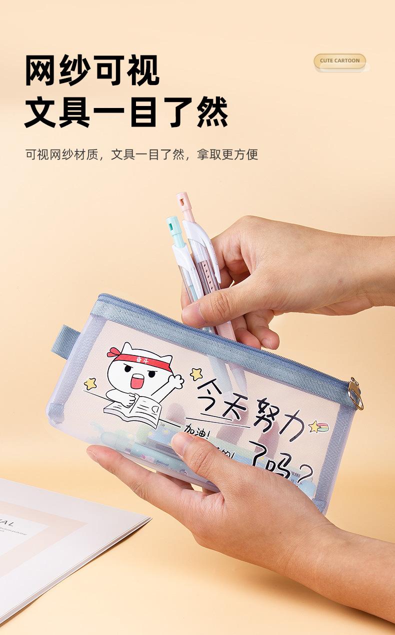 Estuche de malla de nailon transparente para lápices, gran capacidad, para papelería, para exámenes de estudiantes, bonito estuche con cremallera.