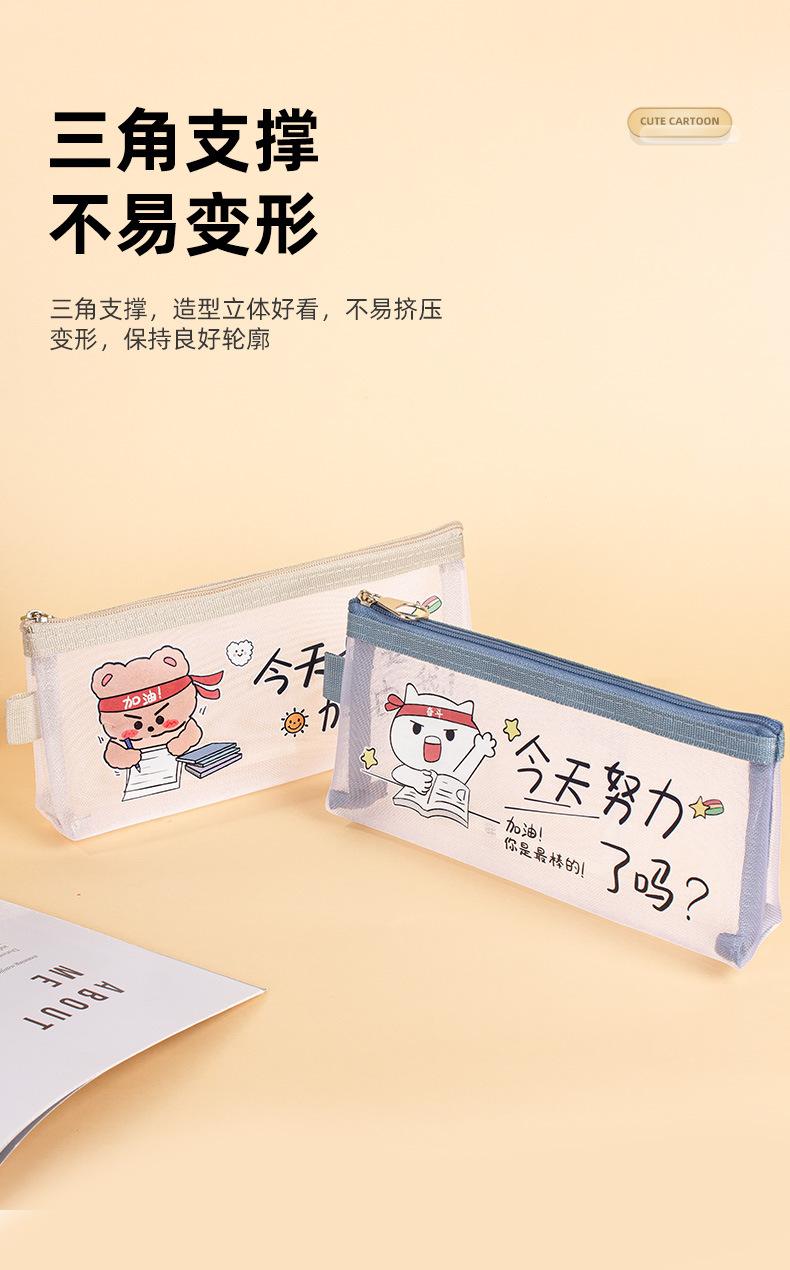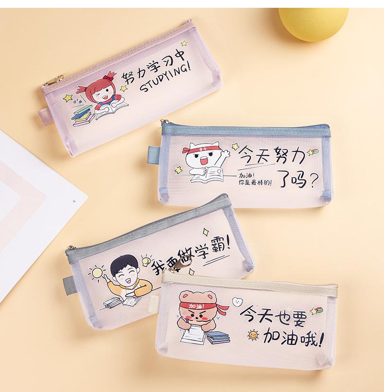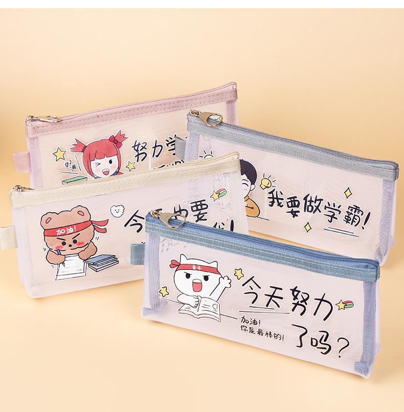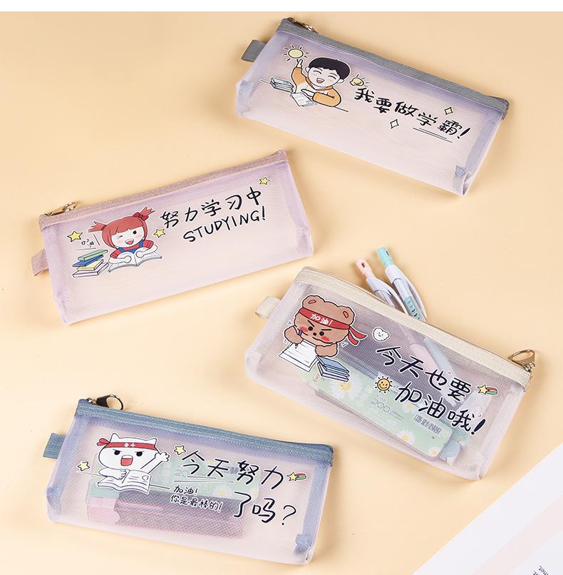 Estuche de malla de nailon transparente para lápices, gran capacidad, para papelería, para exámenes de estudiantes, bonito estuche con cremallera.