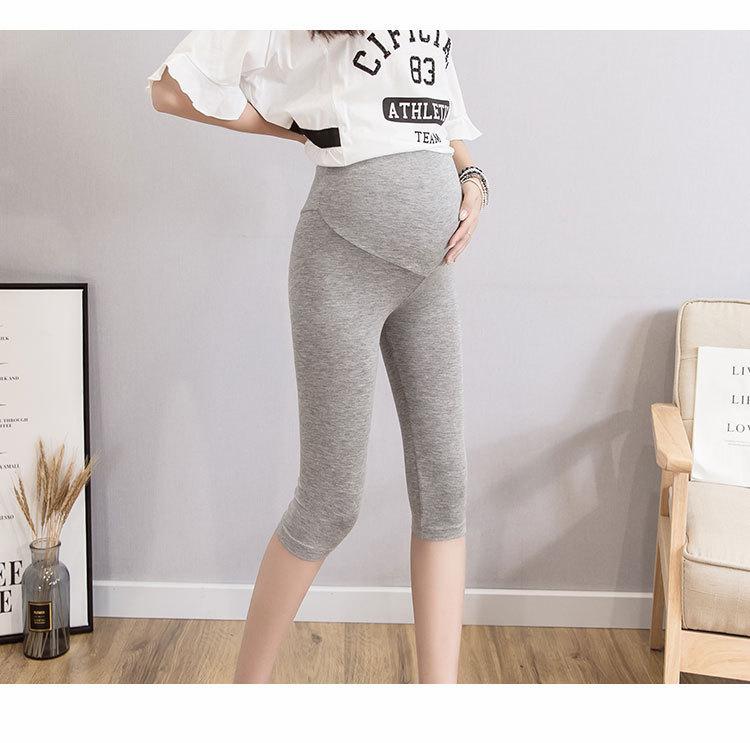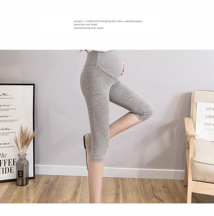 Pantalones de Maternidad de Cintura Alta con Soporte para el Vientre, Delgados Nuevos Primavera y Otoño Color Sólido Elásticos Ajustables Capri Leggings Ajustados Modernos