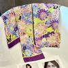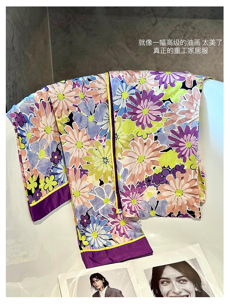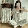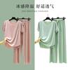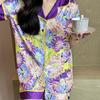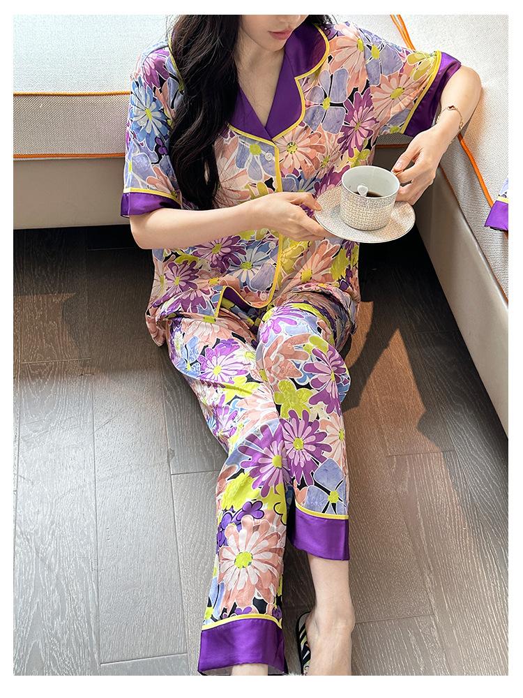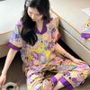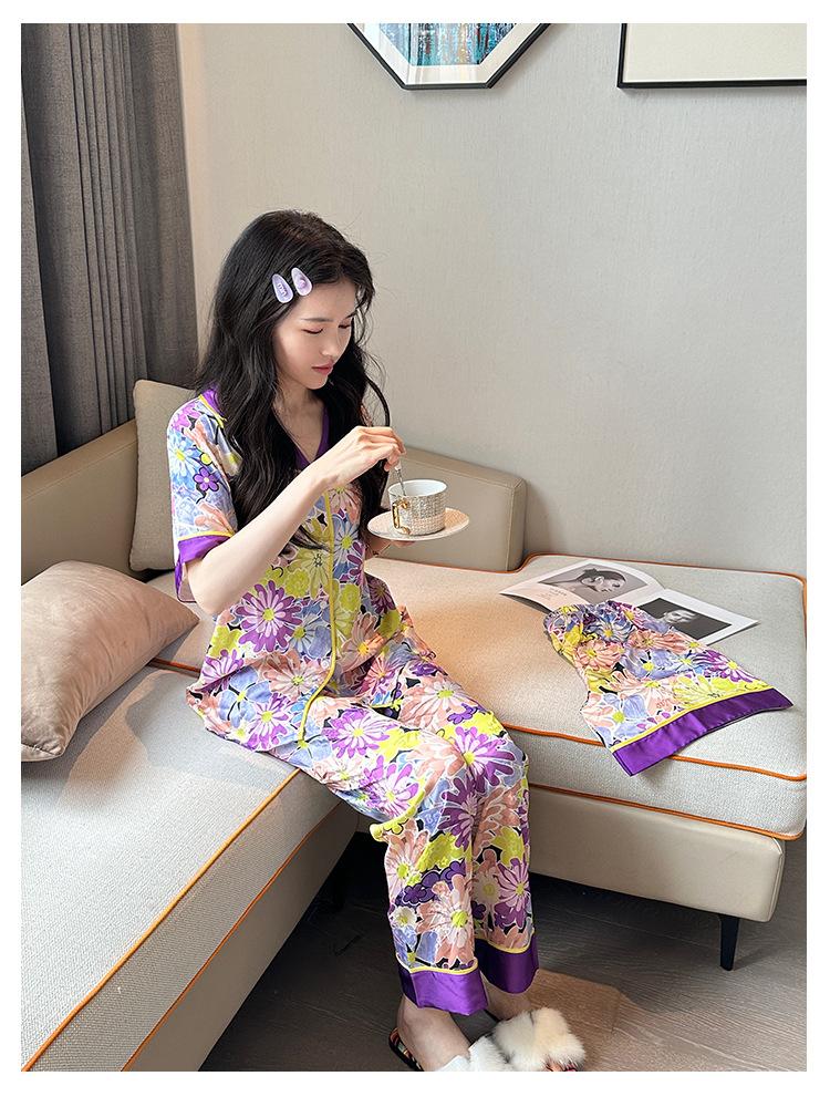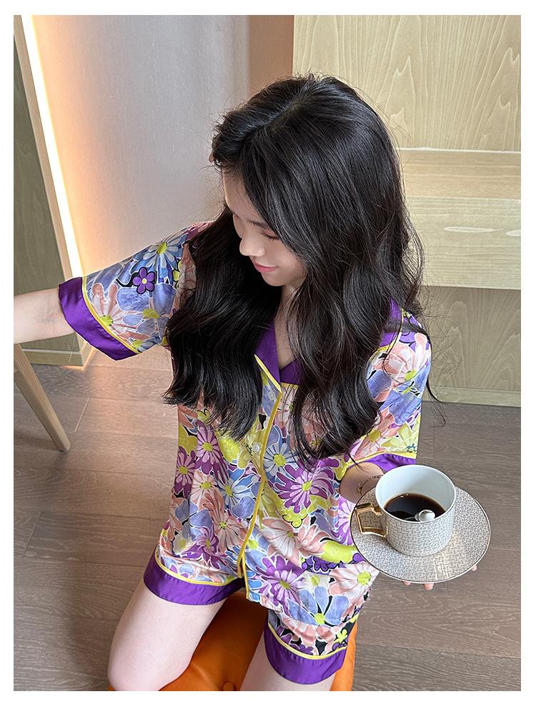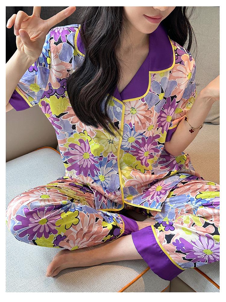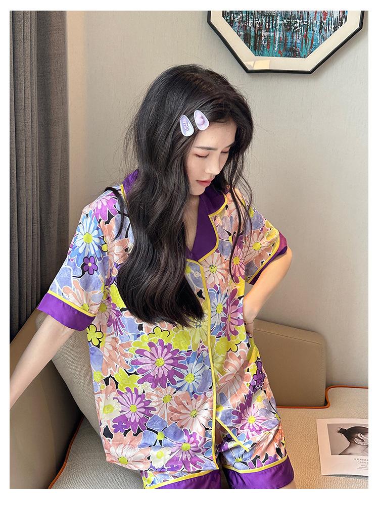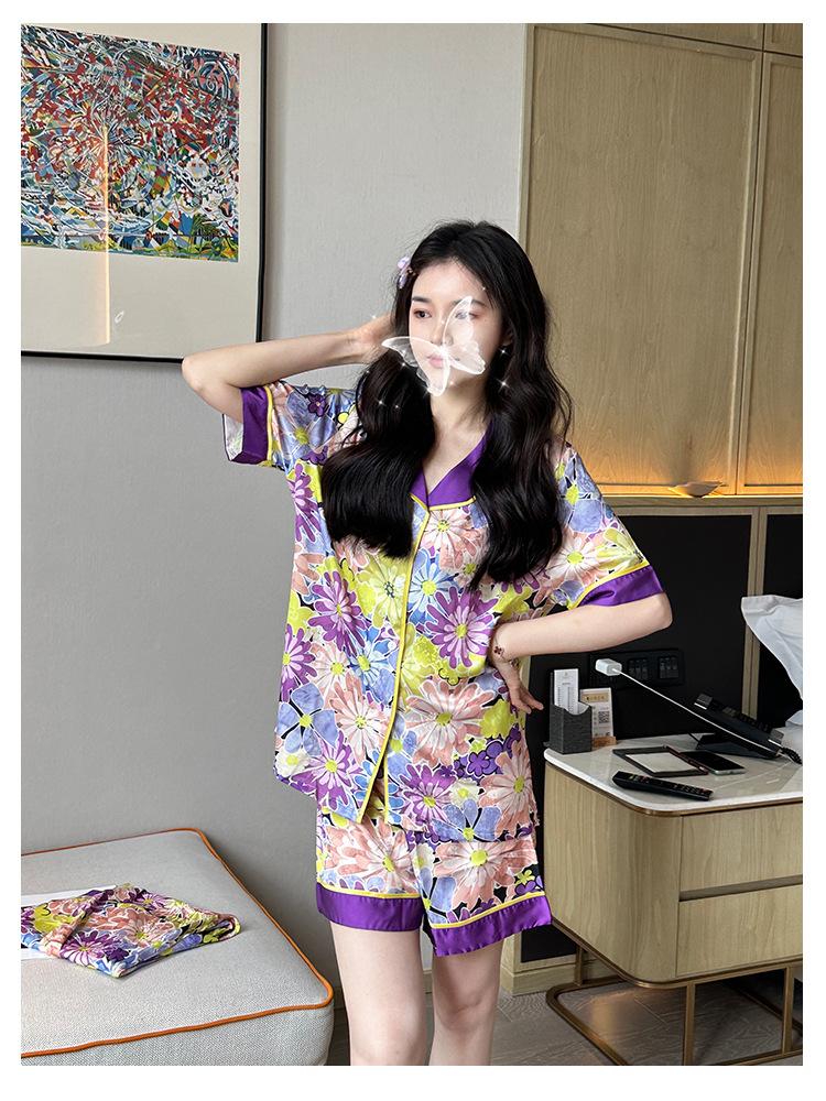[Set de Tres Piezas de Regalo de Flores de Verano] Pijama Nuevo para Mujer de Verano de Manga Corta con Pantalón de Seda Helada Fino Ropa para el Hogar Set de Talla Grande