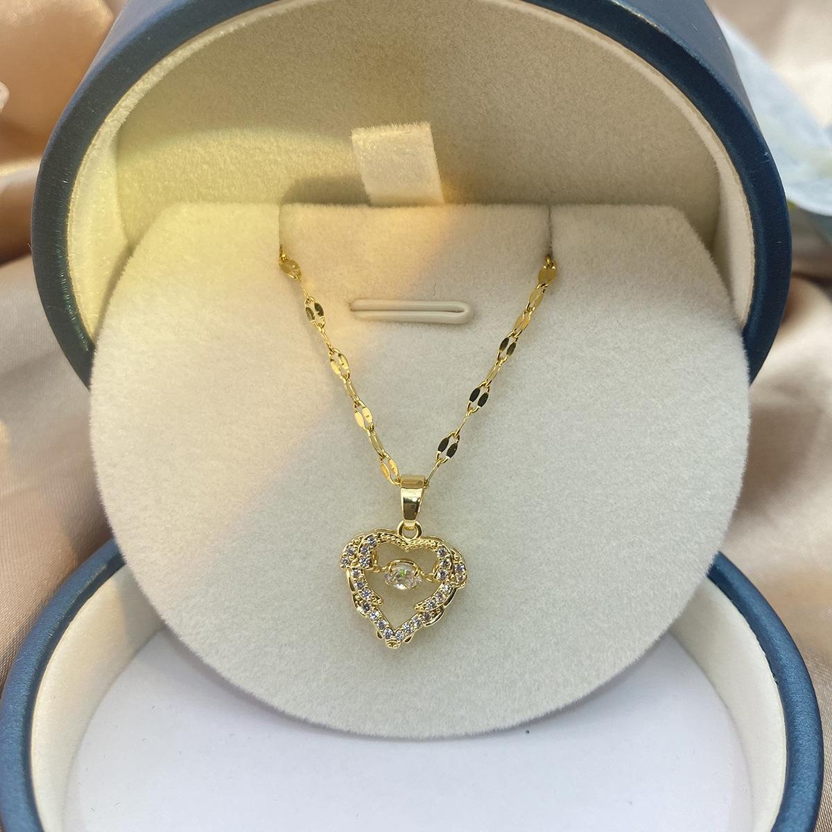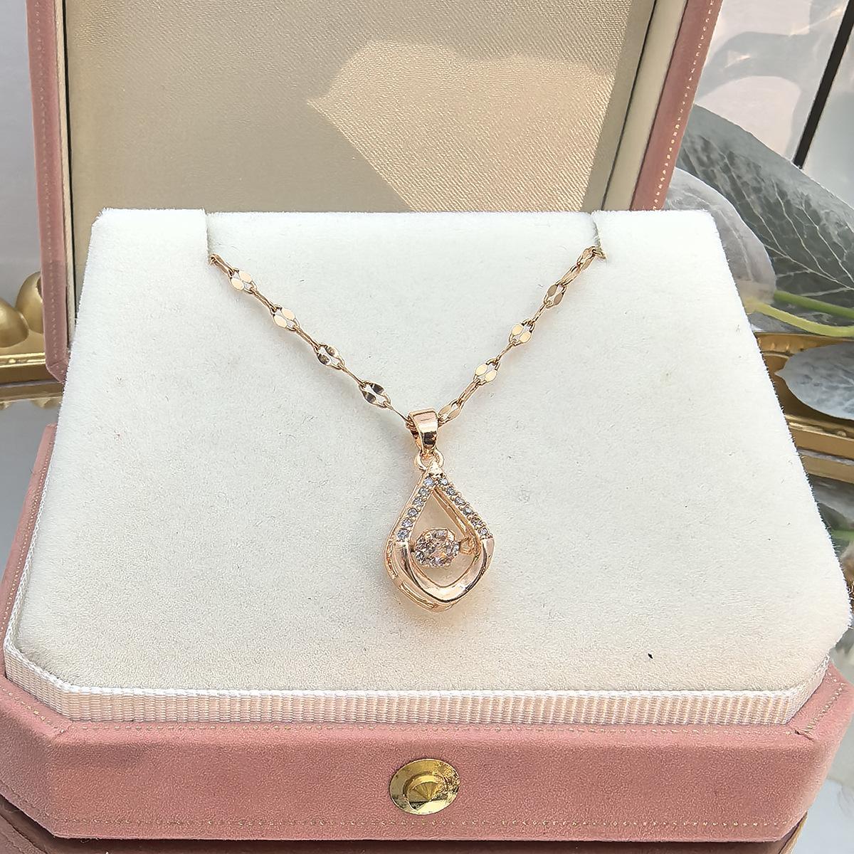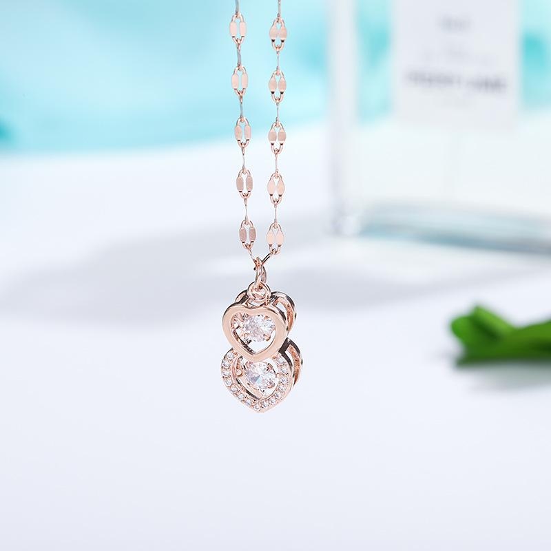 Collar de acero de titanio con cadena de labios de diamante creativo europeo y americano, serie flexible para mujer, conjunto completo, colgante, cadena de clavícula geométrica de oro rosa