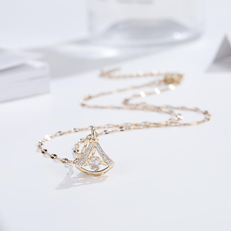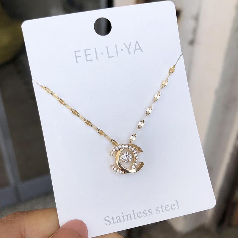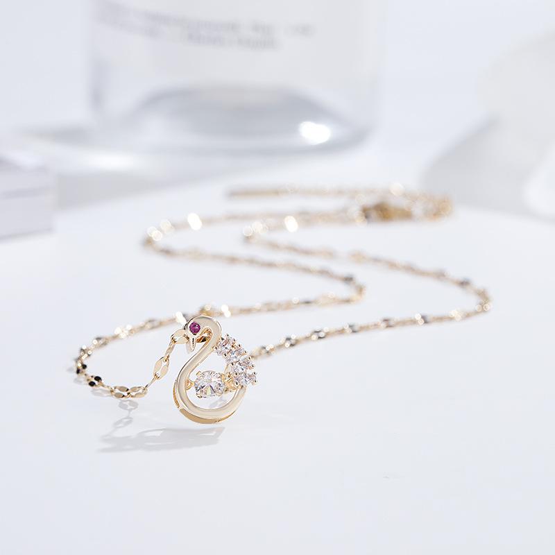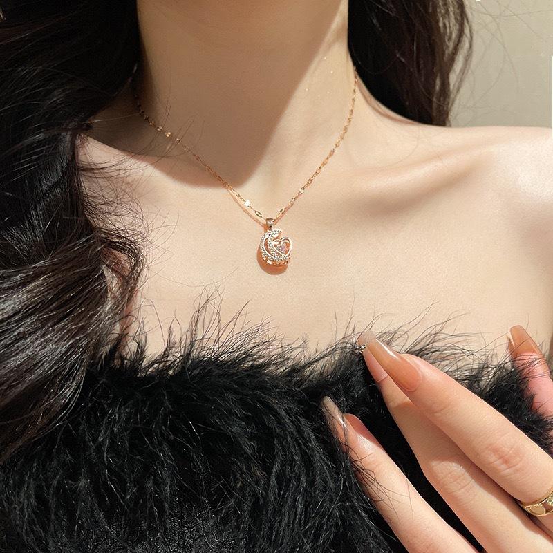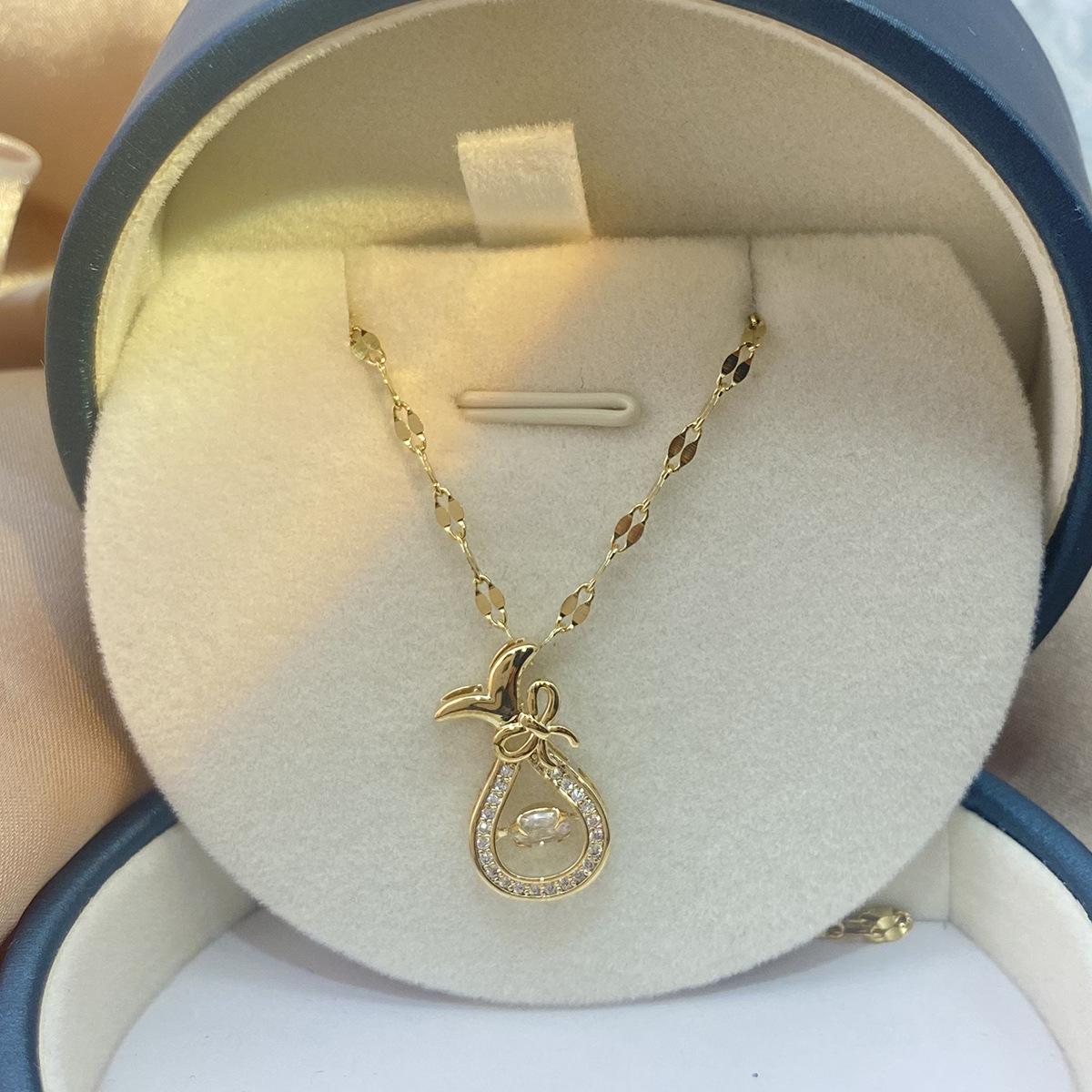 Collar de acero de titanio con cadena de labios de diamante creativo europeo y americano, serie flexible para mujer, conjunto completo, colgante, cadena de clavícula geométrica de oro rosa